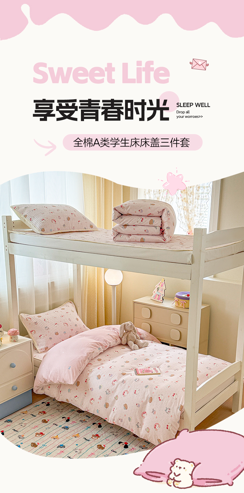 当前位置: 91家纺网 > 商品网购 > 床品套件 > 三件套 > 沐辰 2025春夏新款A类全棉纯棉学生床床盖三件套 奶油猫咪