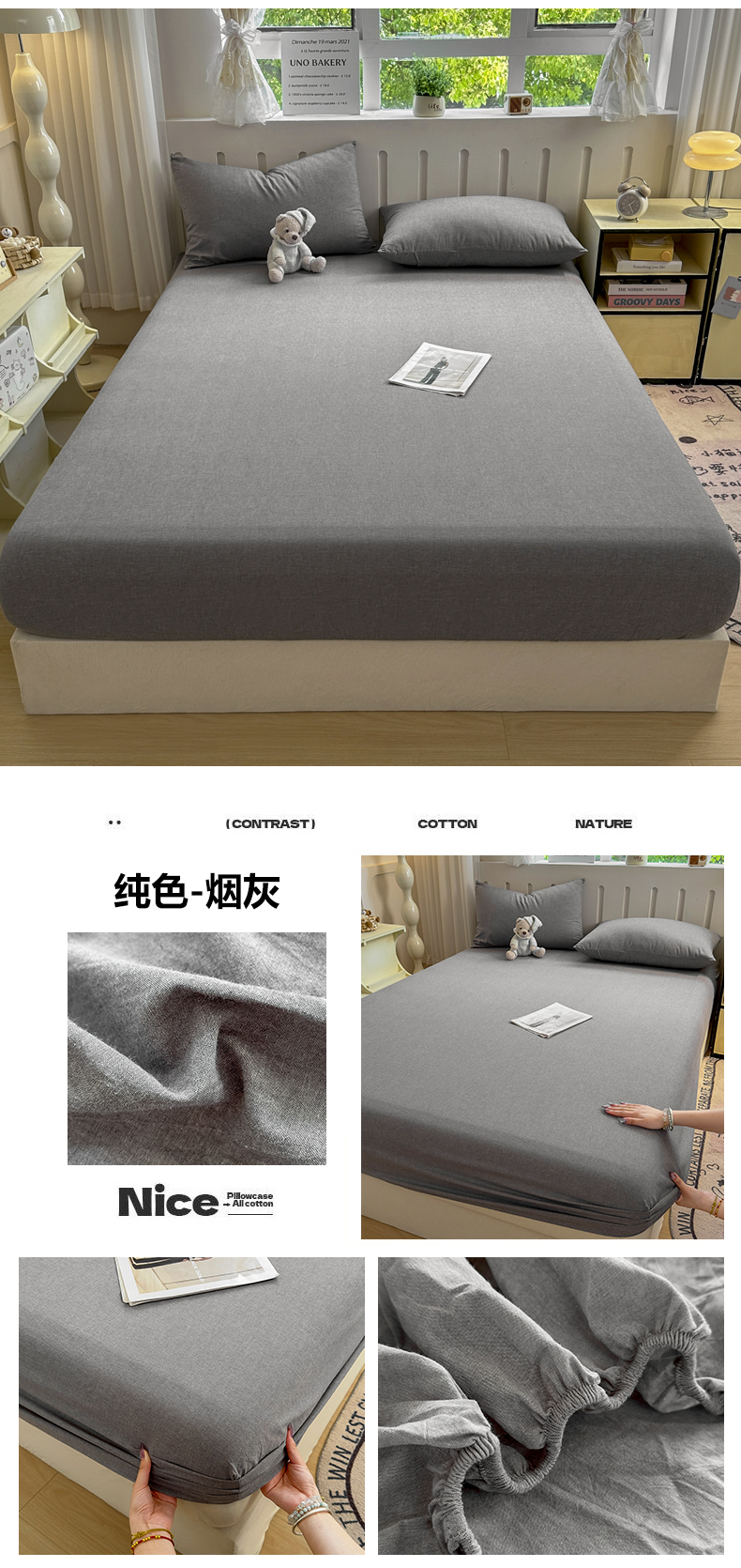 • 91家纺网 家纺一手货源 找家纺 晚依家纺 2025新款A类色织全棉纯棉水洗棉床笠单件纯棉格子纯色学生宿舍定制定做 纯色-烟灰
