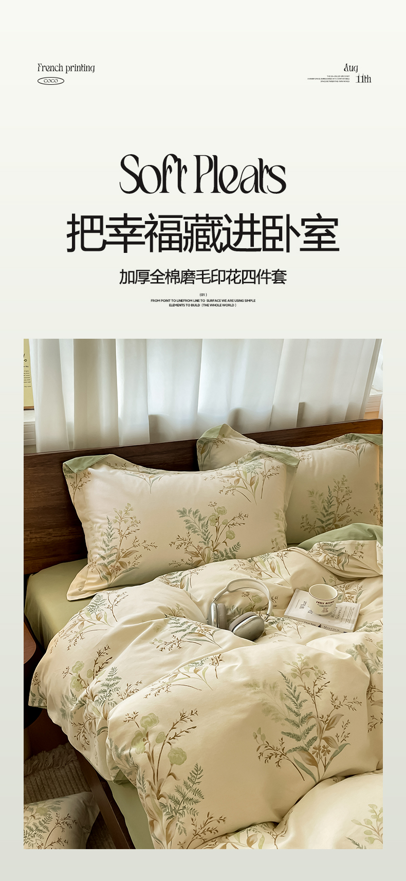 当前位置: 91家纺网 > 商品网购 > 床品套件 > 四件套 > 磨毛活性四件套 > 涵宸家纺 2025新款加厚全棉磨毛印花四件套--罗马系列 场景一 D西尔