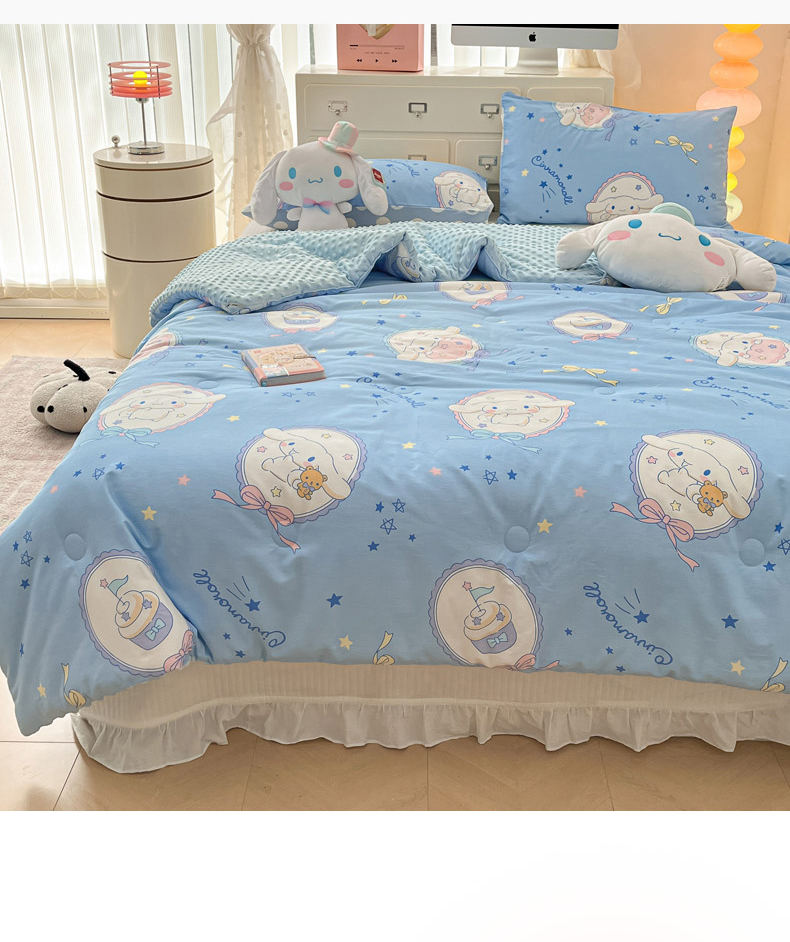 • 91家纺网 家纺一手货源 找家纺 暮思家居 2025新款正版授权三丽鸥A版纯棉B版安抚豆豆绒春秋被冬被豆豆被被子被芯系列 豆豆被-蓝色玉桂狗