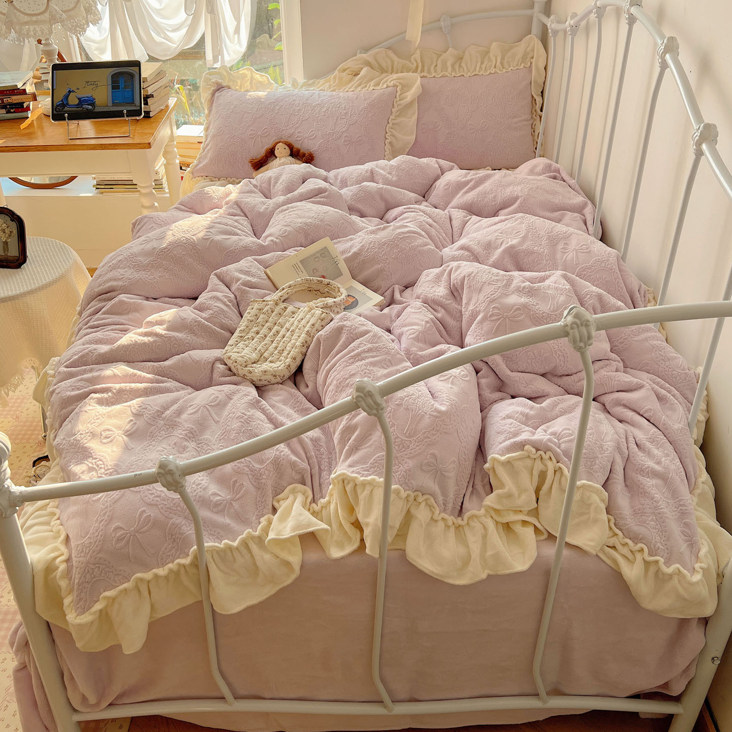 当前位置: 91家纺网 > 商品网购 > 床品套件 > 四件套 > 其它四件套 > 六巷胡同 2025新款韩系博主风少女心蝴蝶结捧花A类牛奶绒四件套 蝴蝶结捧花-紫
