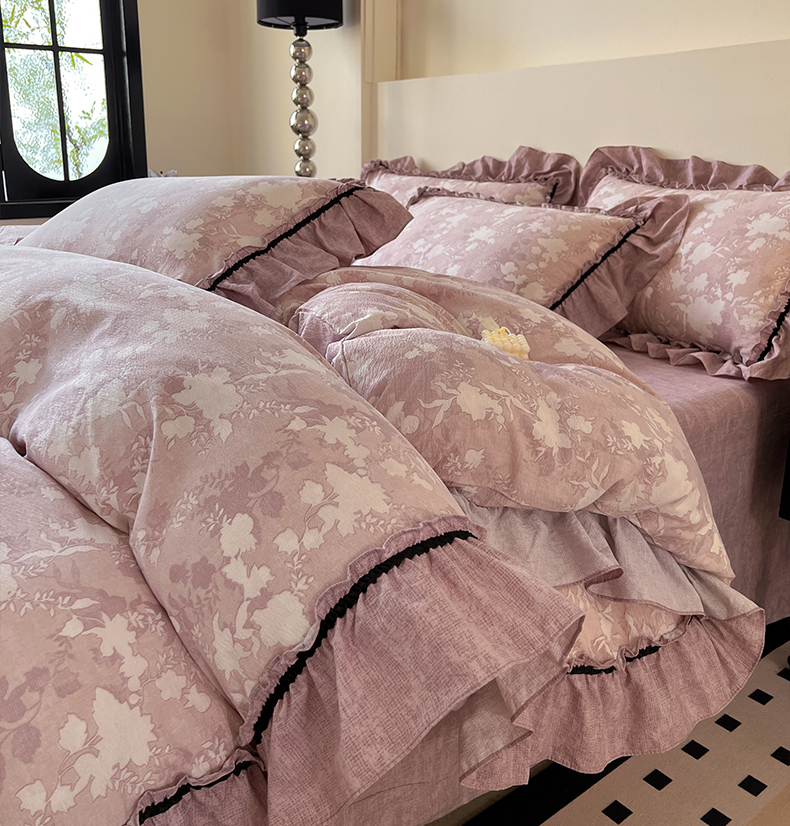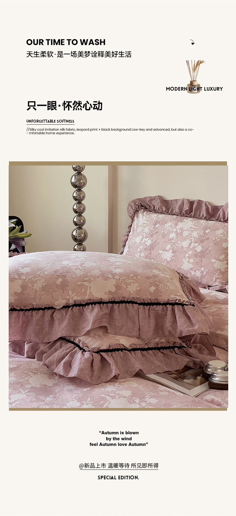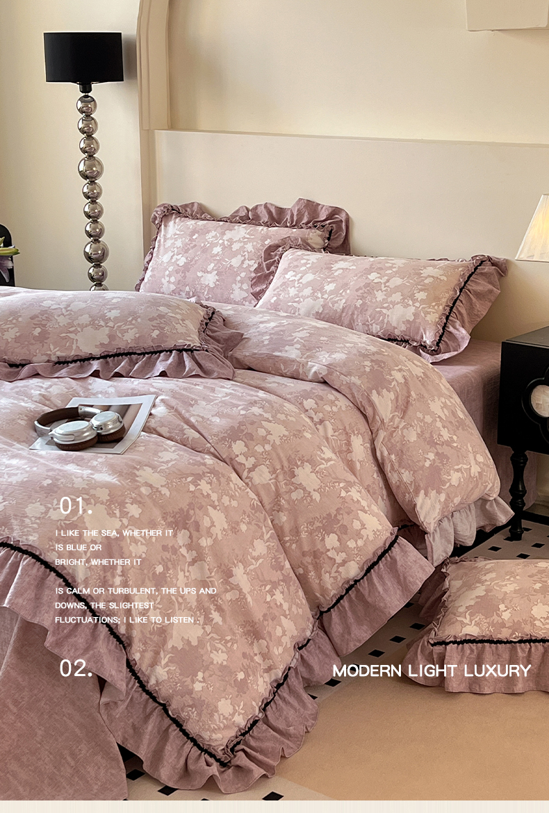 当前位置: 91家纺网 > 商品网购 > 床品套件 > 四件套 > 其它四件套 > 喜颜 2025新款亚麻爆款花边四件套-直播热款 浮绘花影