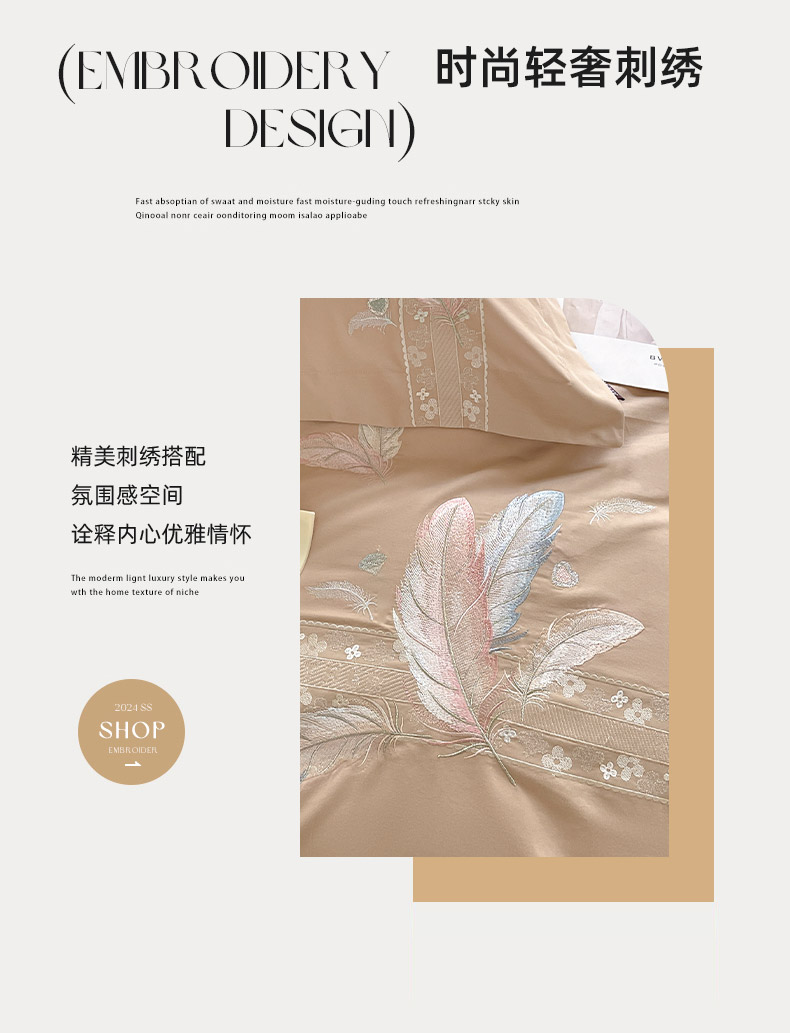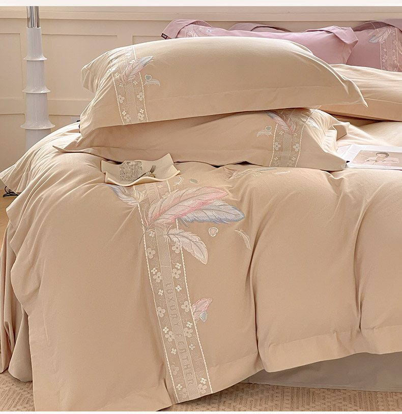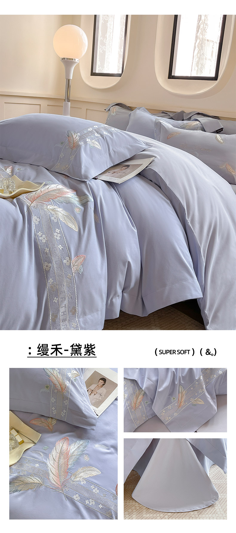 (总) 2025春夏长绒棉四件套纯棉全棉轻奢风床单被套重工刺绣床上用品,芊羽梦-白粉,芊羽梦-茶绿,芊羽梦-黛紫,芊羽梦-慕蓝,芊羽梦-颜粉