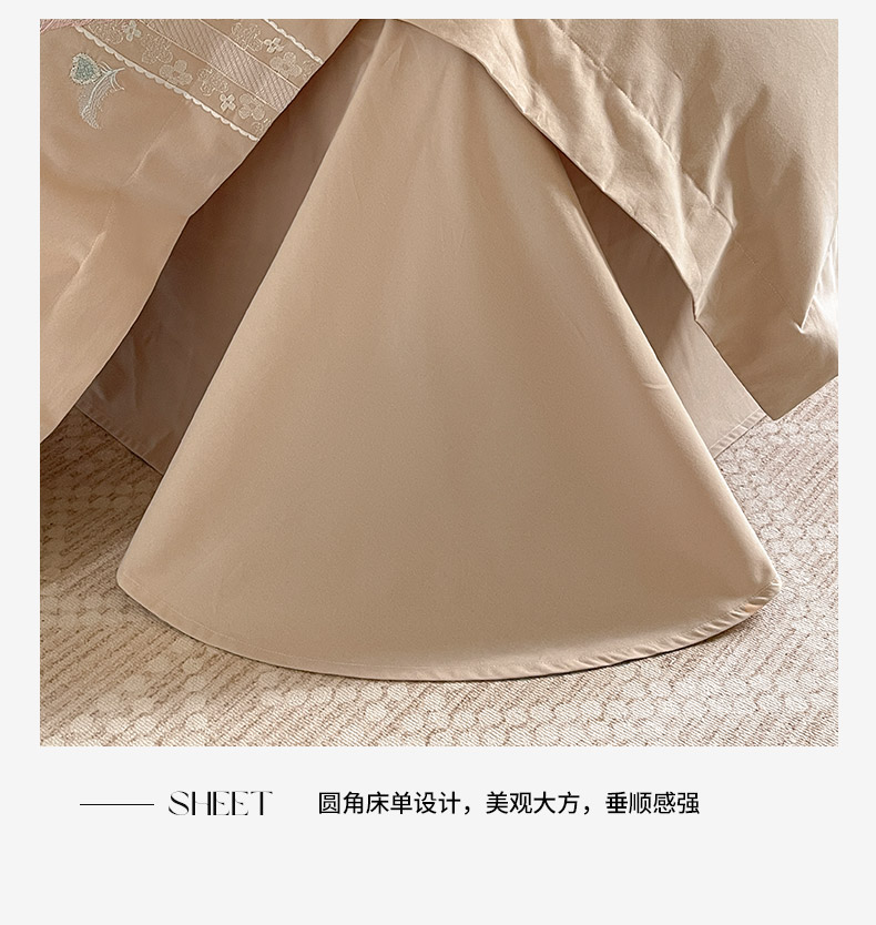 商品名称:2025秋冬新品A类加厚保暖全棉磨毛四件套纯棉被套重工刺绣轻奢床笠款直播热款床上用品 缦禾-拿铁