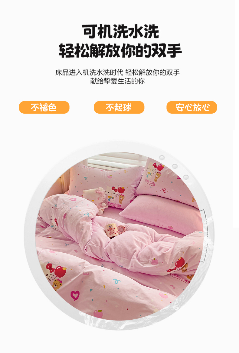 商品名称:朵希曼 2026新款棉绒卡通三丽鸥棉加绒印花系列四件套 小熊凯蒂
