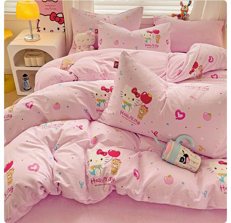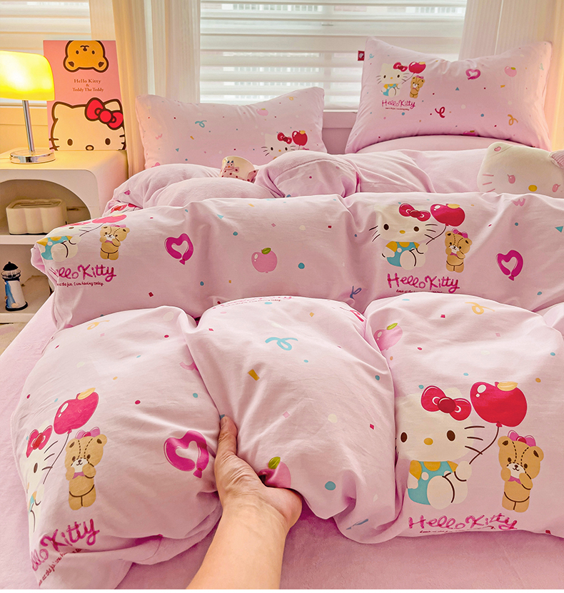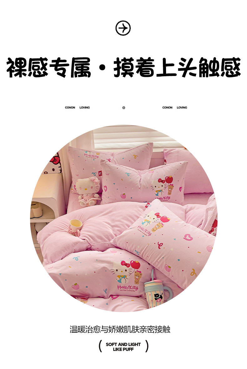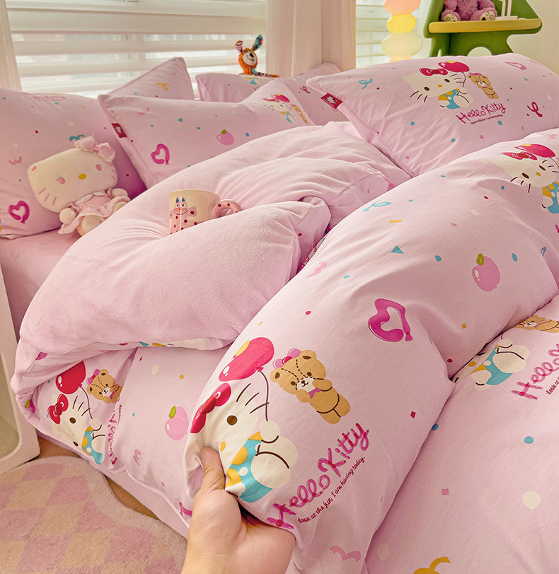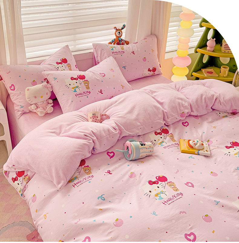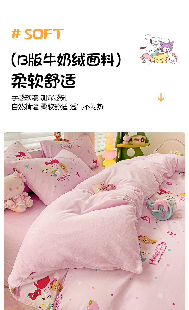 朵希曼 2026新款棉绒卡通三丽鸥棉加绒印花系列四件套 小熊凯蒂