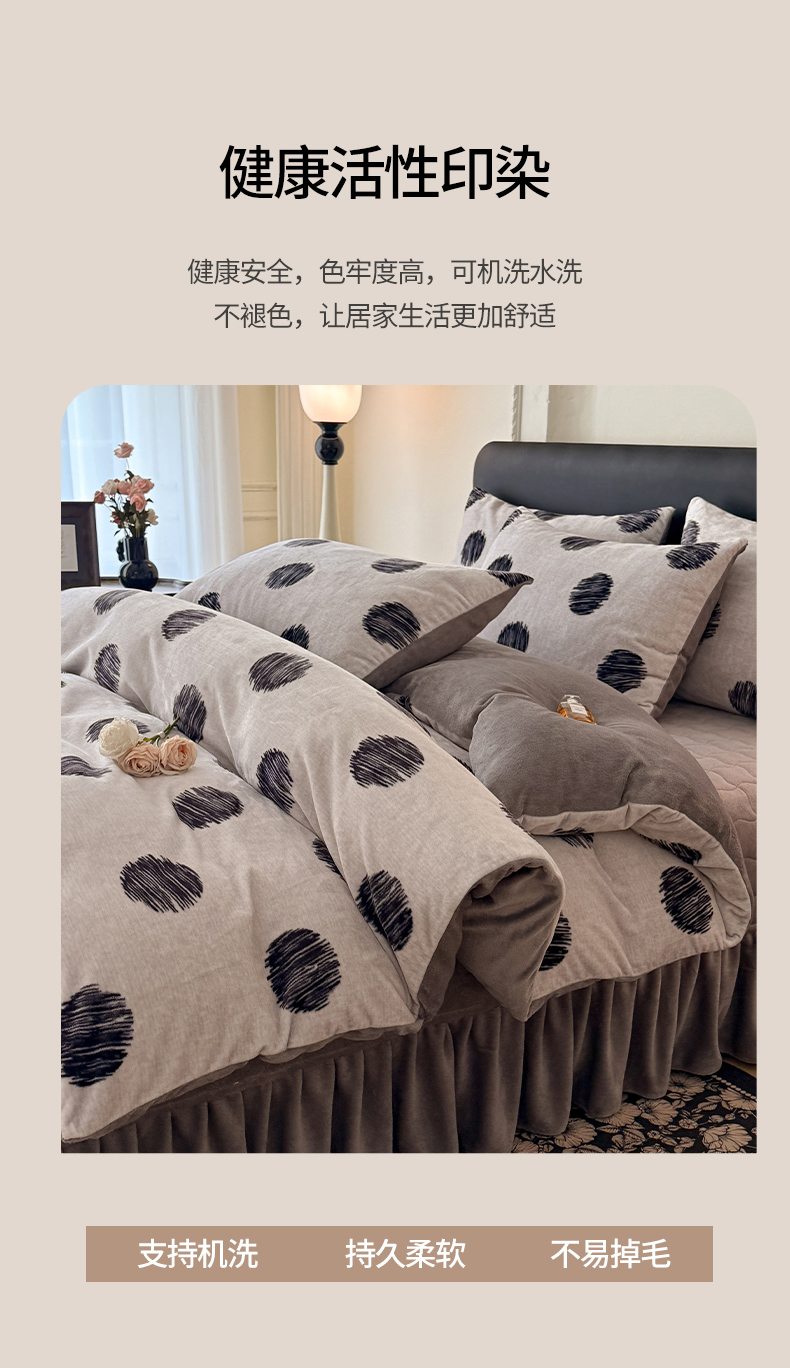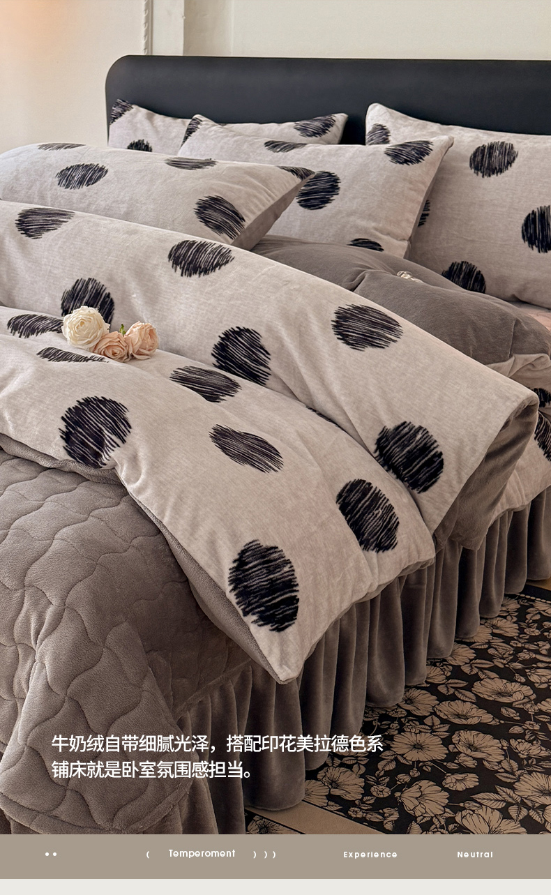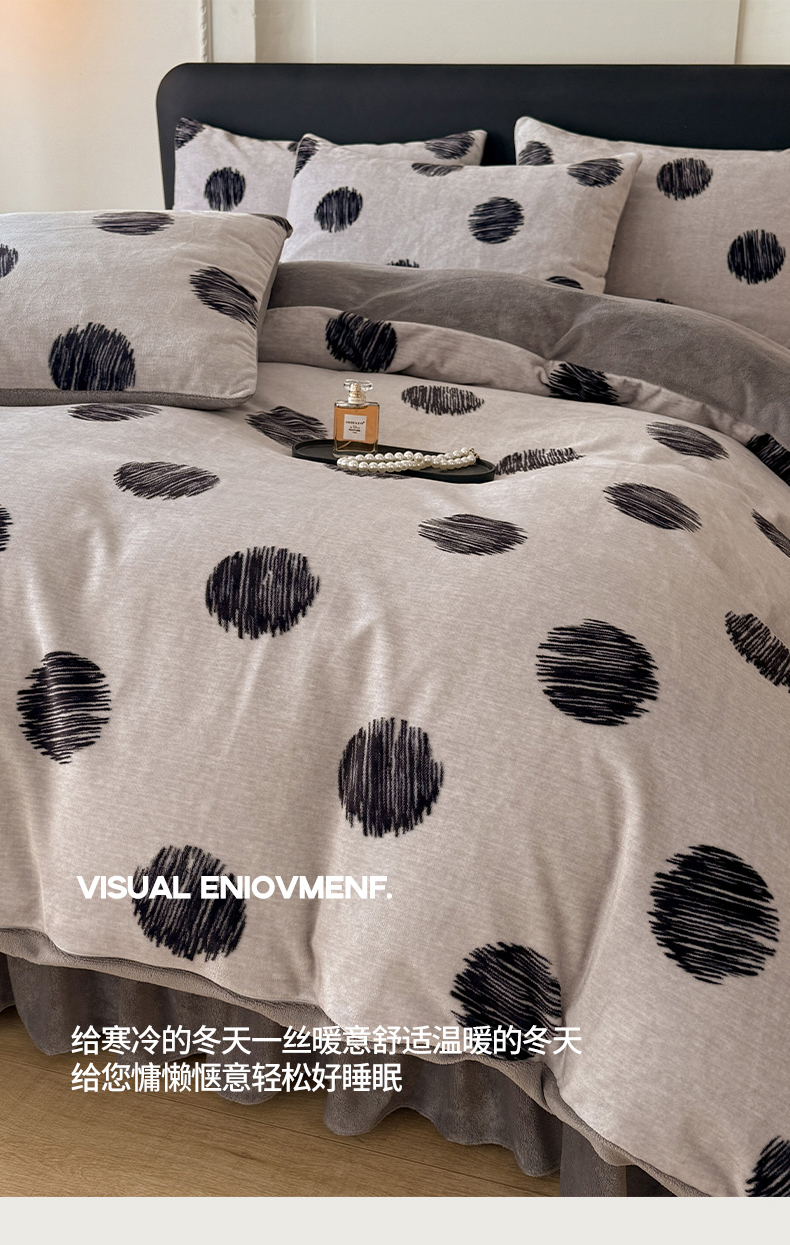 当前位置: 91家纺网 > 商品网购 > 床品套件 > 四件套 > 其它四件套 > 金盛皇朝家纺 2025新款高克重美拉德牛奶绒床单床盖单件三件四件套 大波点