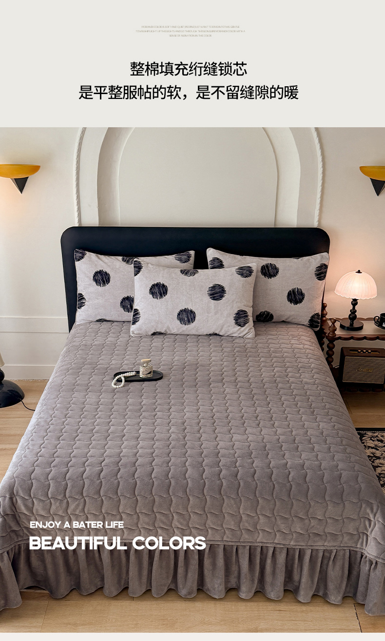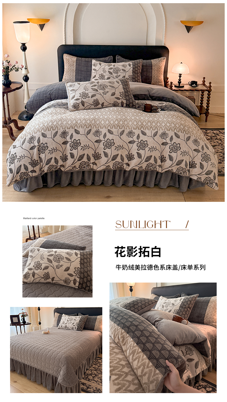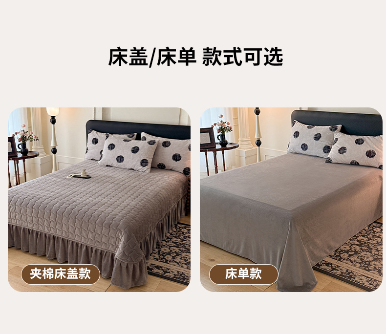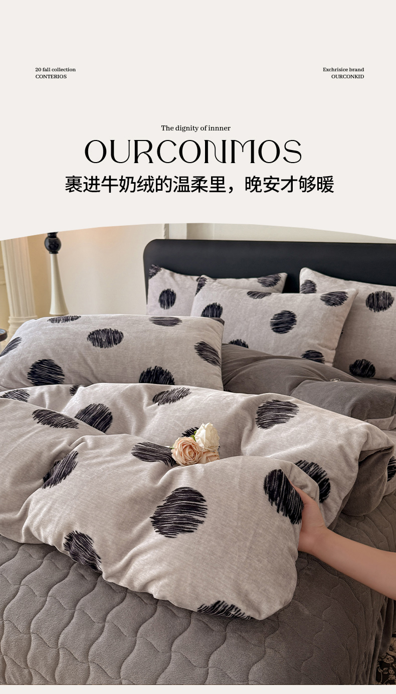 当前位置: 91家纺网 > 商品网购 > 床品套件 > 四件套 > 其它四件套 > 金盛皇朝家纺 2025新款高克重美拉德牛奶绒床单床盖单件三件四件套 大波点
