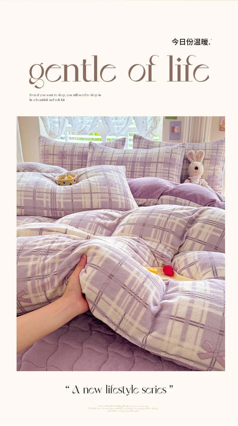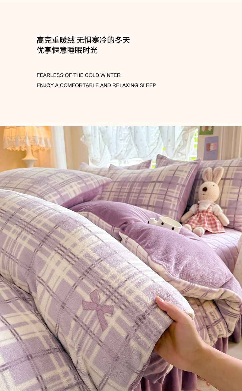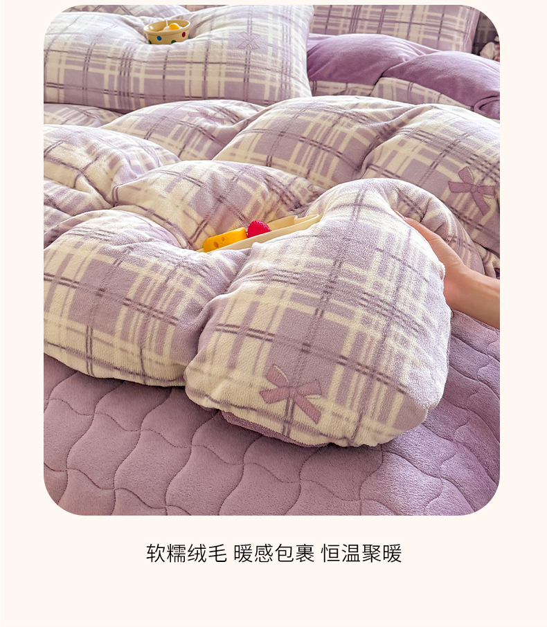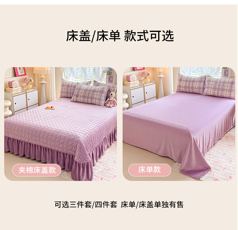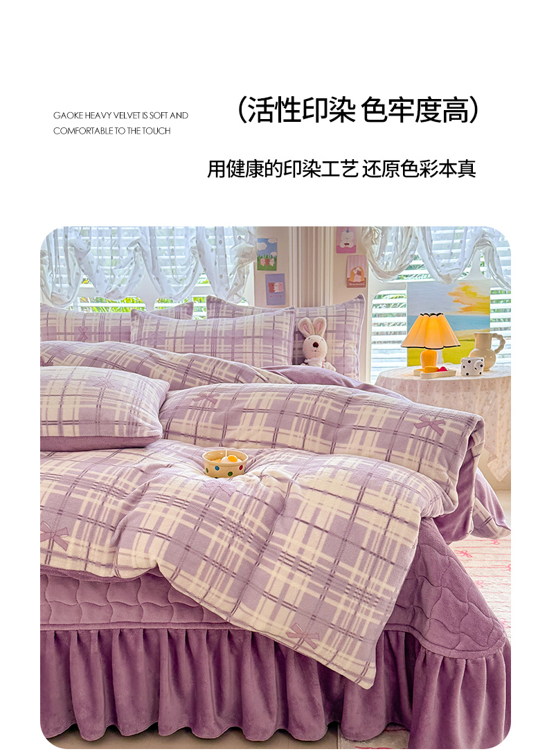 当前位置: 91家纺网 > 商品网购 > 床品套件 > 四件套 > 其它四件套 > 金盛皇朝家纺 2025新款高克重印花牛奶绒床单床盖单件三件四件套 紫格花韵