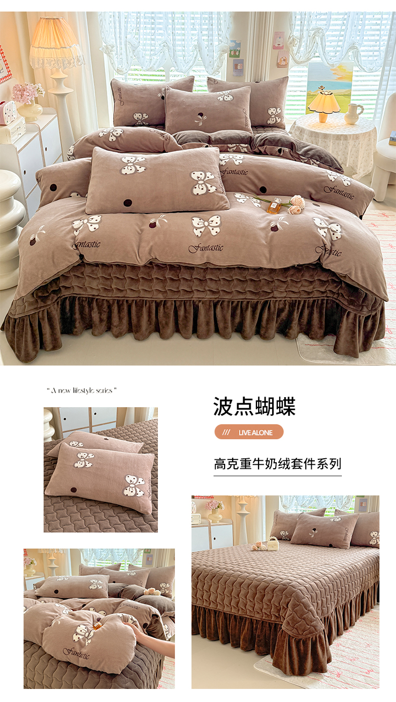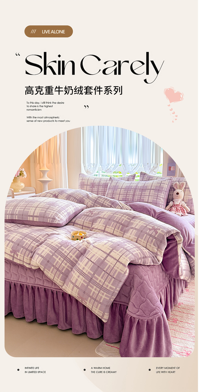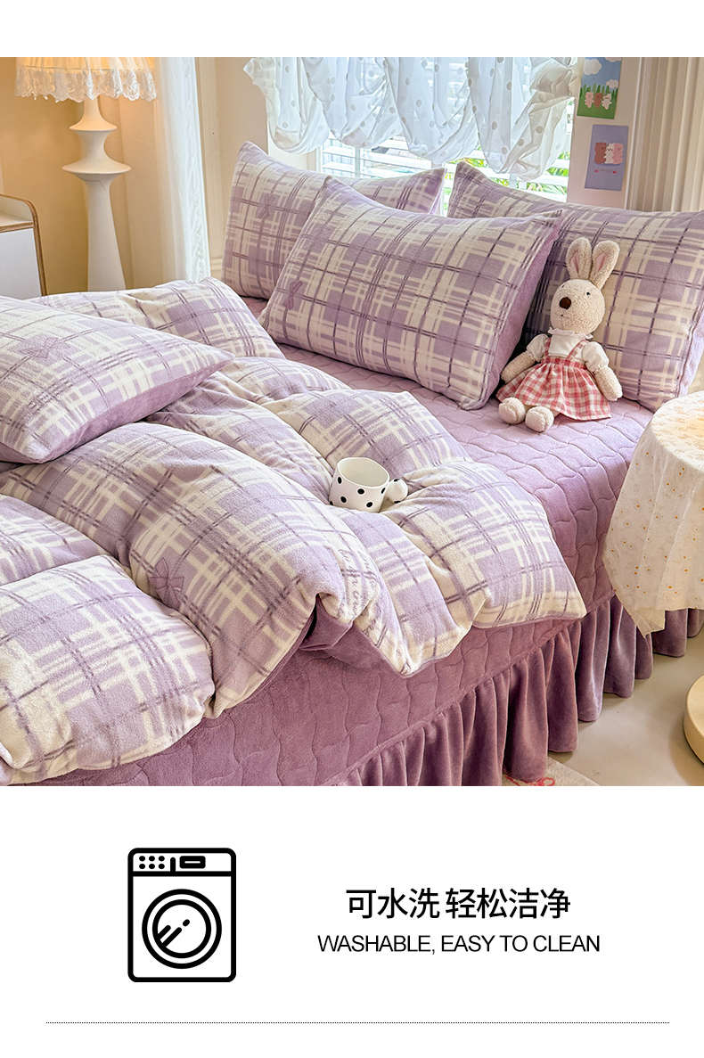 当前位置: 91家纺网 > 商品网购 > 床品套件 > 四件套 > 其它四件套 > 金盛皇朝家纺 2025新款高克重印花牛奶绒床单床盖单件三件四件套 紫格花韵