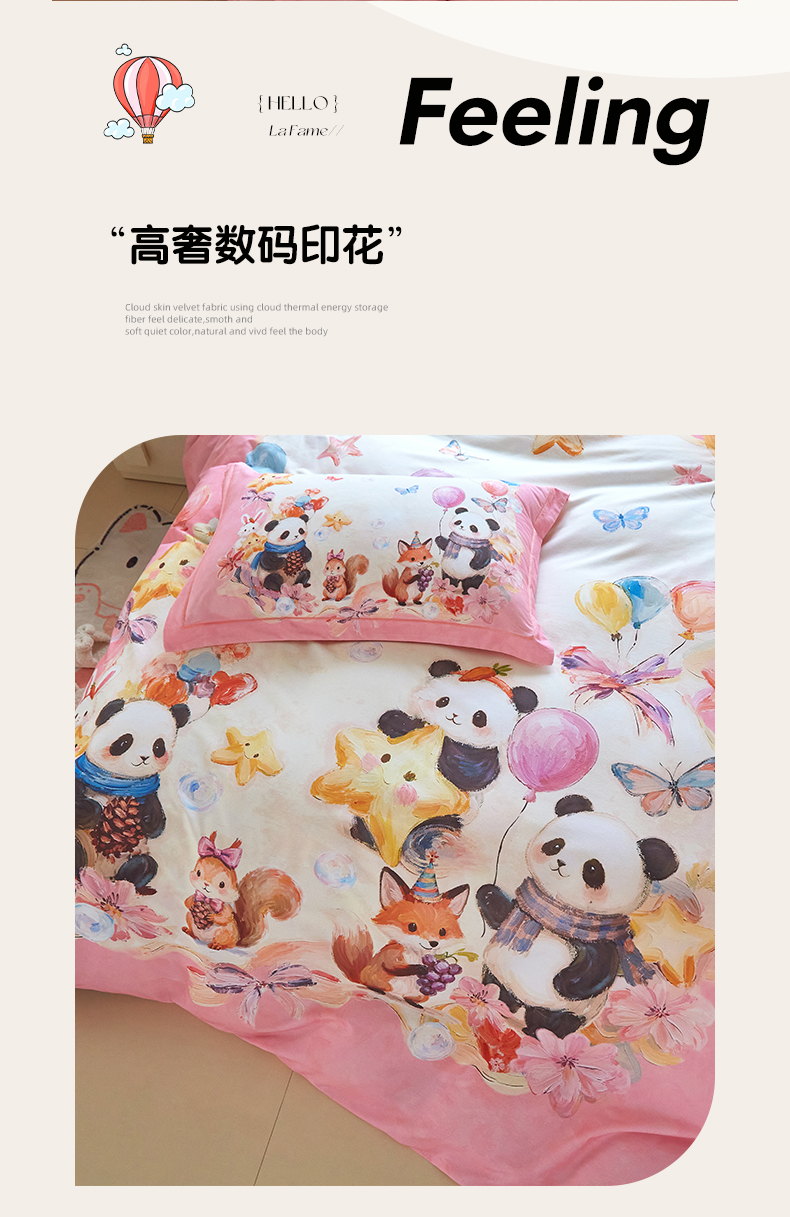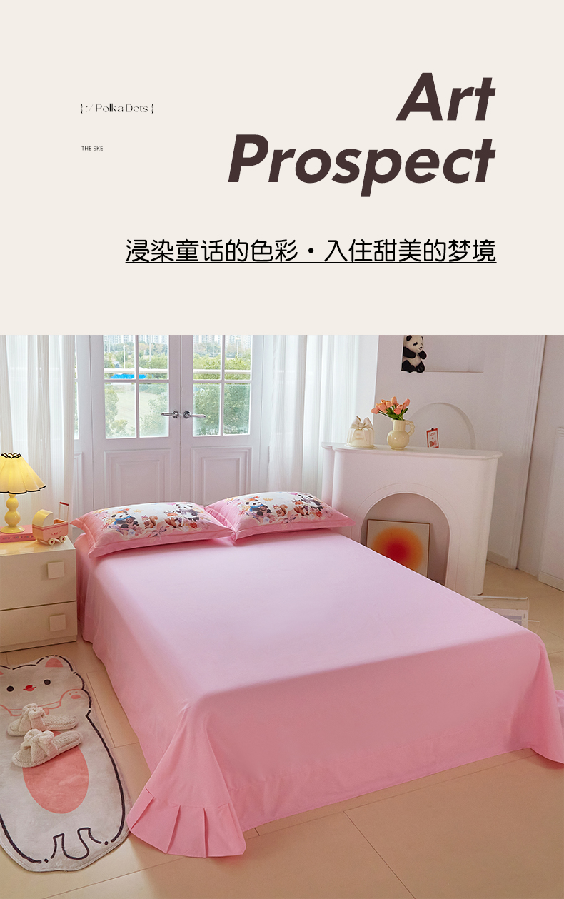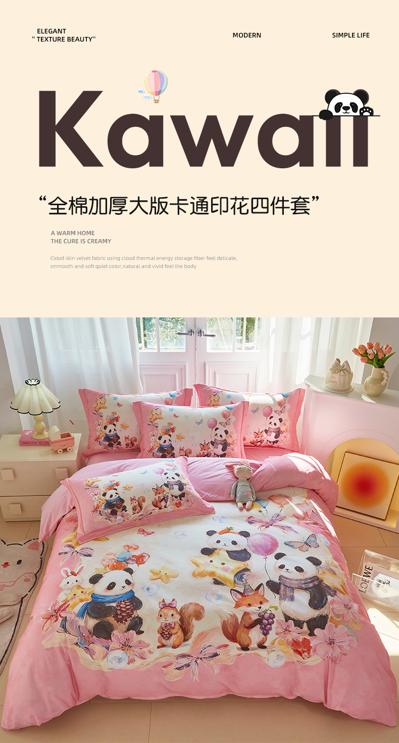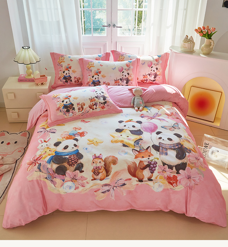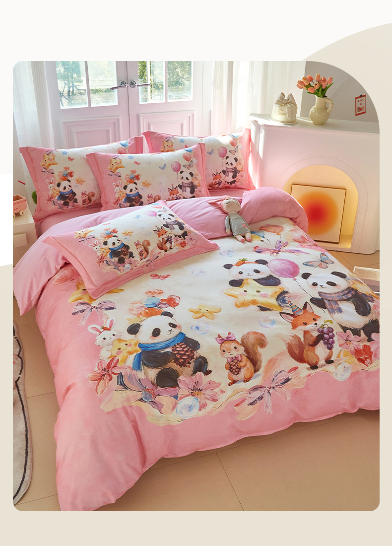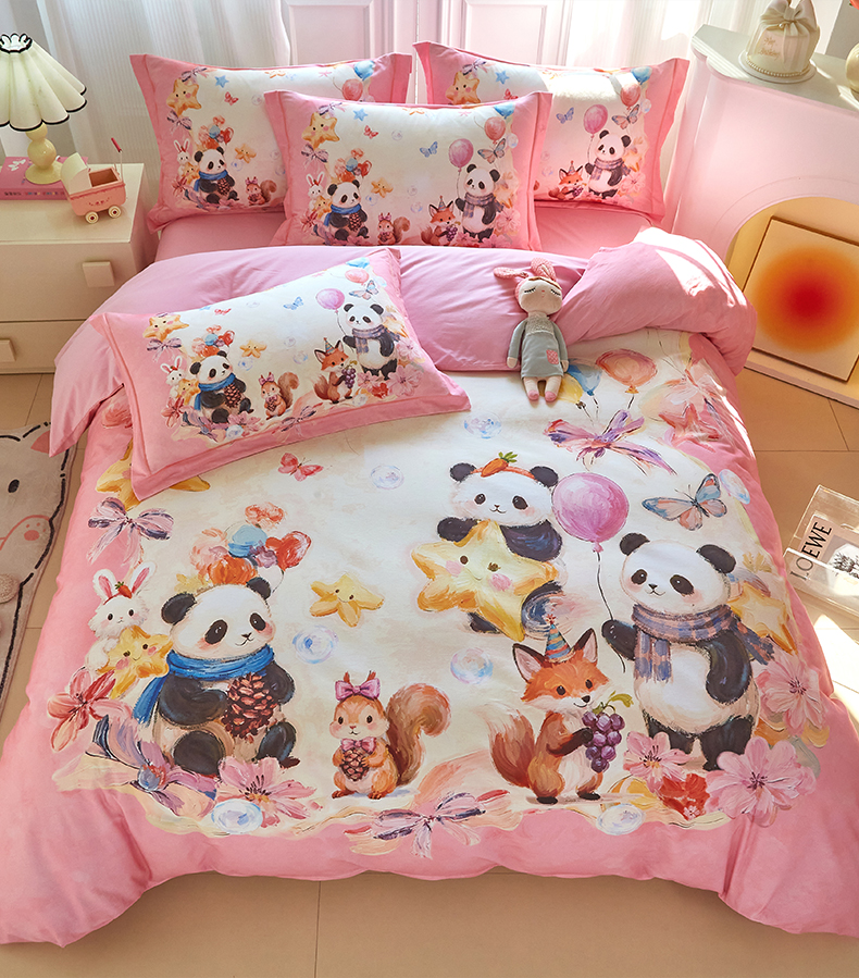 商品名称:格里芬家纺 2025新款全棉纯棉加厚油画风大版卡通印花四件套 (控价标准不低于238元) 墨宝妞妞-粉