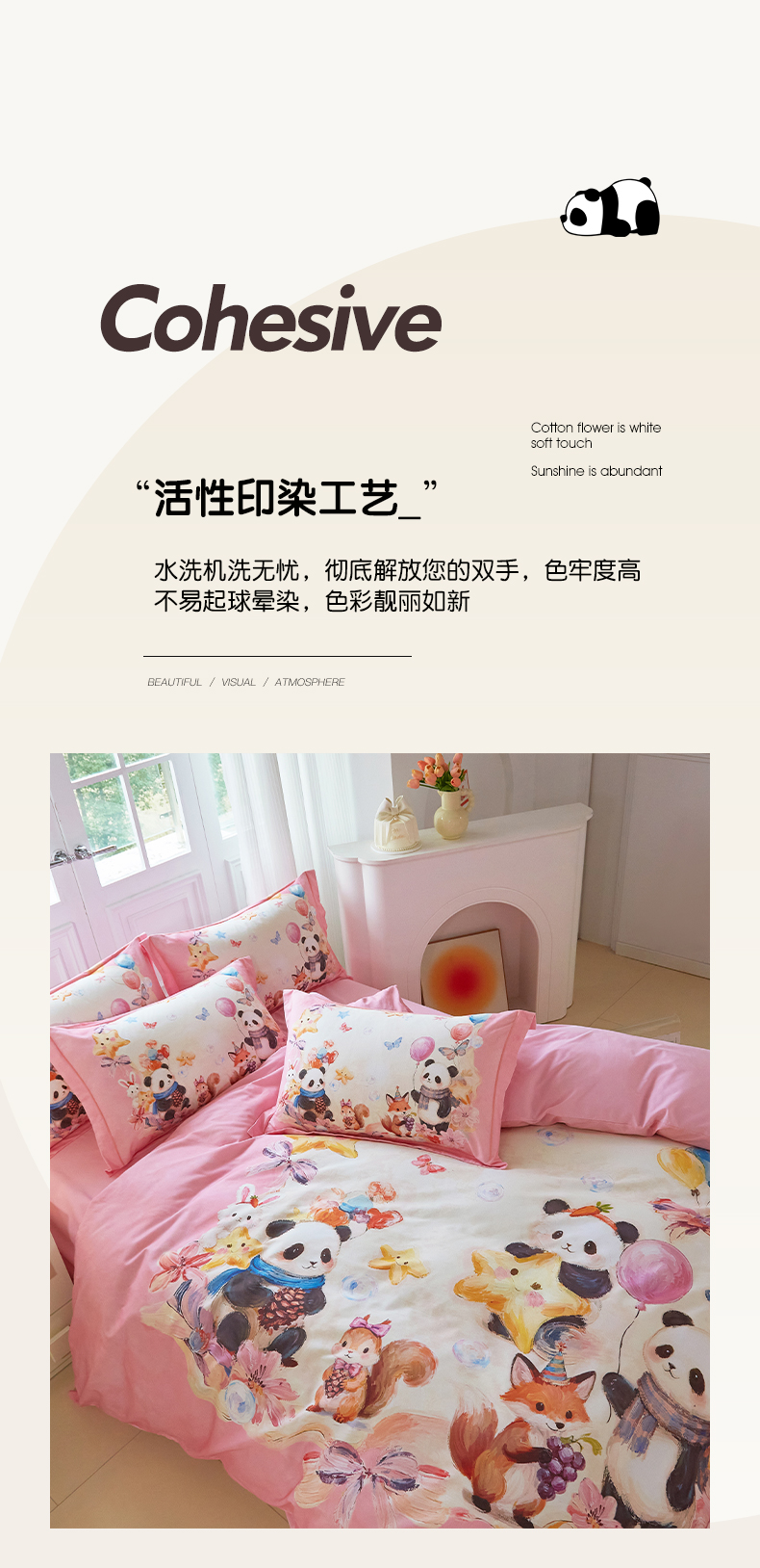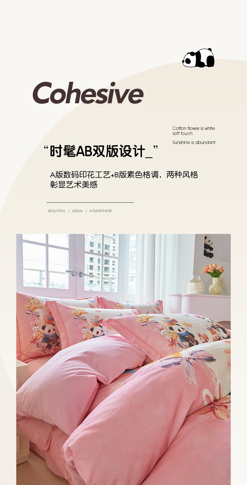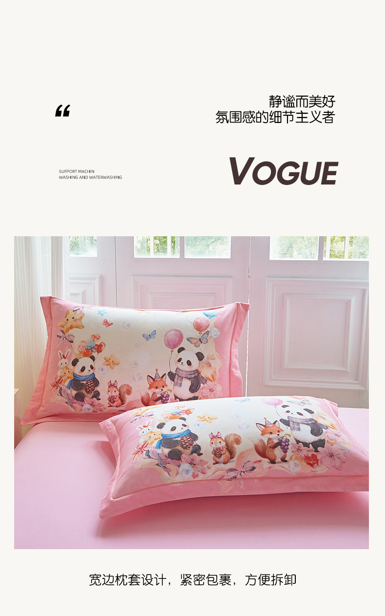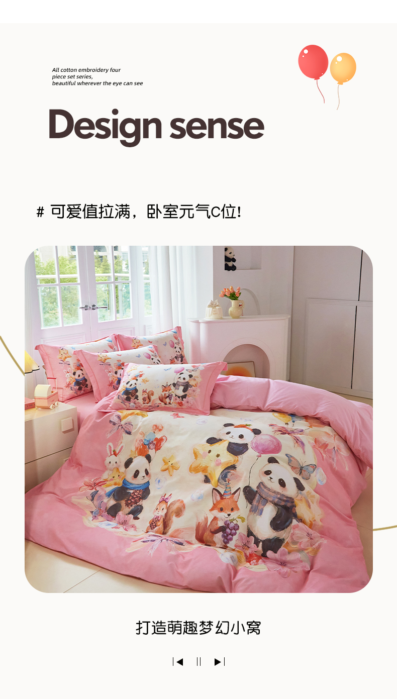 商品名称:格里芬家纺 2025新款全棉纯棉加厚油画风大版卡通印花四件套 (控价标准不低于238元) 墨宝妞妞-粉