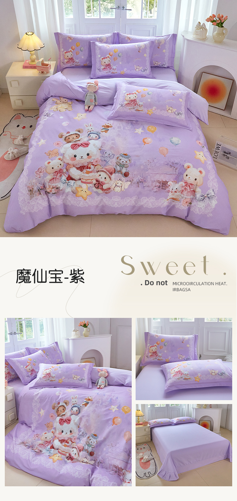 (总)格里芬家纺 2025新款全棉纯棉加厚油画风大版卡通印花四件套 (控价标准不低于238元),墨宝妞妞-绿,墨宝妞妞-粉,魔仙宝-紫,魔仙宝-粉