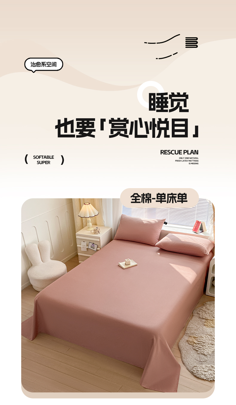 涵宸家纺 2026新款全棉纯色单床单-米兰 床单-豆其