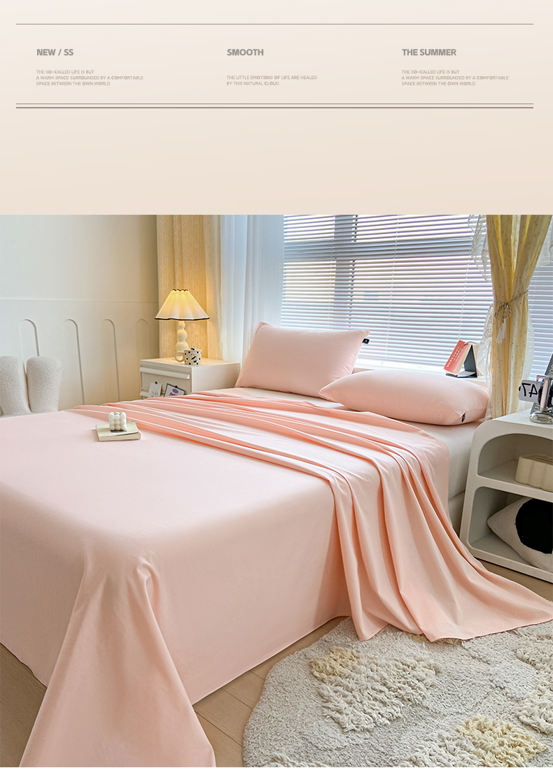 涵宸家纺 2026新款全棉纯色单床单-米兰 床单-烟粉