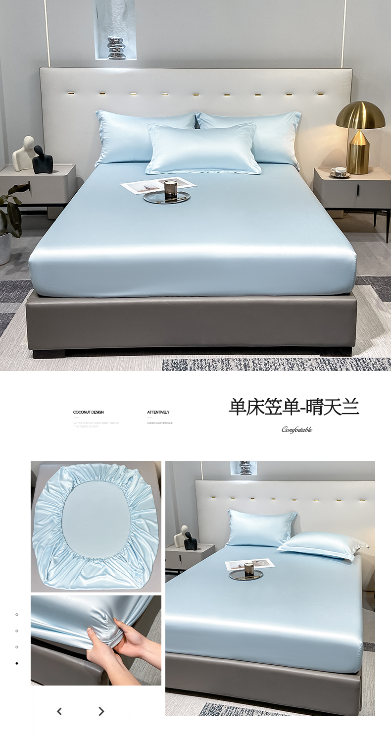 涵宸家纺 2026新款兰精3M天丝纯色单床笠 单床笠-奶昔