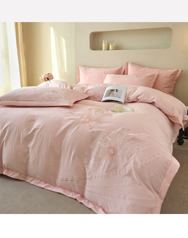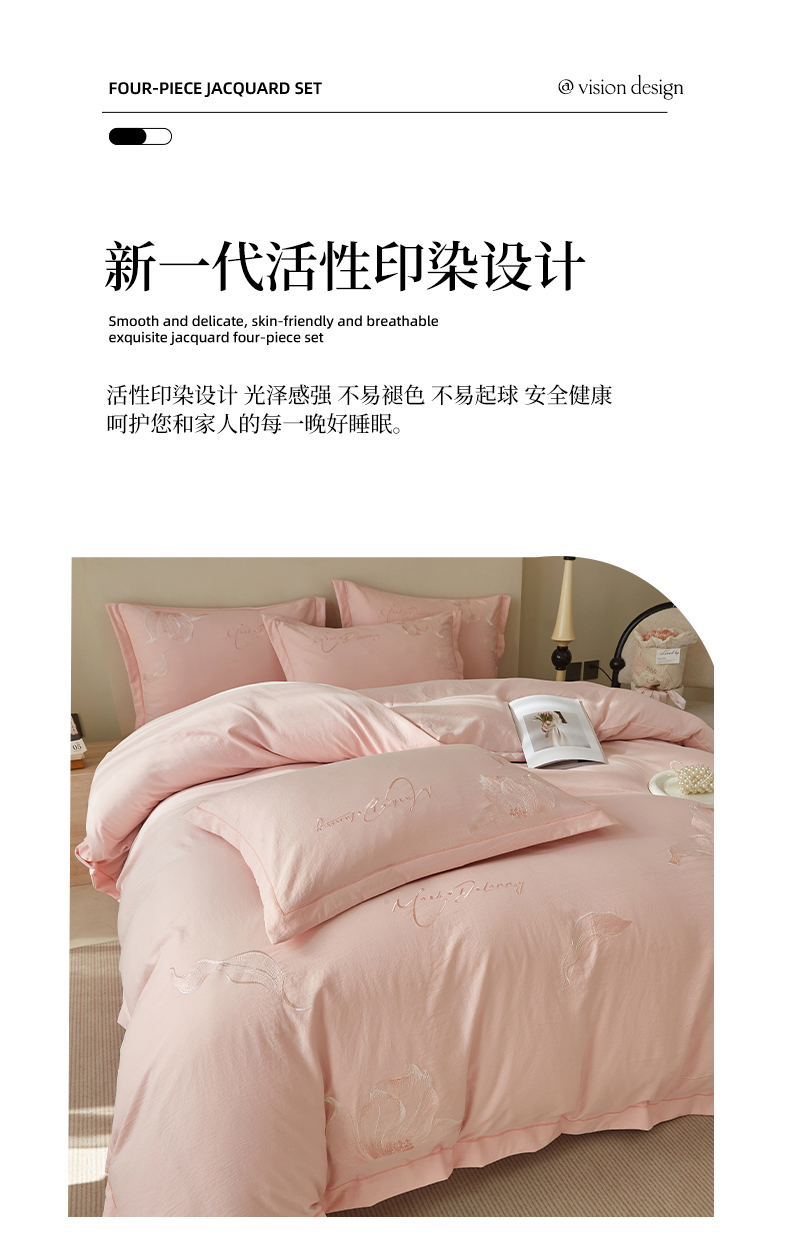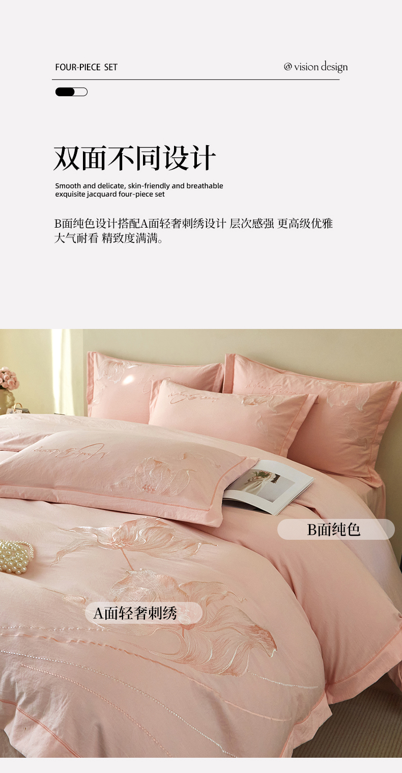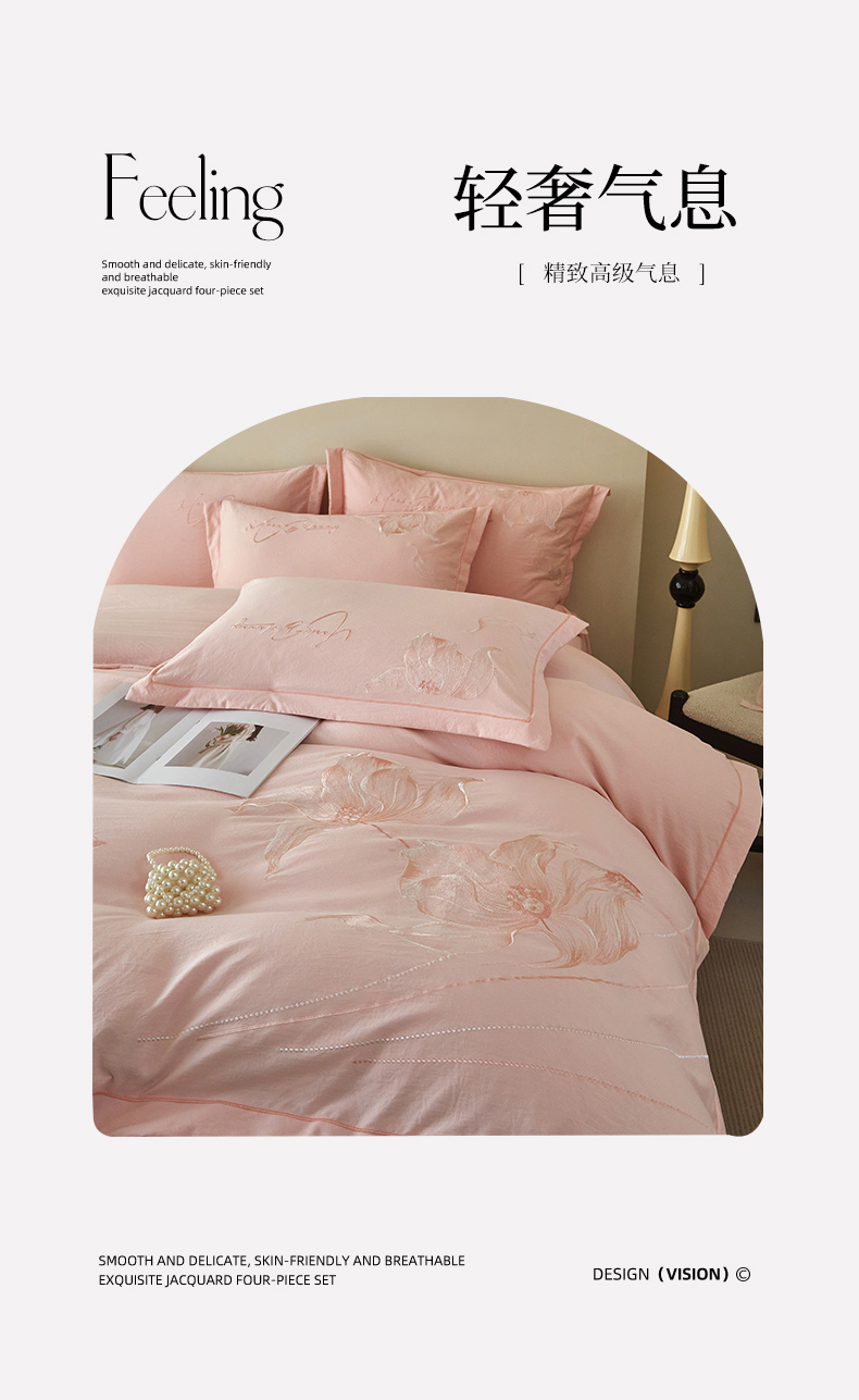 金纱玉纺家纺 2026新款轻奢工艺绣花四件套(提供买家秀) 绚丽-粉