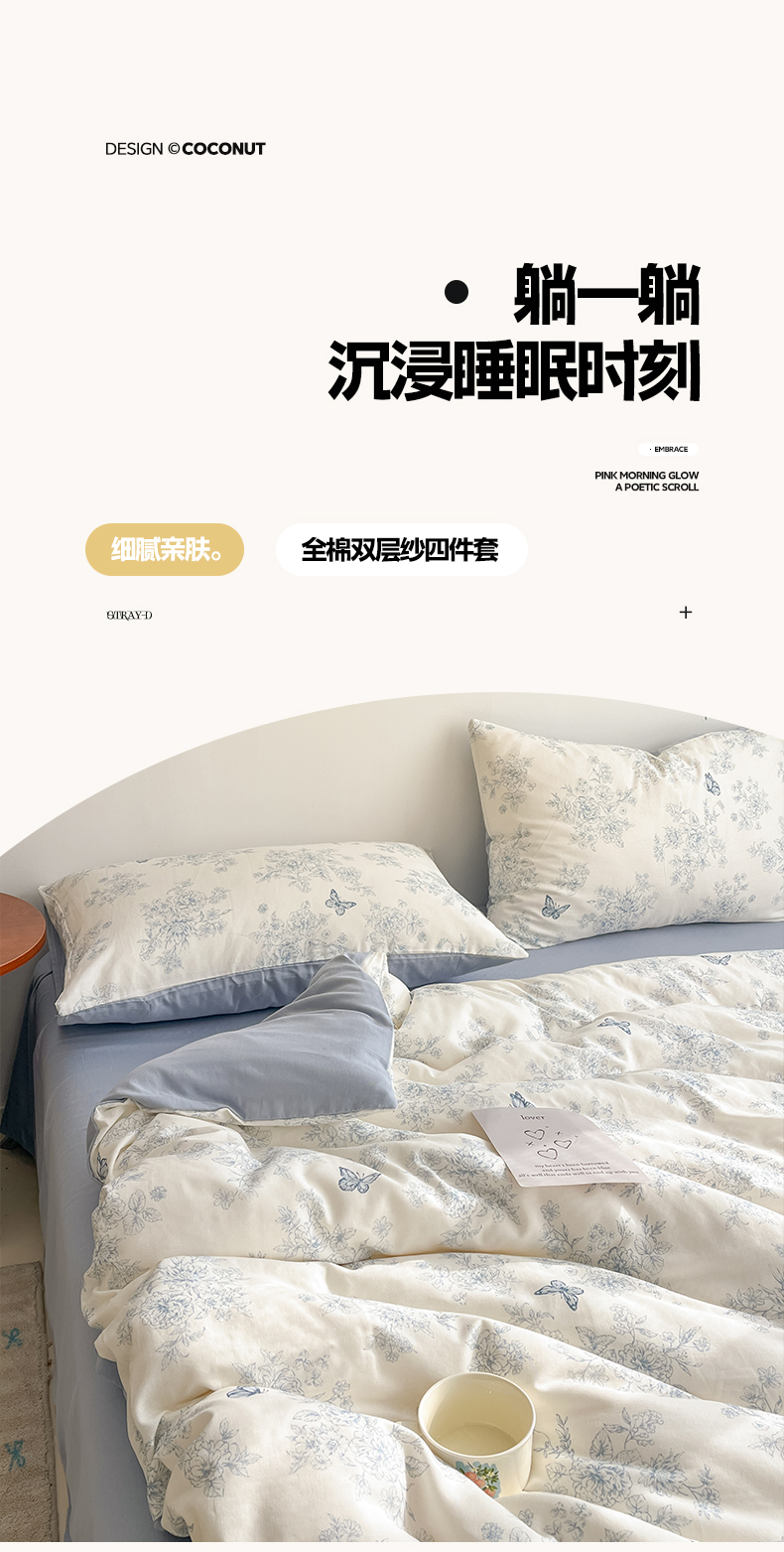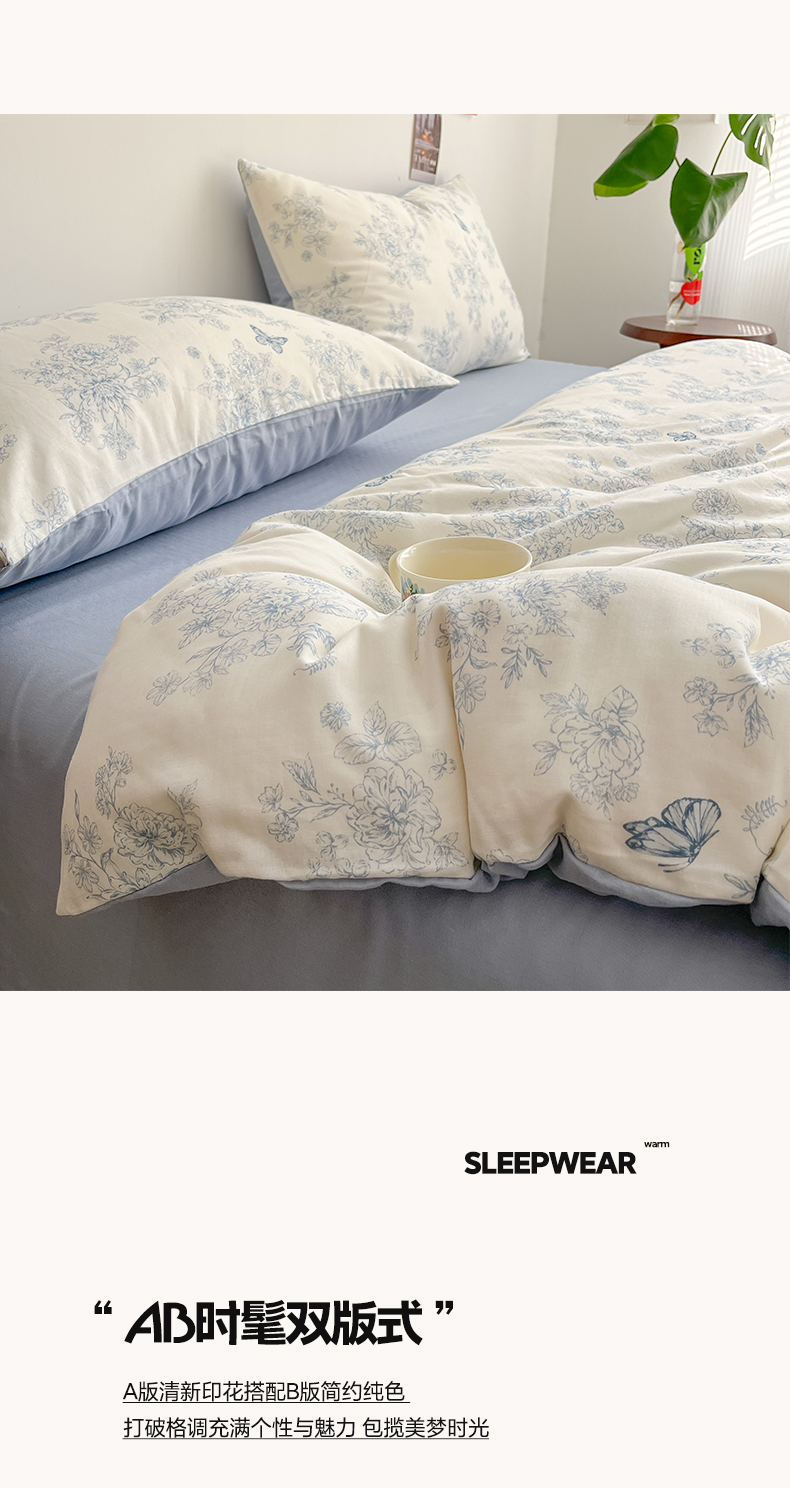 当前位置: 91家纺网 > 商品网购 > 床品套件 > 四件套 > 其它四件套 > 涵宸家纺 2026新款双层纱印花四件套 B文墨碟