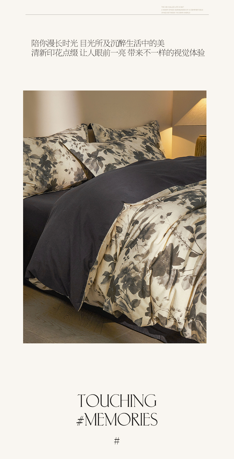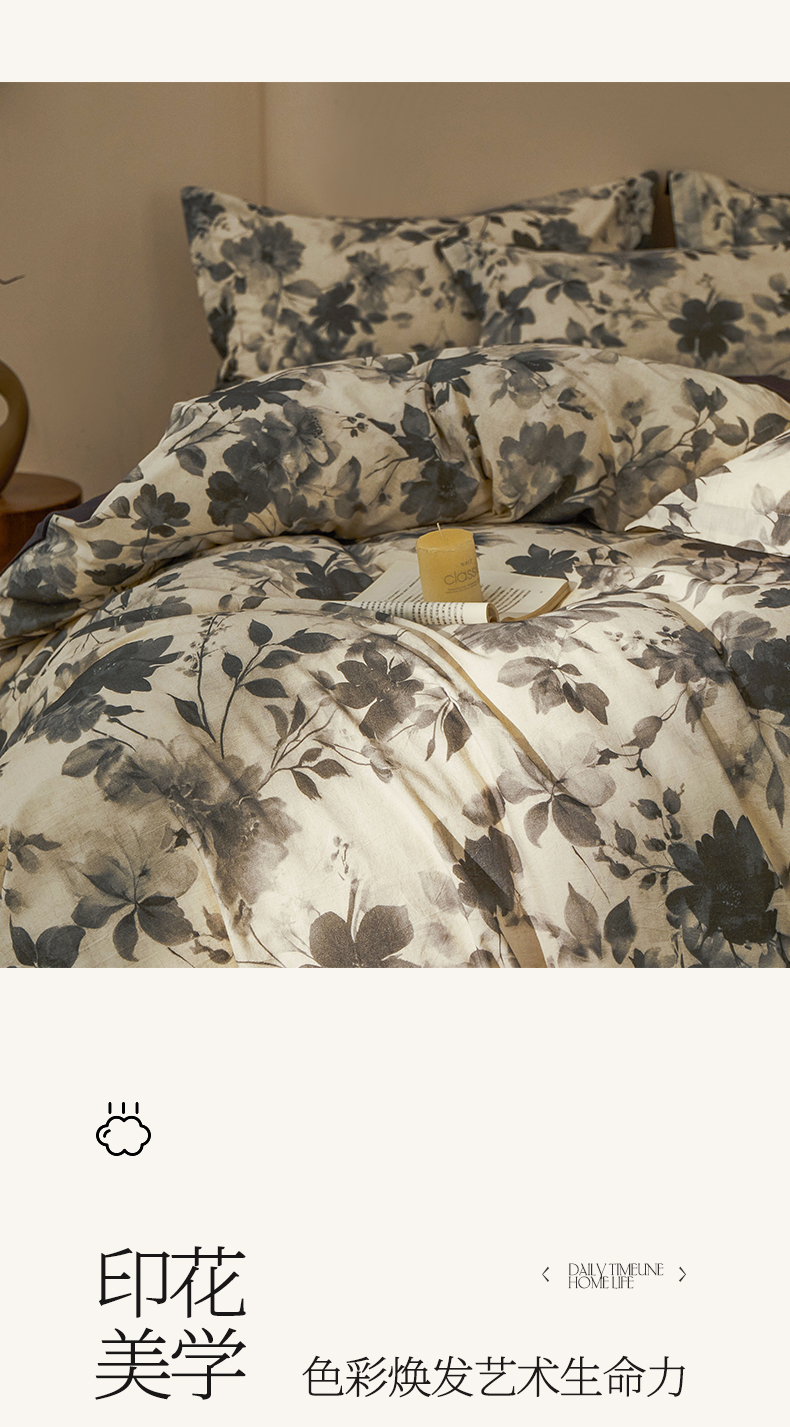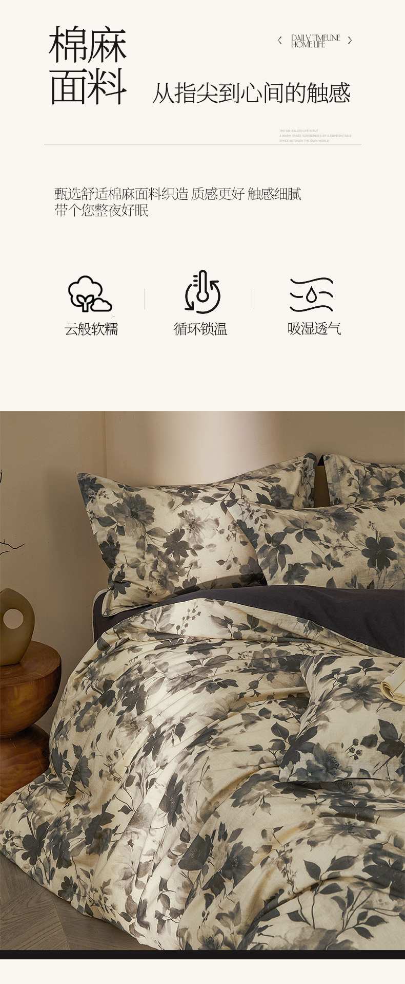 商品名称:涵宸家纺 2026新款棉麻数码印花四件套 墨染花影