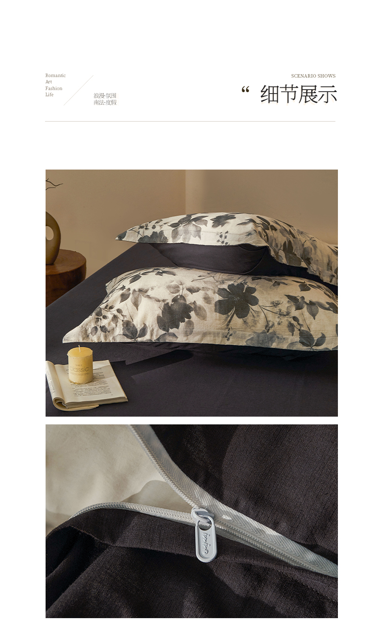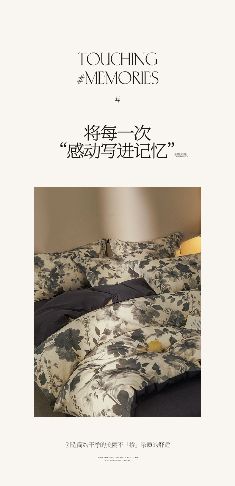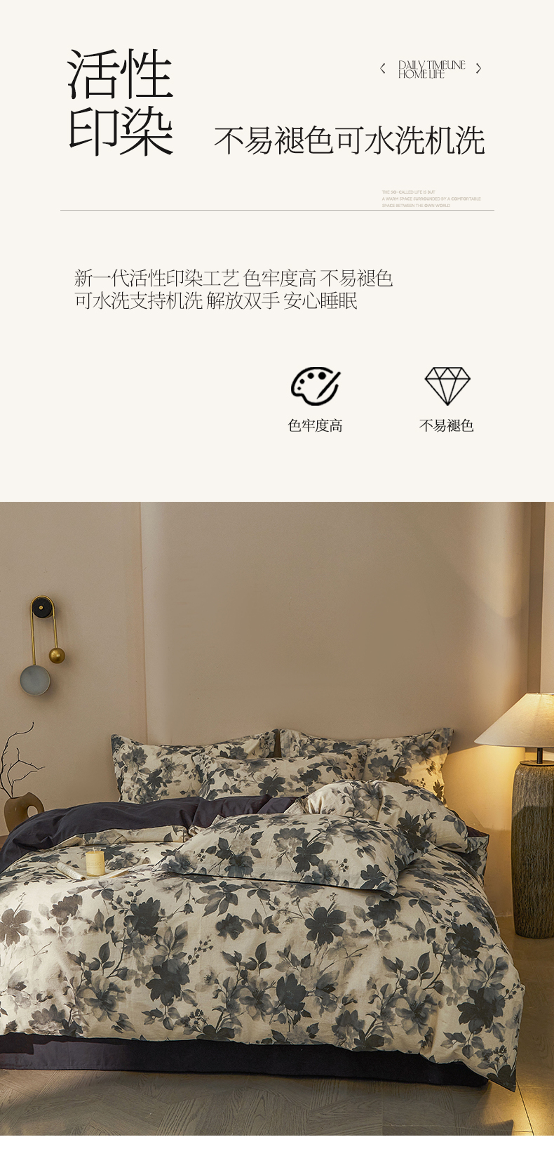 商品名称:涵宸家纺 2026新款棉麻数码印花四件套 墨染花影
