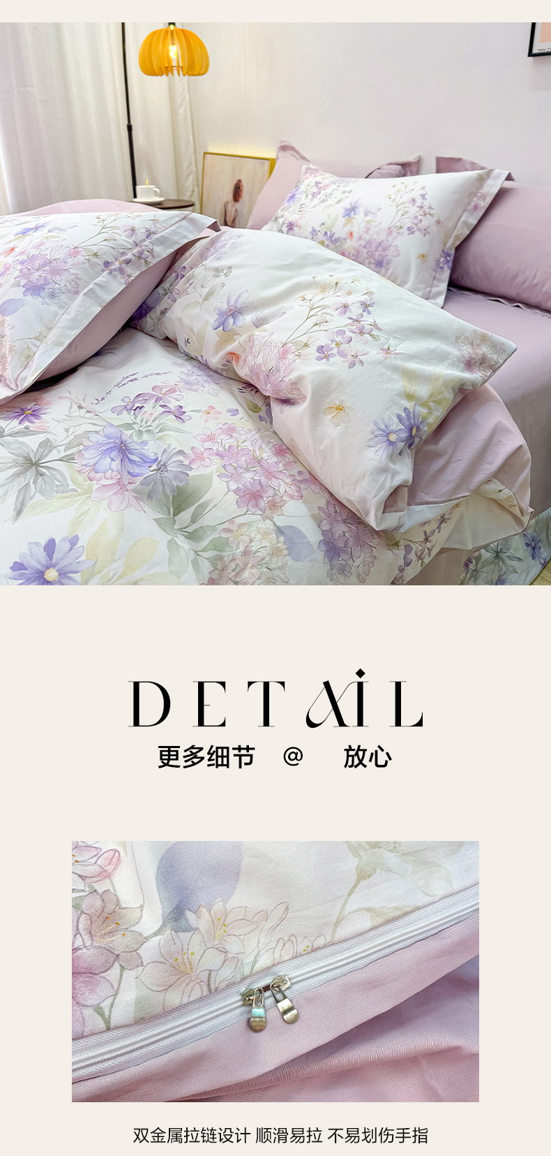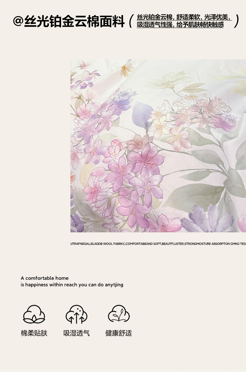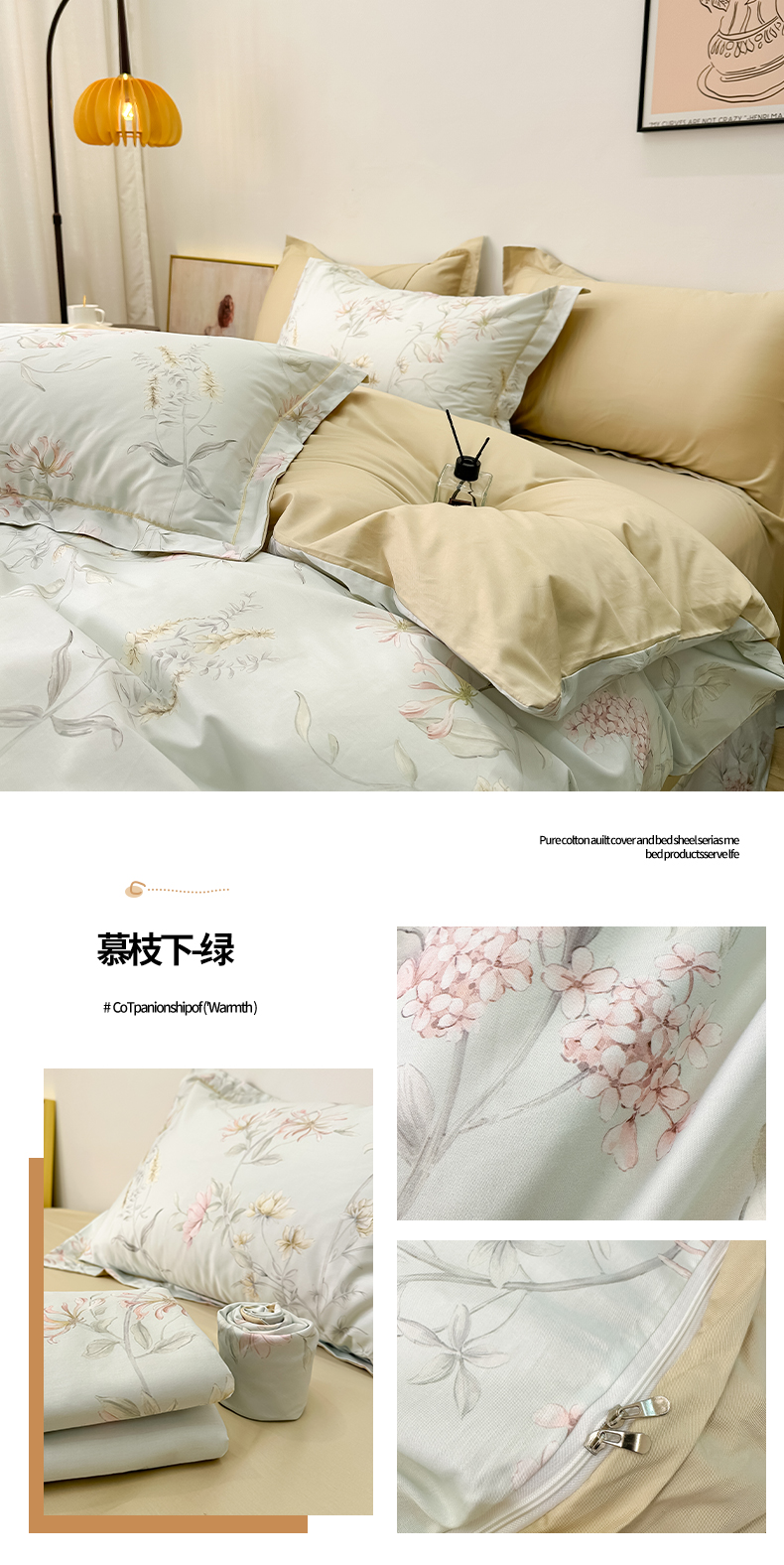 (总)橙艺家居 2026新款丝光铂金云棉印花四件套 本店线上严格控价,券后、活动后标准不得低于218元,以此类推。请各位老爷严格遵守,以免低价后再调整价格,影响链接权重,花朝拾露-紫,花田诗梦-粉,花颜外-粉,蔓月-紫,梦叶集-粉,慕枝下-绿,千叶密语-粉,闻栖-绿,雅莹-绿,叶间绒雪-兰,叶木槿-米,予她-粉,自然低语-绿,芙晚,奈亚,婉情-灰