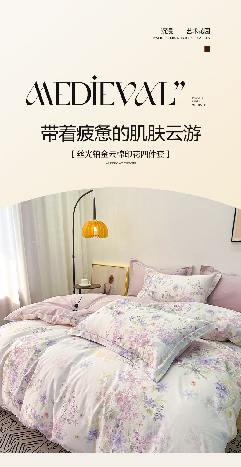 商品名称:橙艺家居 2026新款丝光铂金云棉印花四件套 本店线上严格控价,券后、活动后标准不得低于218元,以此类推。请各位老爷严格遵守,以免低价后再调整价格,影响链接权重 千叶密语-粉