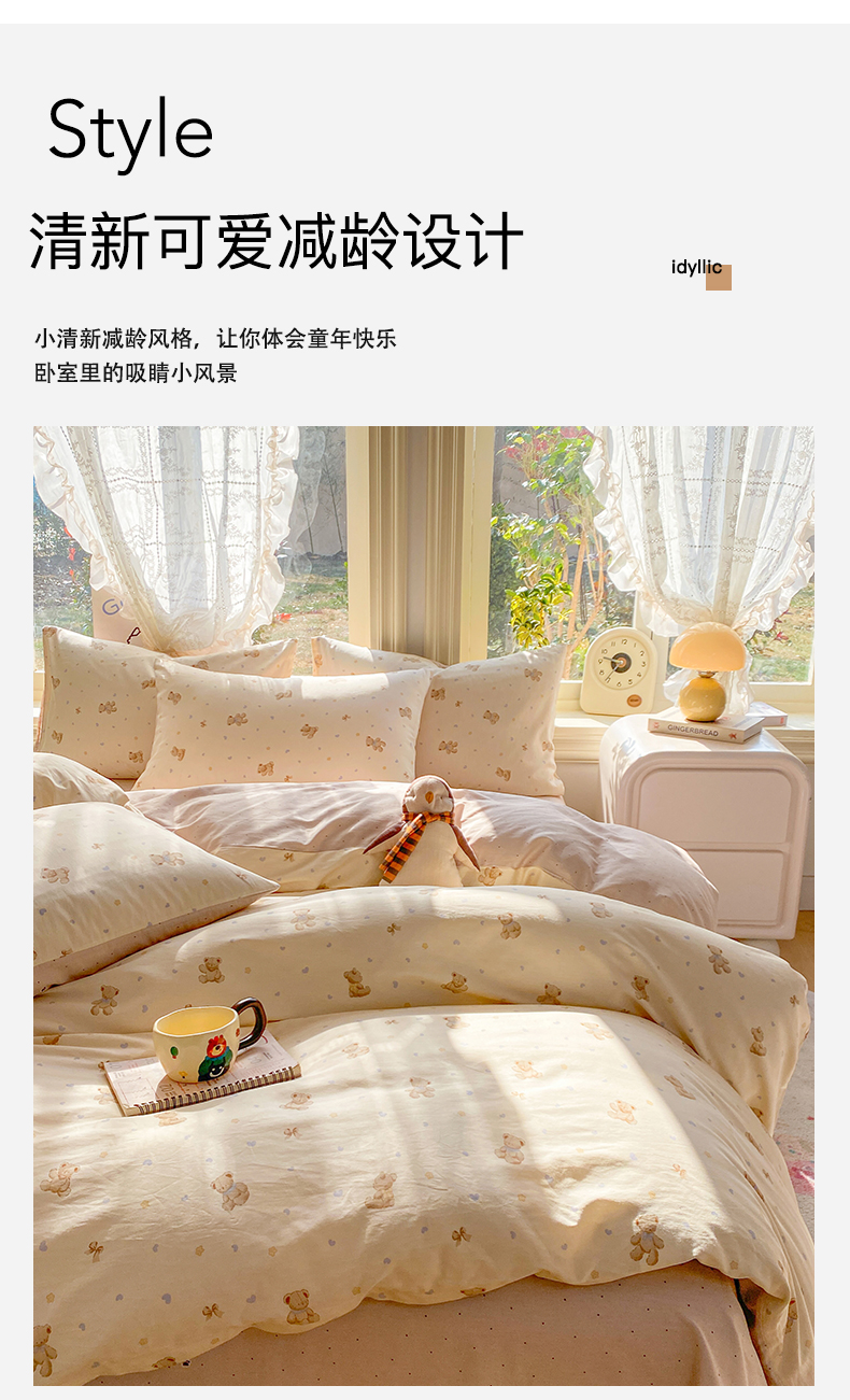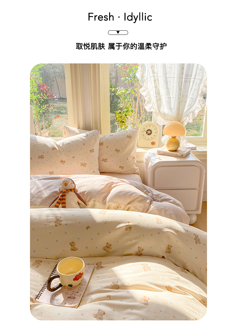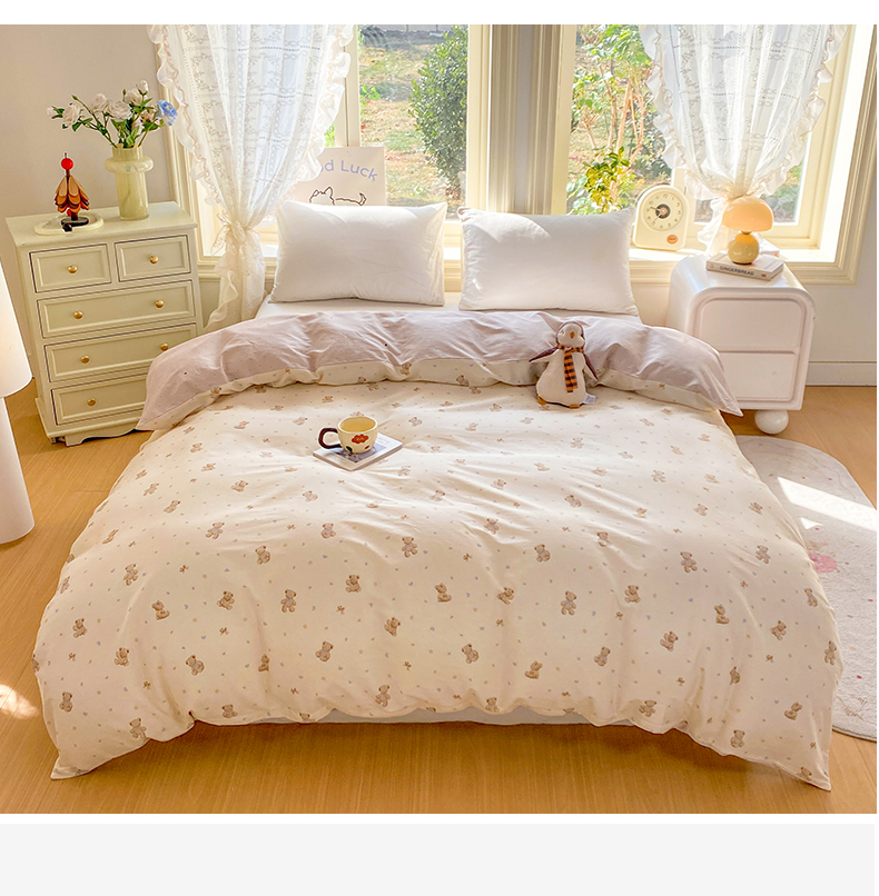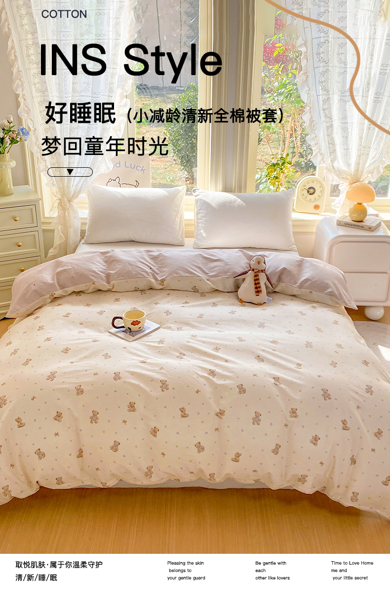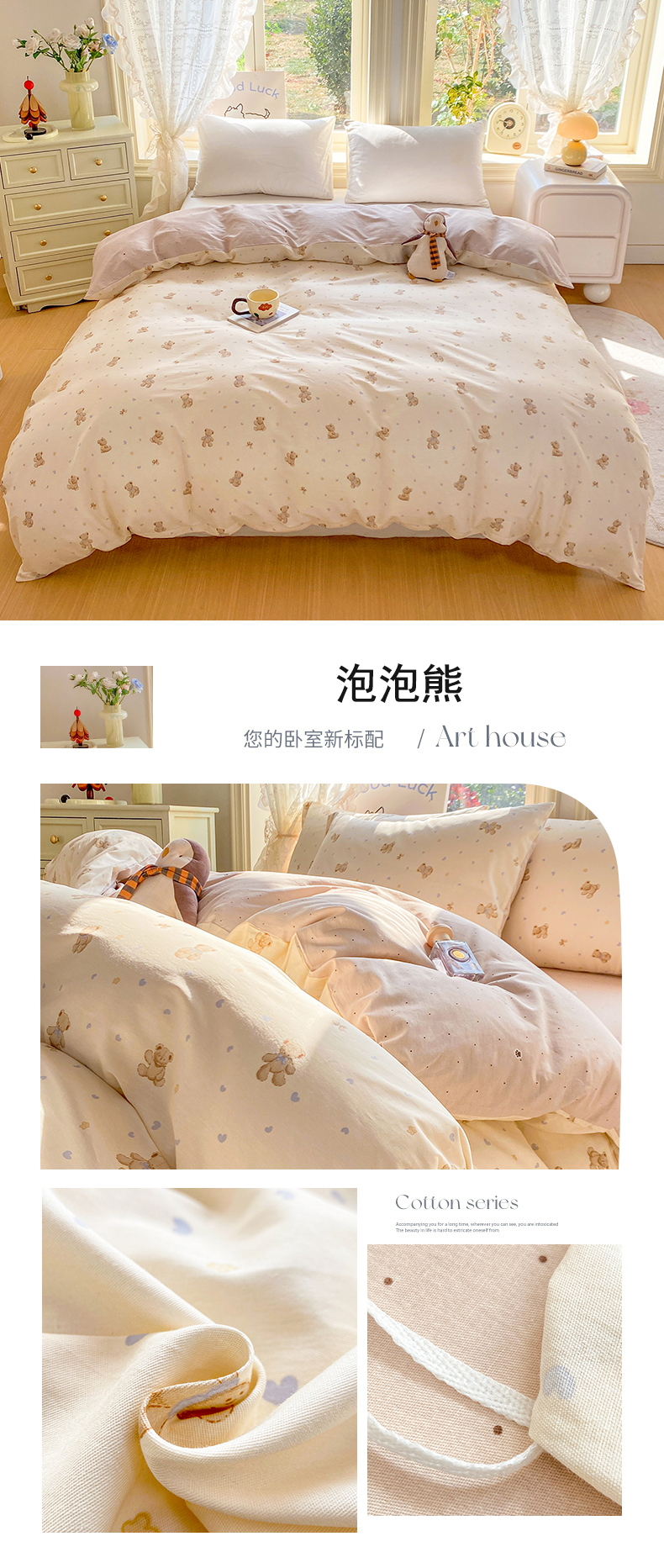 商品名称:黑马家居 2026新款13070全棉印花小清新卡通花卉单品被套系列 泡泡熊