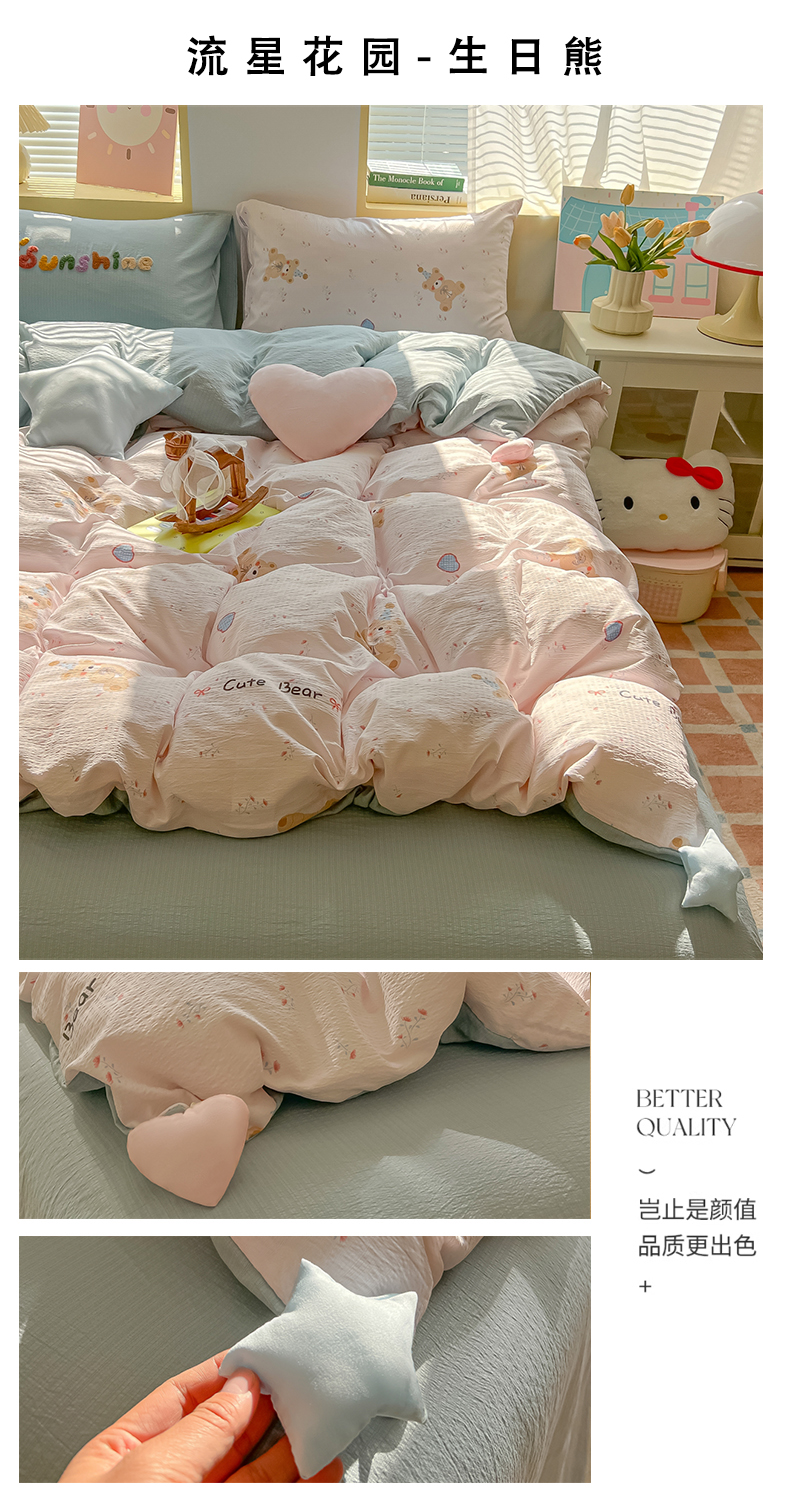 (总)子钦家纺 2026春夏新款提花泡芙棉可爱小清新手工爱心小星星系列床单床笠四件套-流星花园