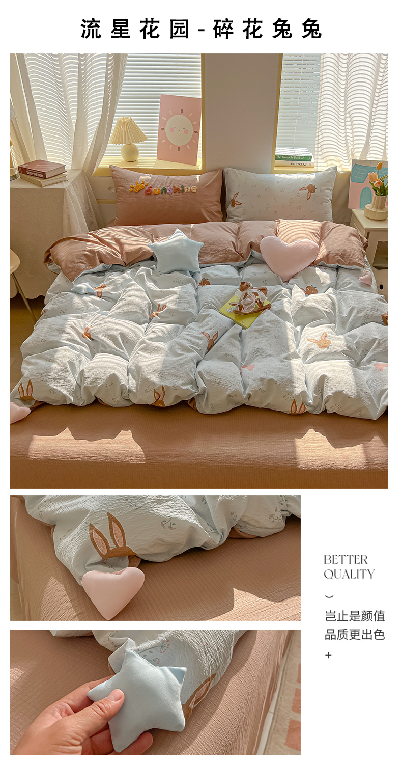 商品名称:(总)子钦家纺 2026春夏新款提花泡芙棉可爱小清新手工爱心小星星系列床单床笠四件套-流星花园