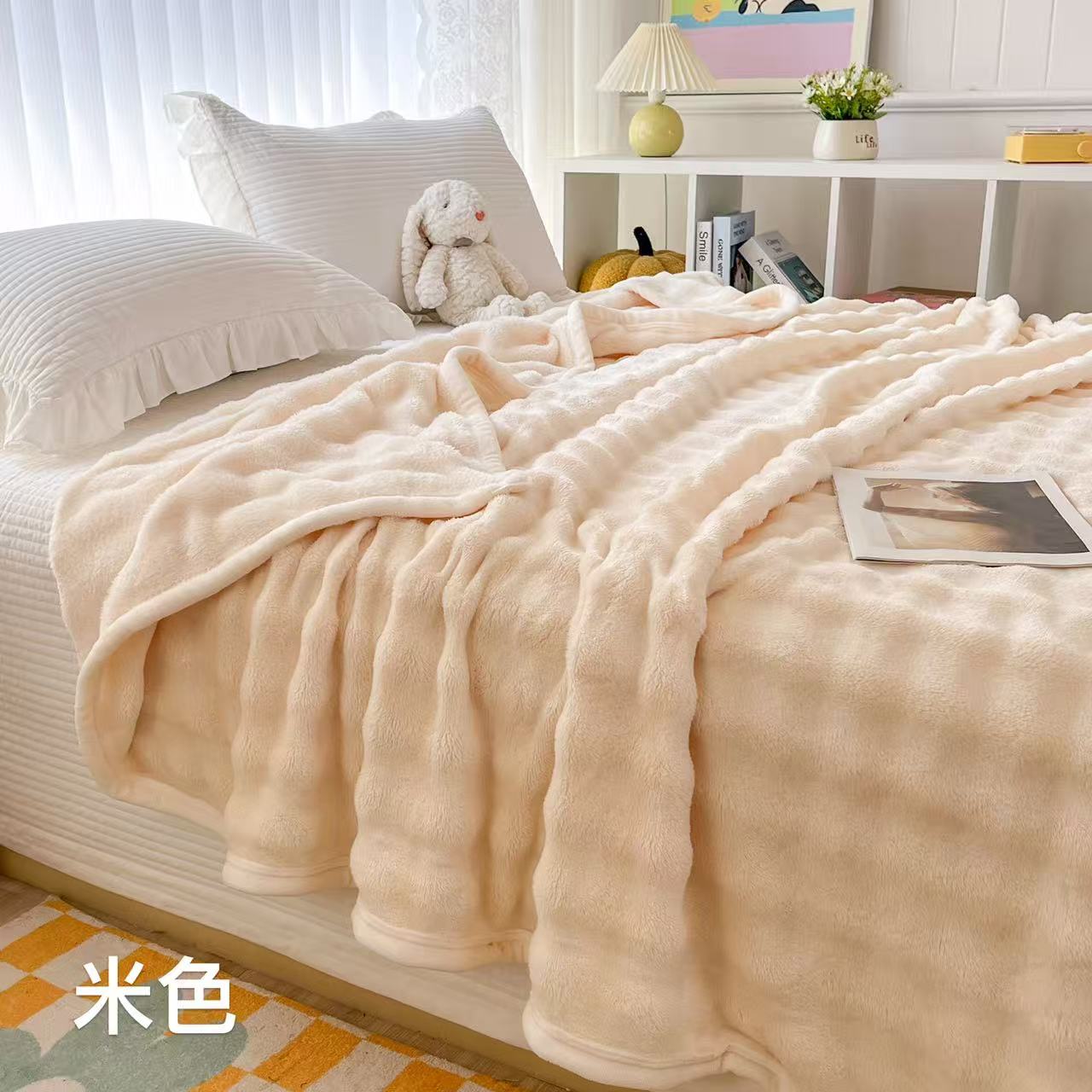 (总)席匠 2026春夏新款纯色泡泡绒毯多功能盖毯,驼色,玉粉色,粉色,紫色,浅驼色,米色,兰色