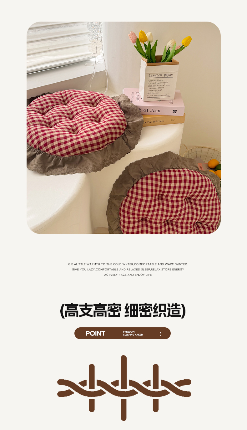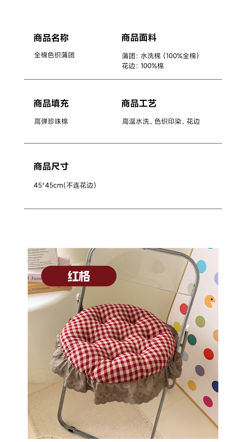 当前位置: 91家纺网 > 商品网购 > 居家布艺 > 坐垫/椅垫/沙发垫 > 椅垫 > 座享家 2026新款全棉色织大花边蒲团 咖格