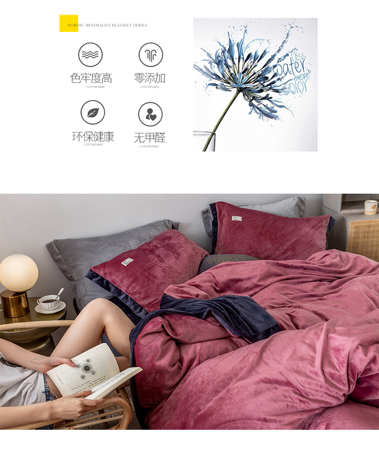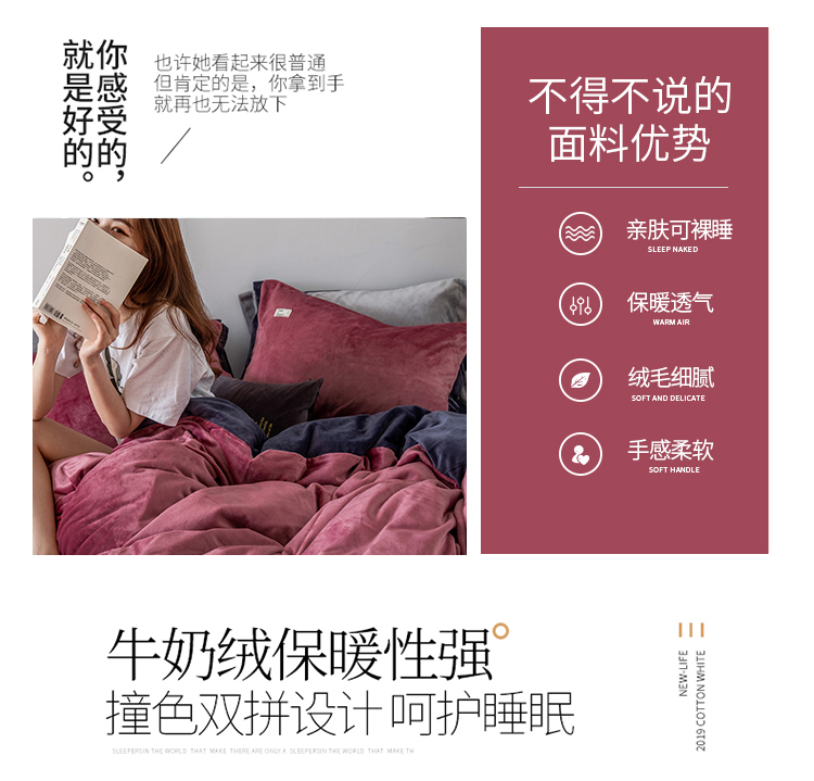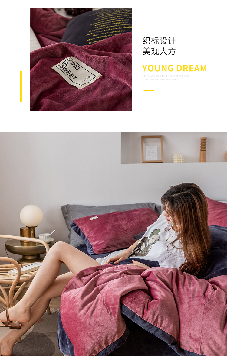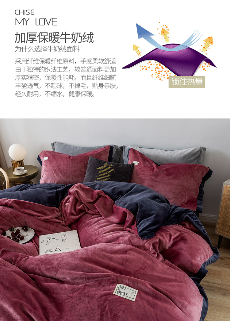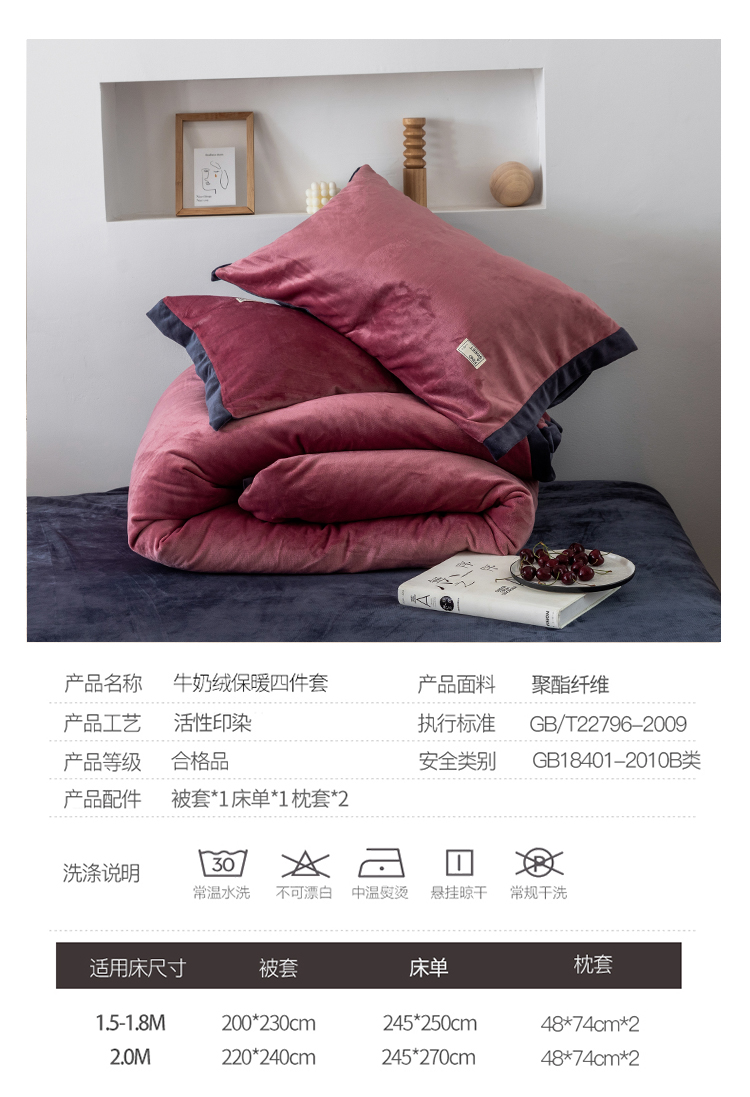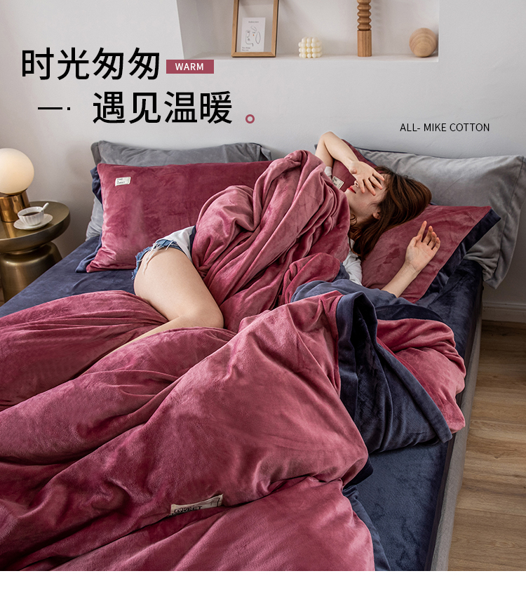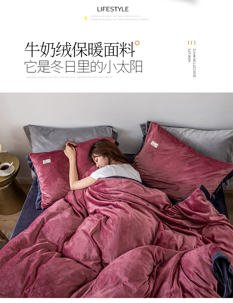商品名称:润缦 2019新款牛奶绒终版四件套 豆沙深灰