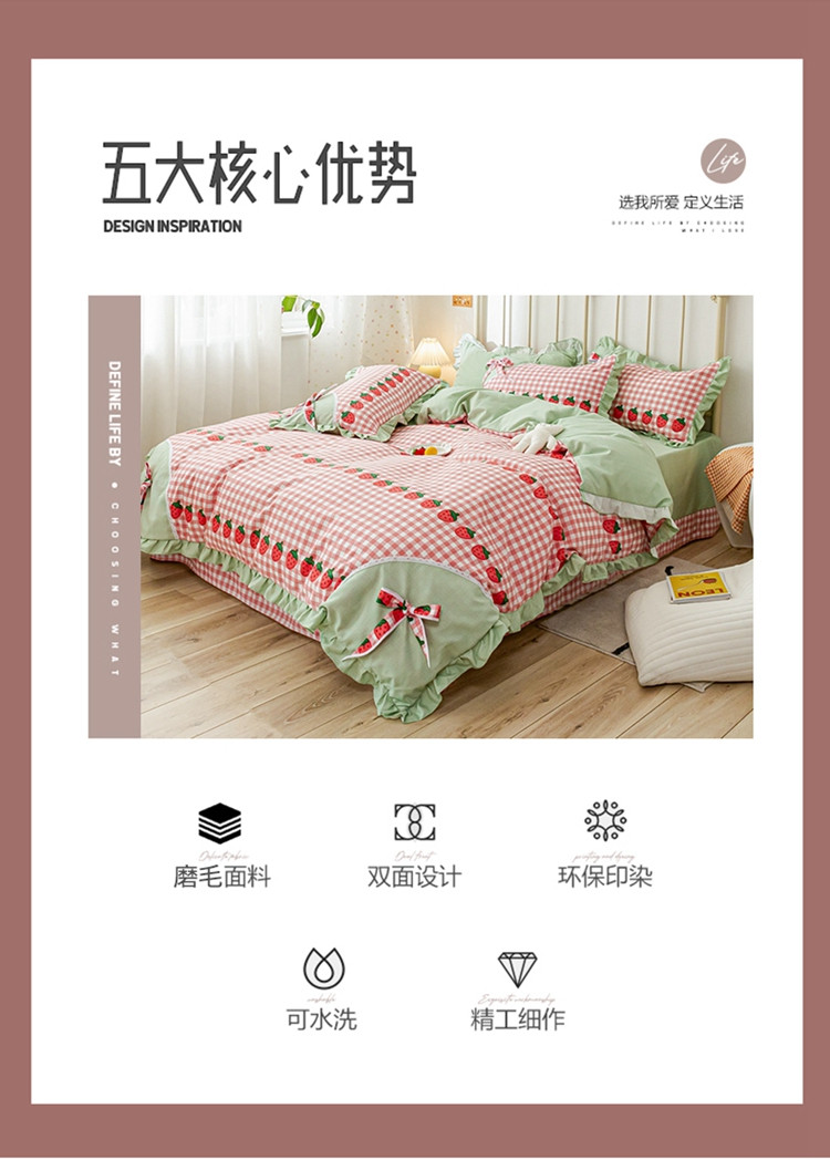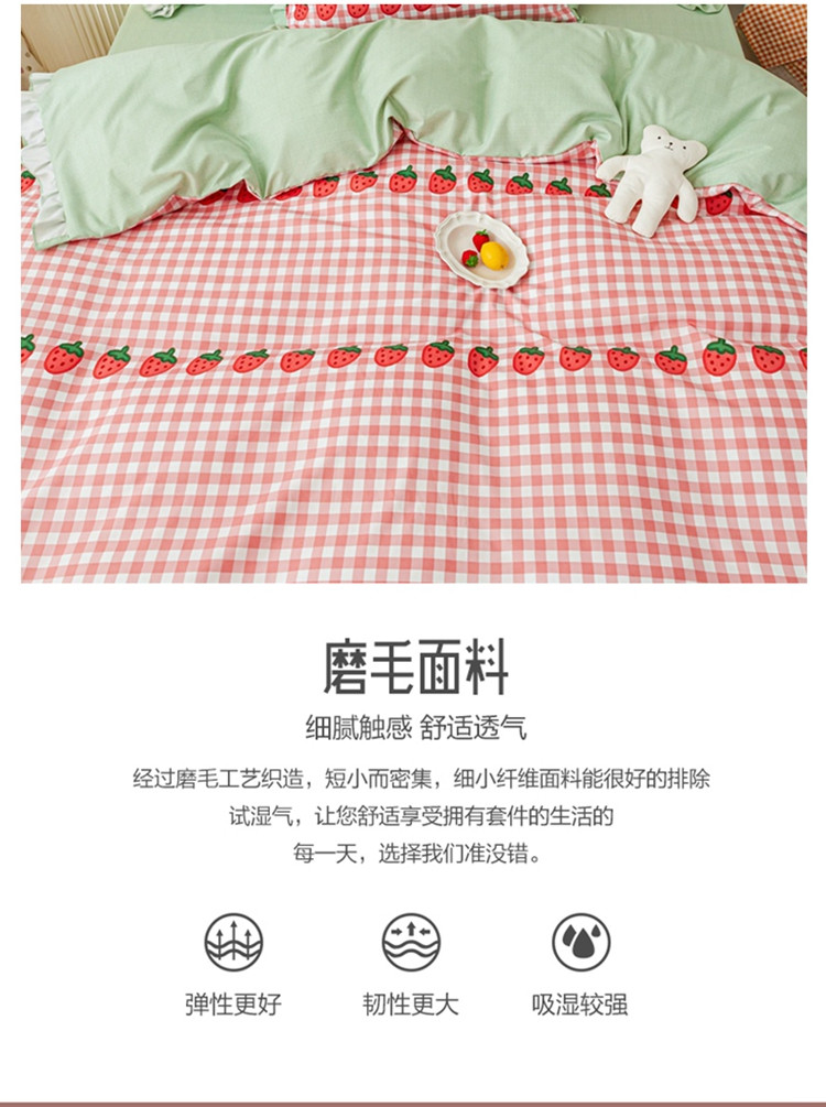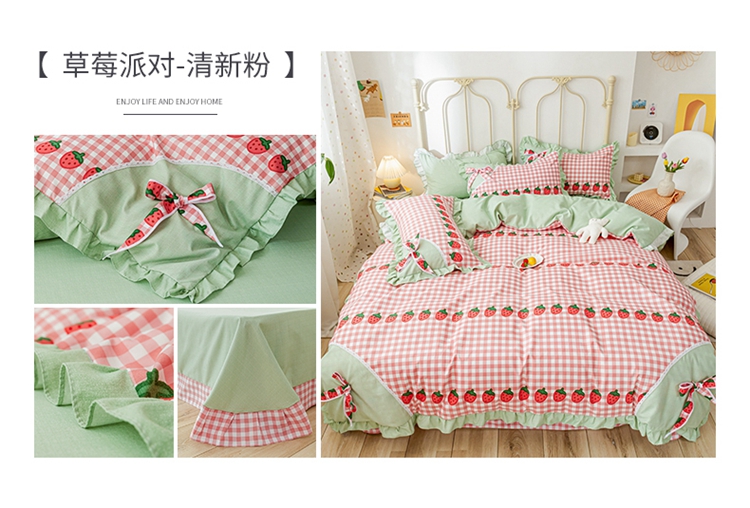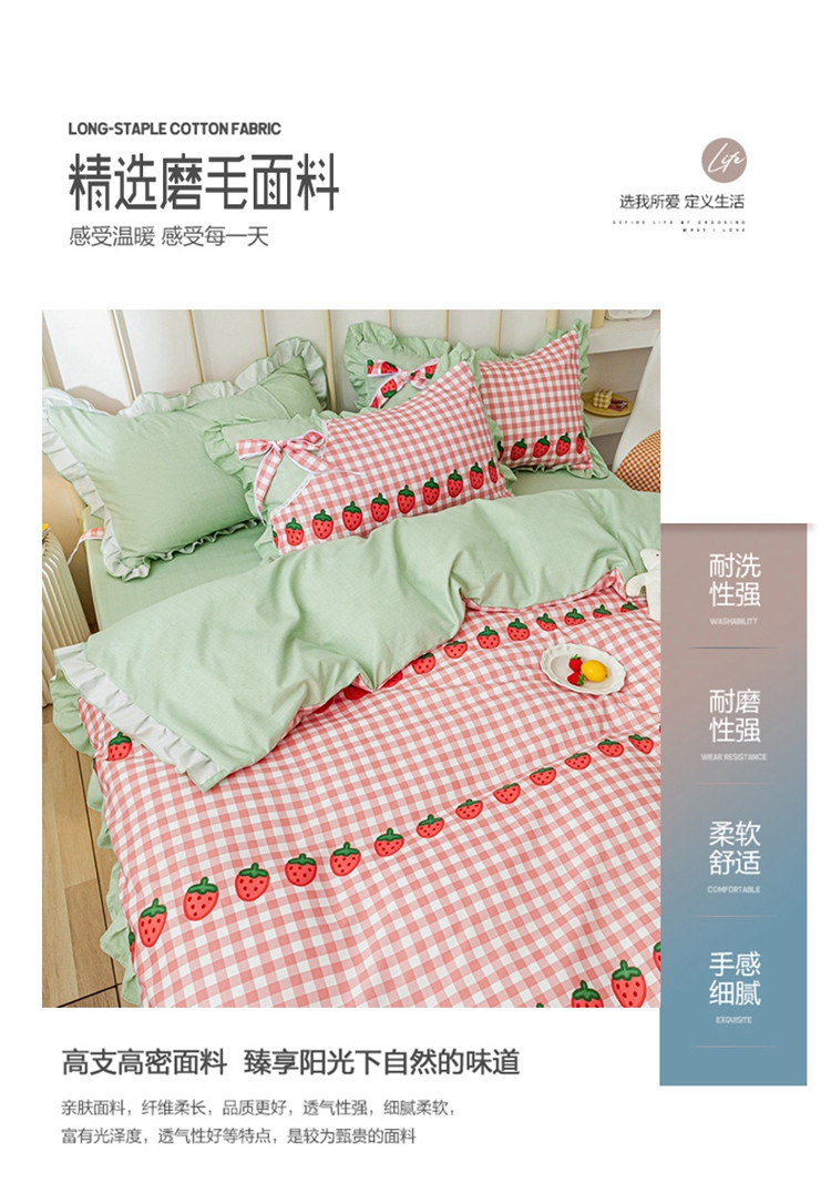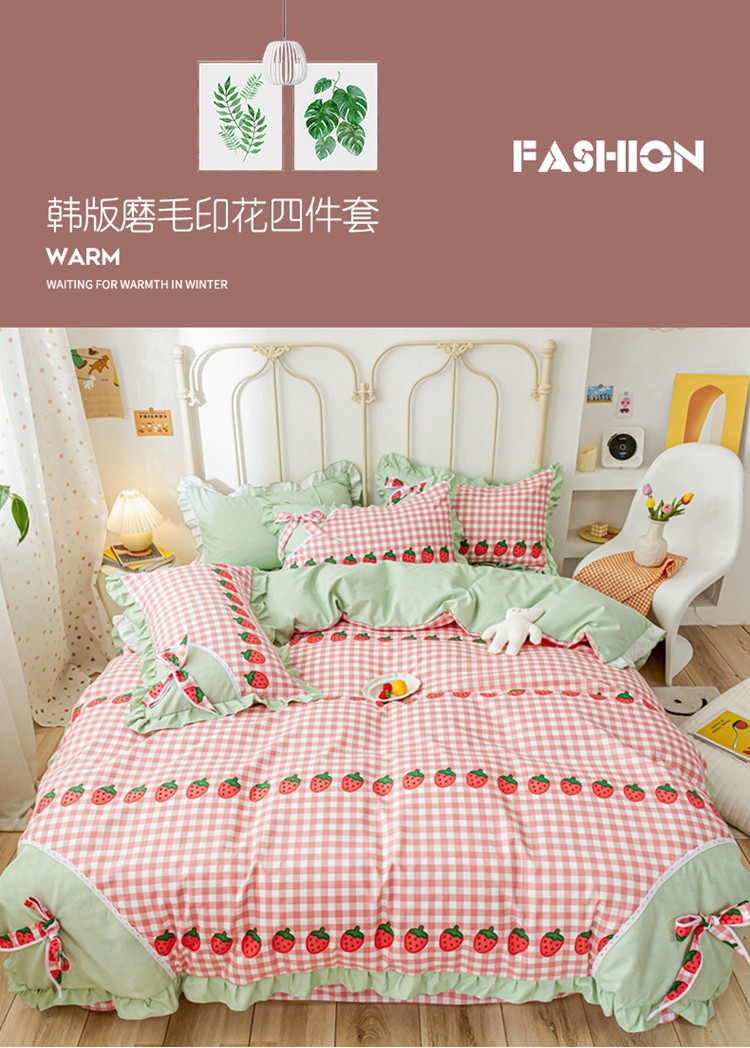 商品名称:靓生活 2021新款韩版磨毛四件套 草莓派对-清新粉
