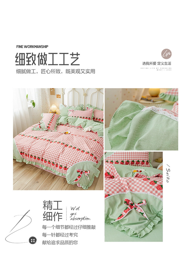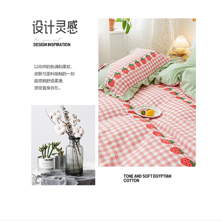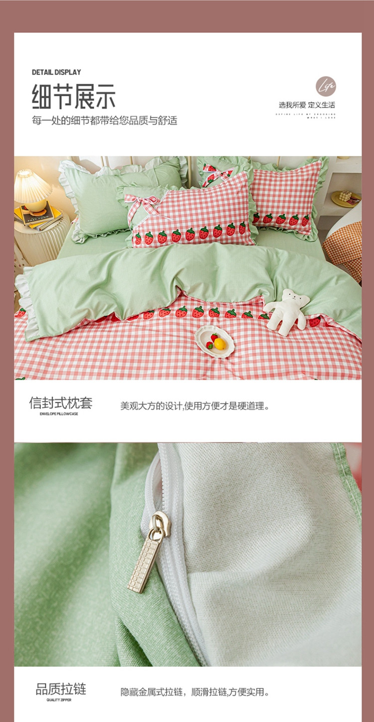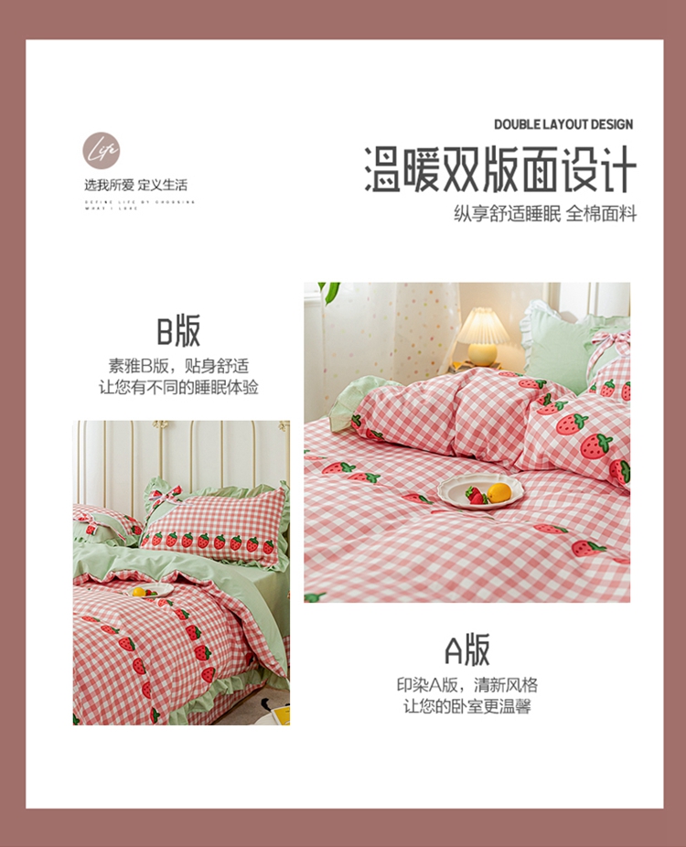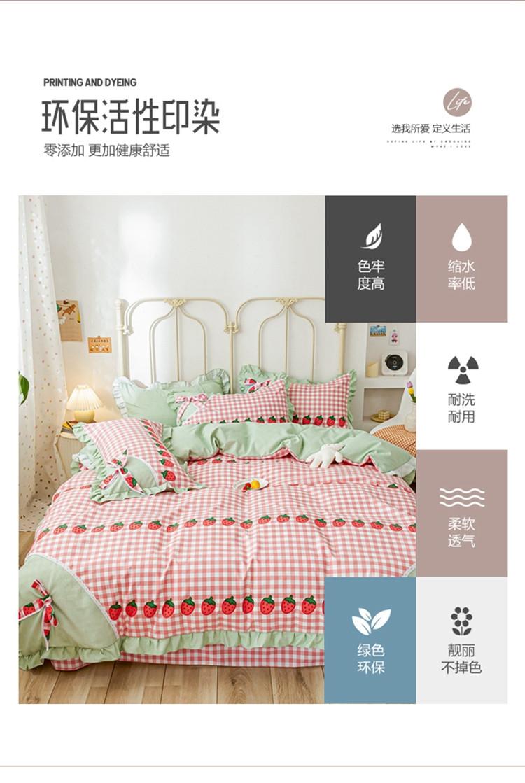 商品名称:靓生活 2021新款韩版磨毛四件套 草莓派对-清新粉