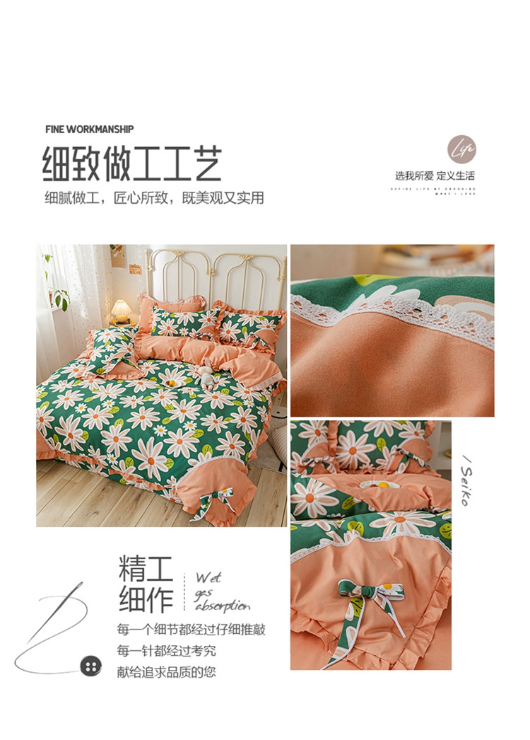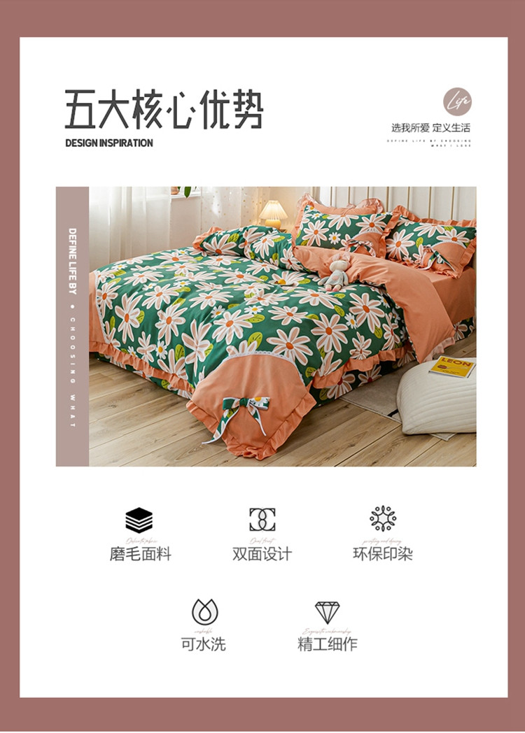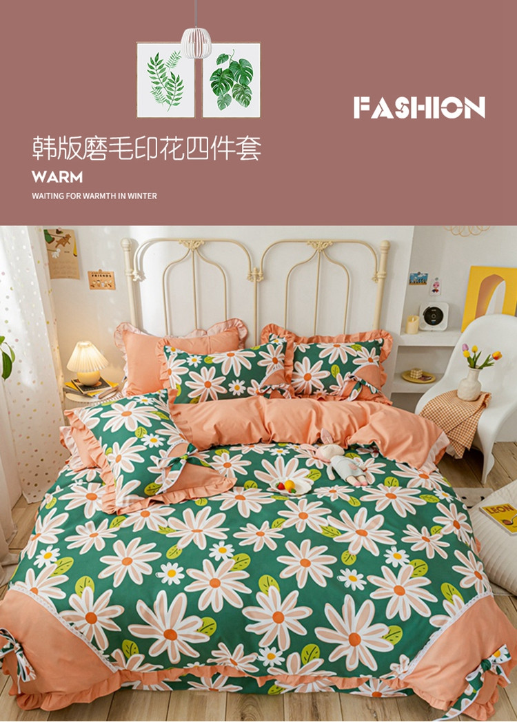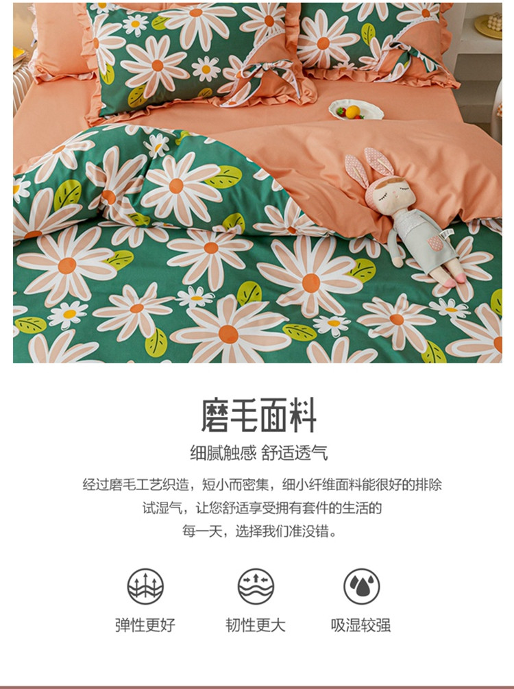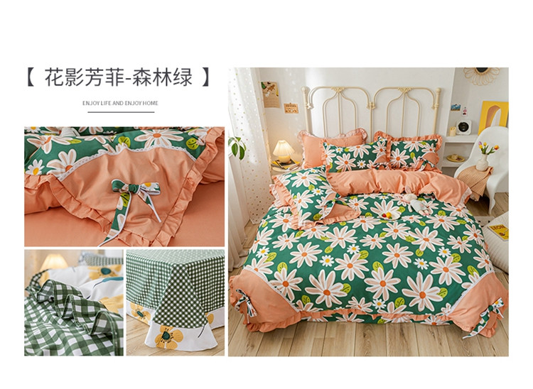 商品名称:靓生活 2021新款韩版磨毛四件套 花影芳菲-森林绿