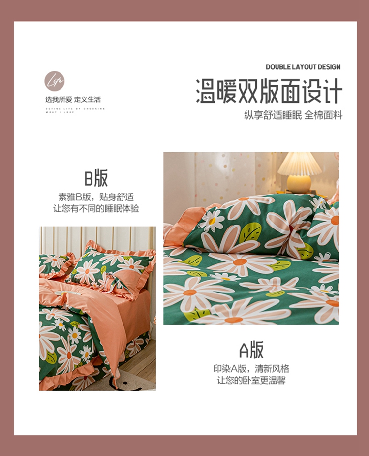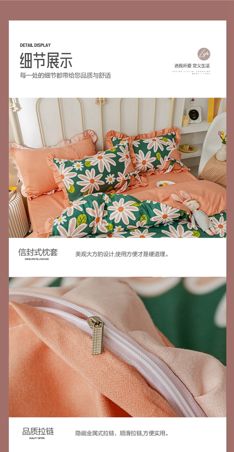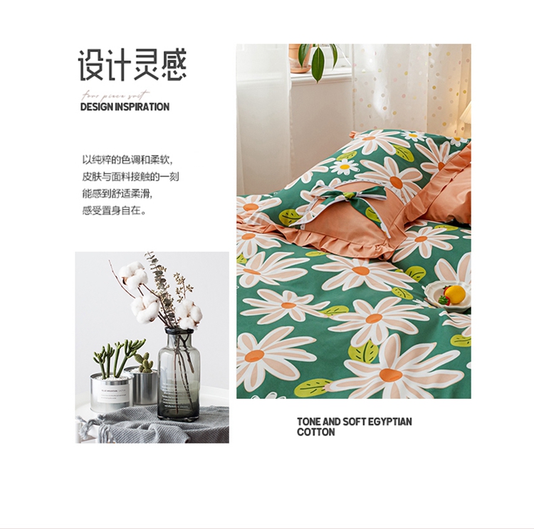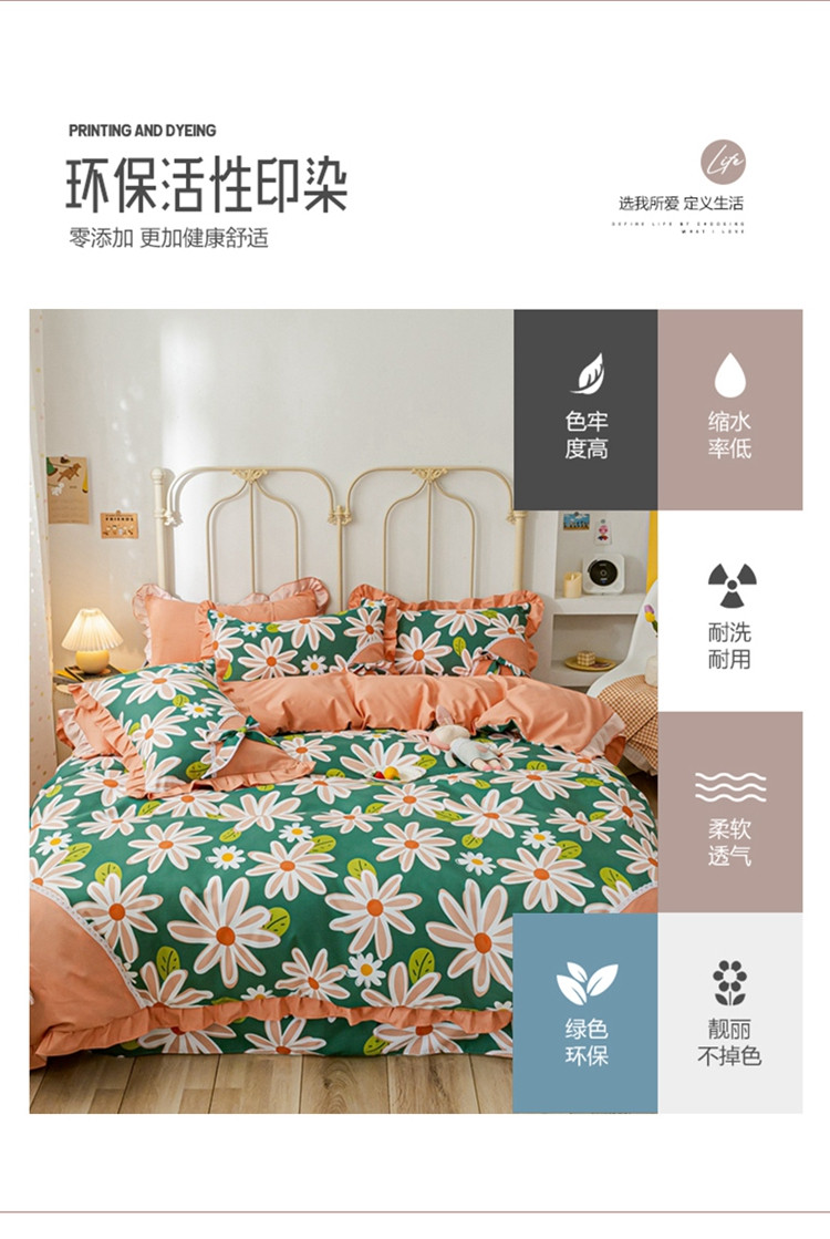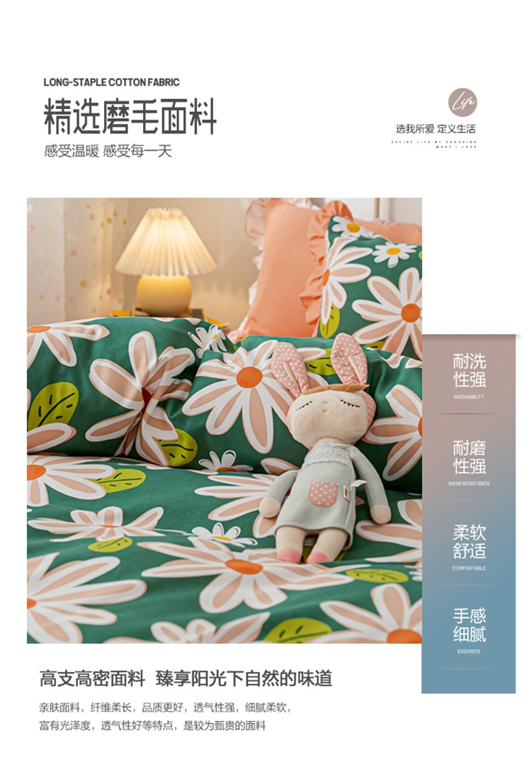 商品名称:靓生活 2021新款韩版磨毛四件套 花影芳菲-森林绿