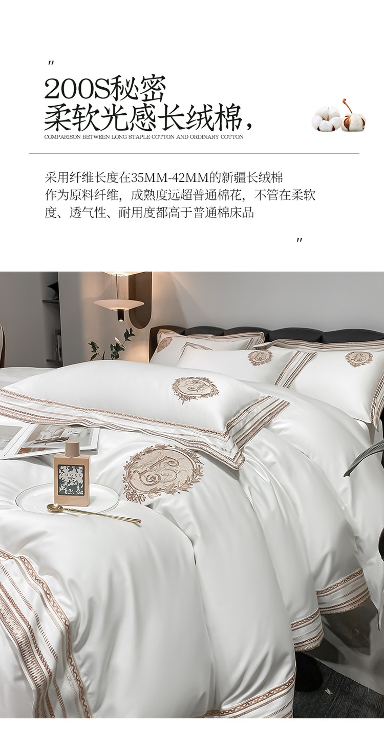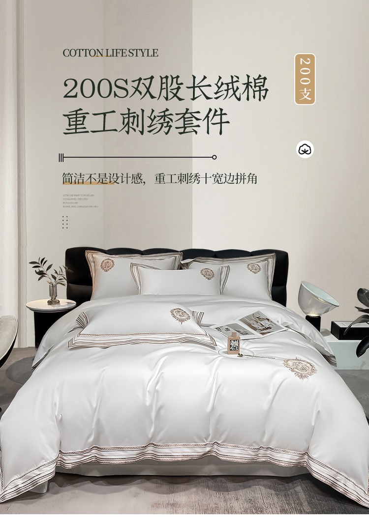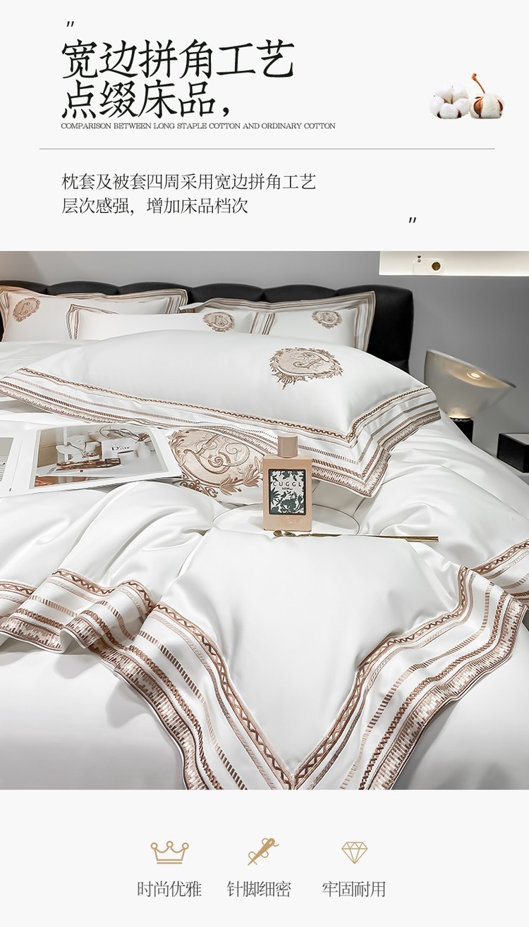 200支新款长绒棉宽边刺绣四件套