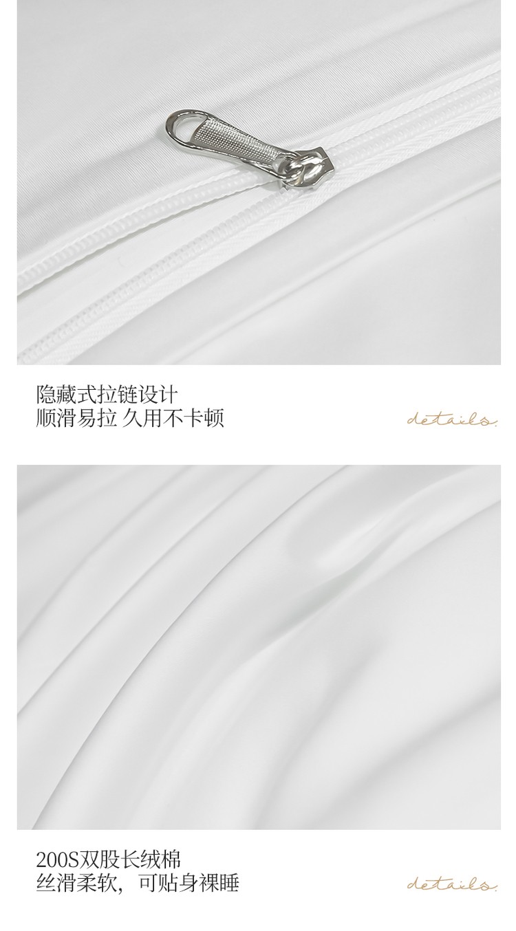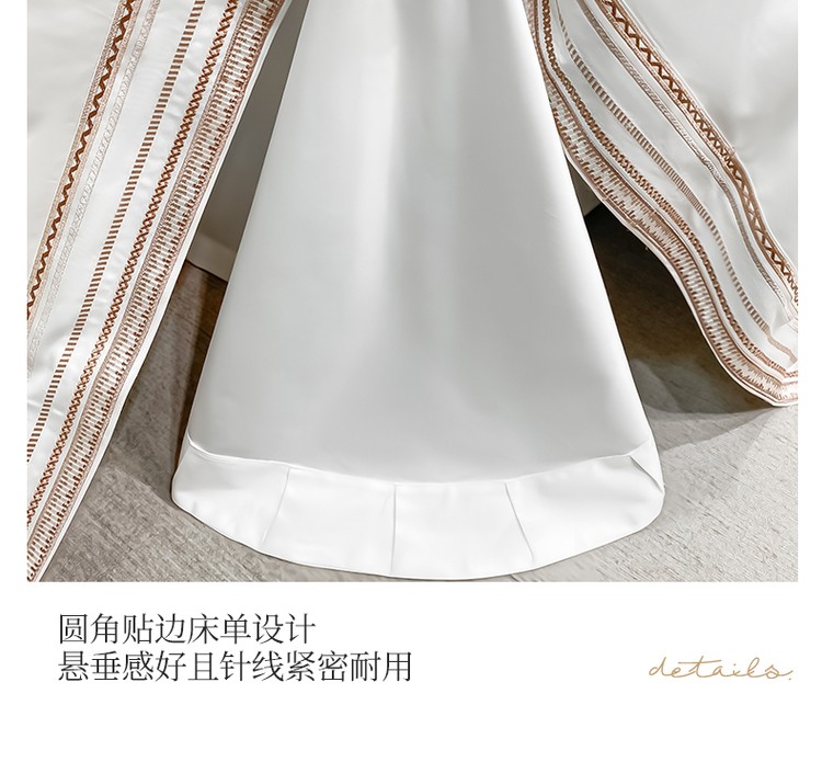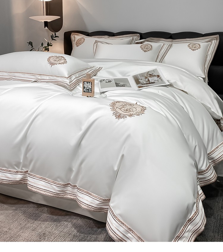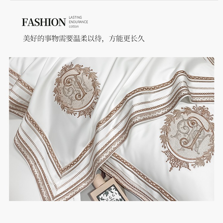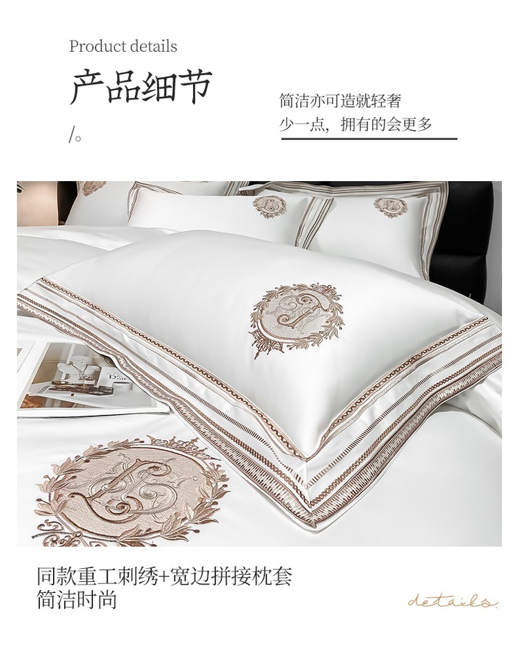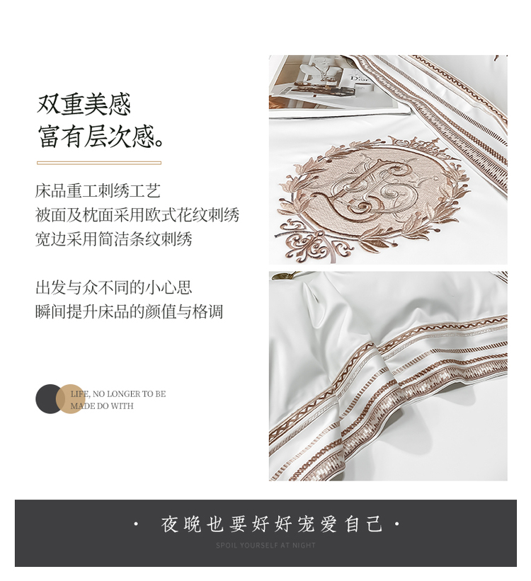 柔觉家纺 天丝刺绣贡缎提花全棉四件套,伊贝尔-本白