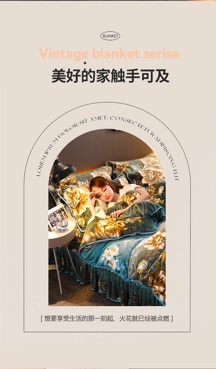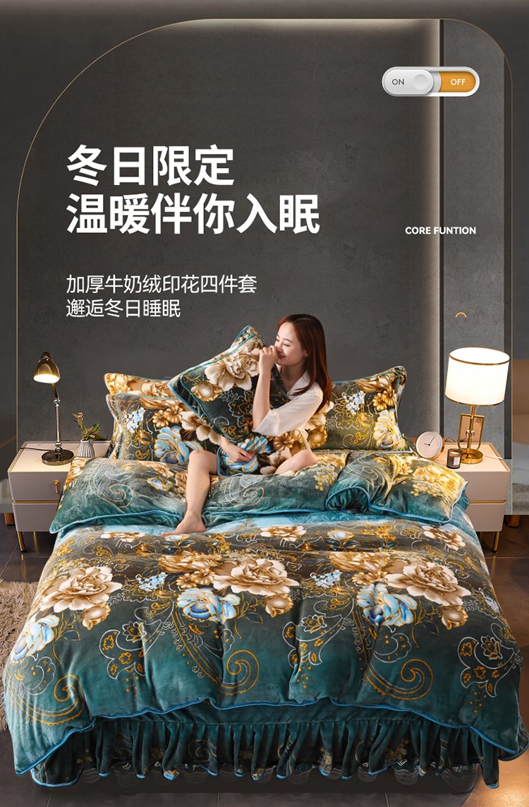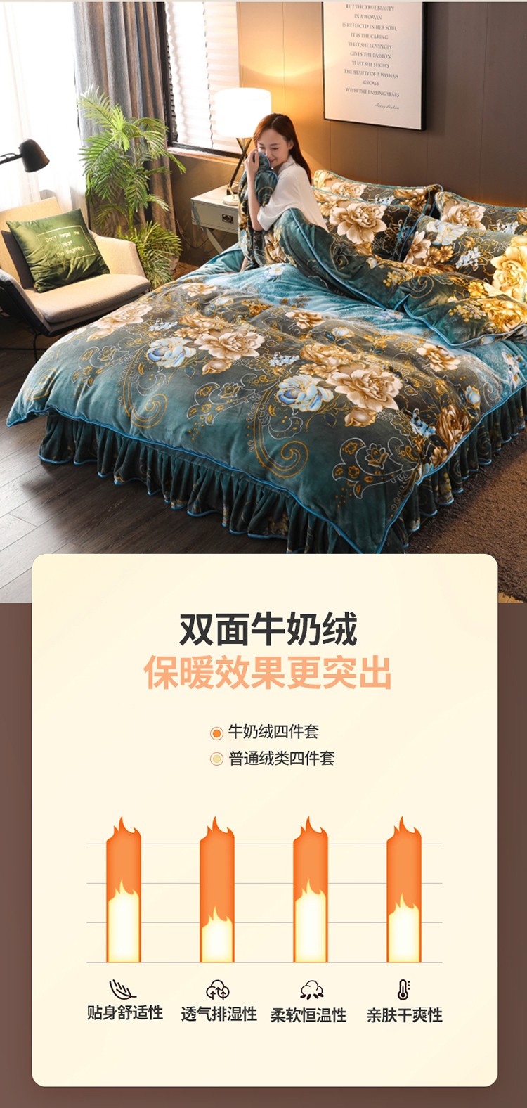 馨梦缘2025直播爆款8.5斤牛奶绒四件套加厚保暖床裙金貂绒紫气东来