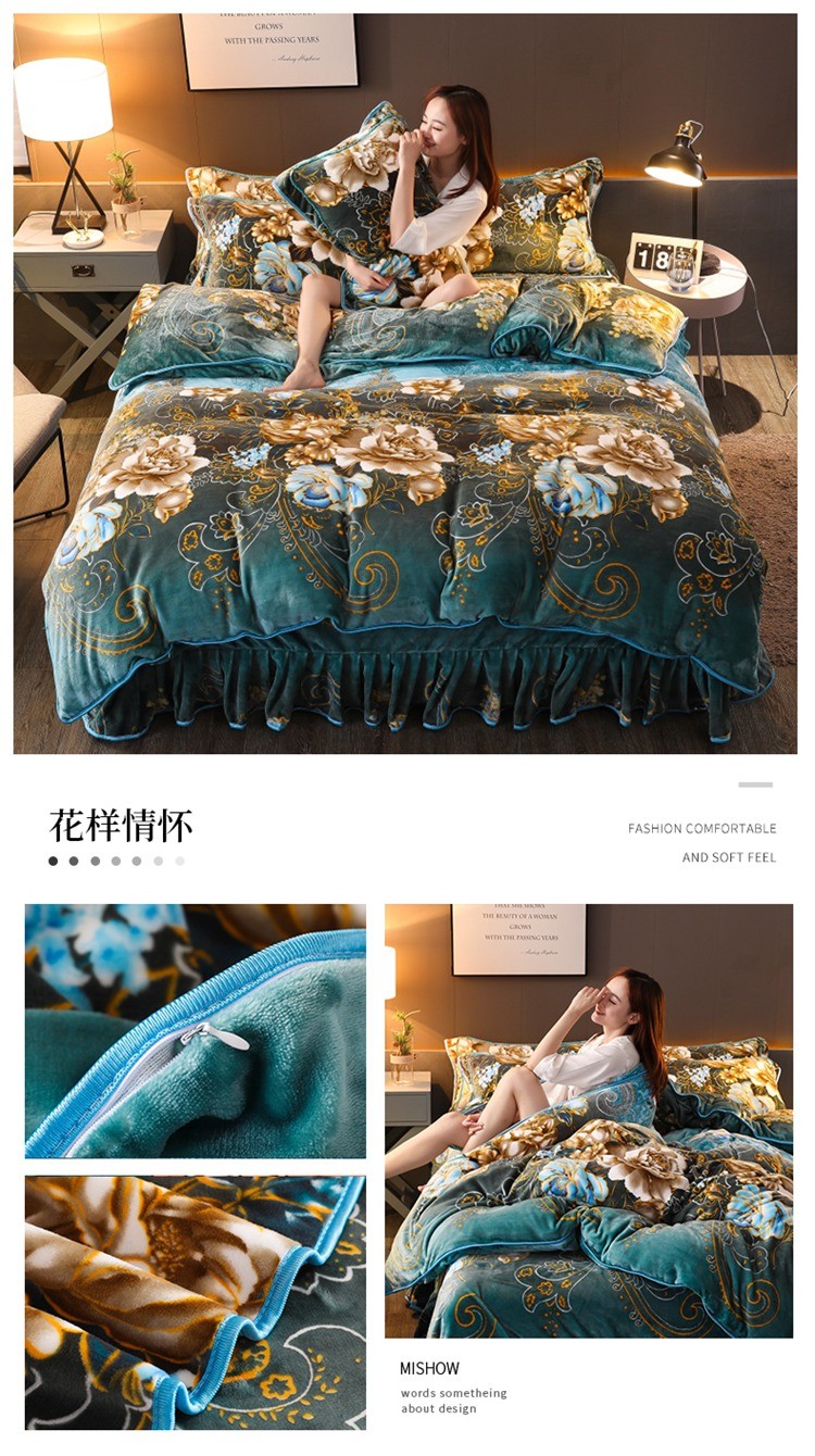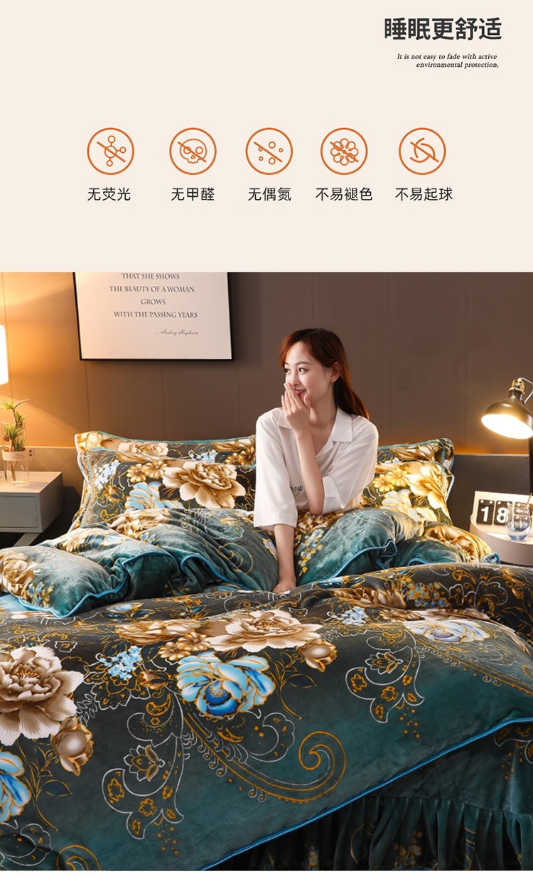商品名称:馨梦缘2025直播爆款8.5斤牛奶绒四件套加厚保暖床裙金貂绒紫气东来