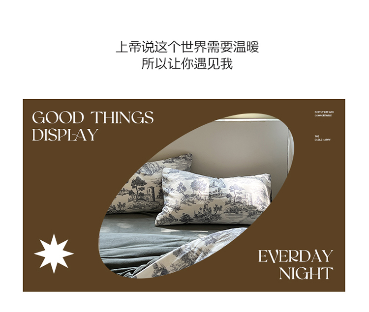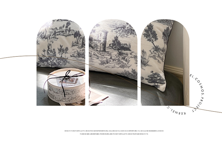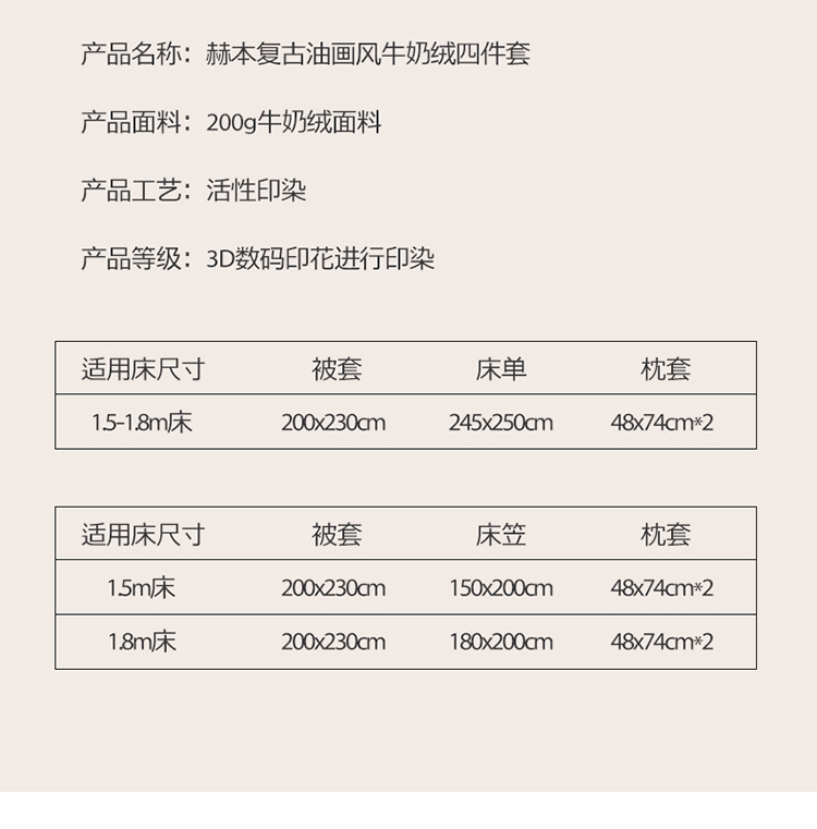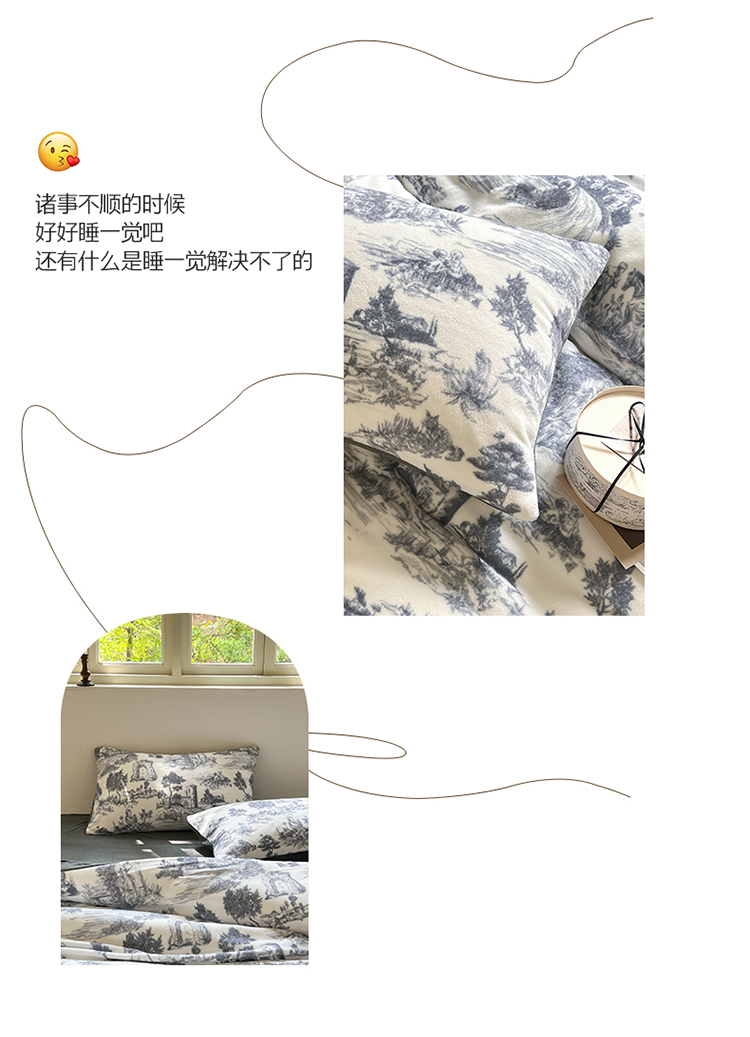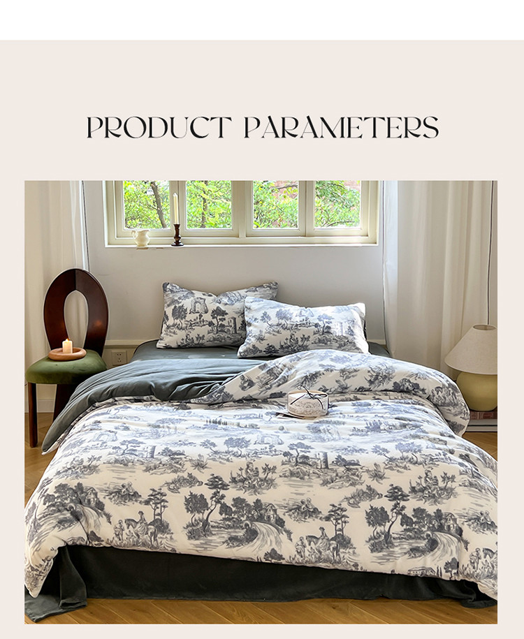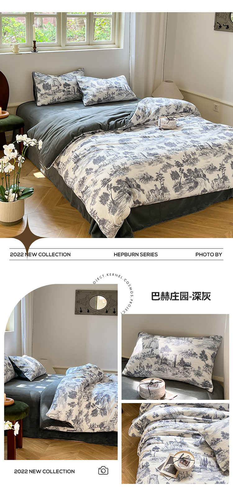 商品名称:六巷胡同 2022新款赫本复古油画风200g牛奶绒四件套 巴赫庄园-深灰