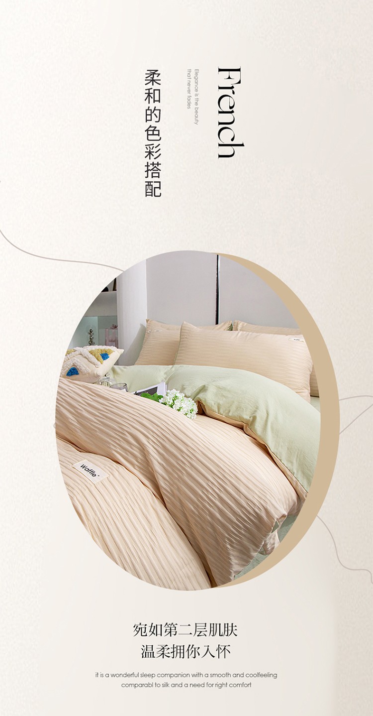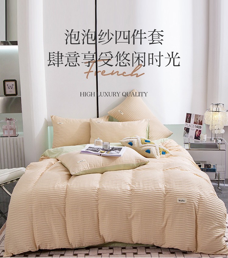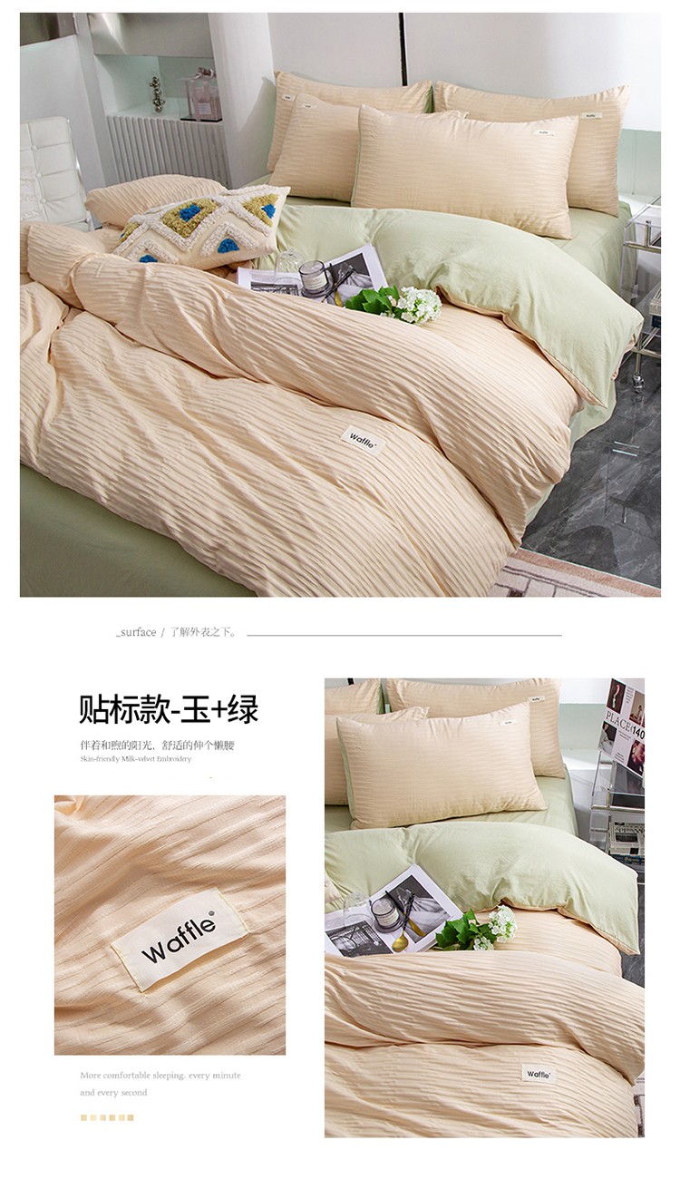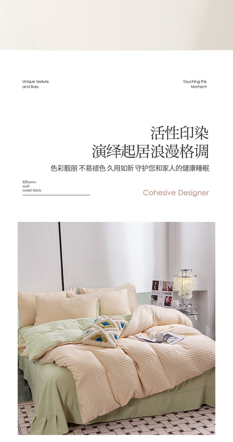 仟网汇 2023新款简约款贴标叶子泡泡纱水洗棉四件套 贴标款-玉+绿