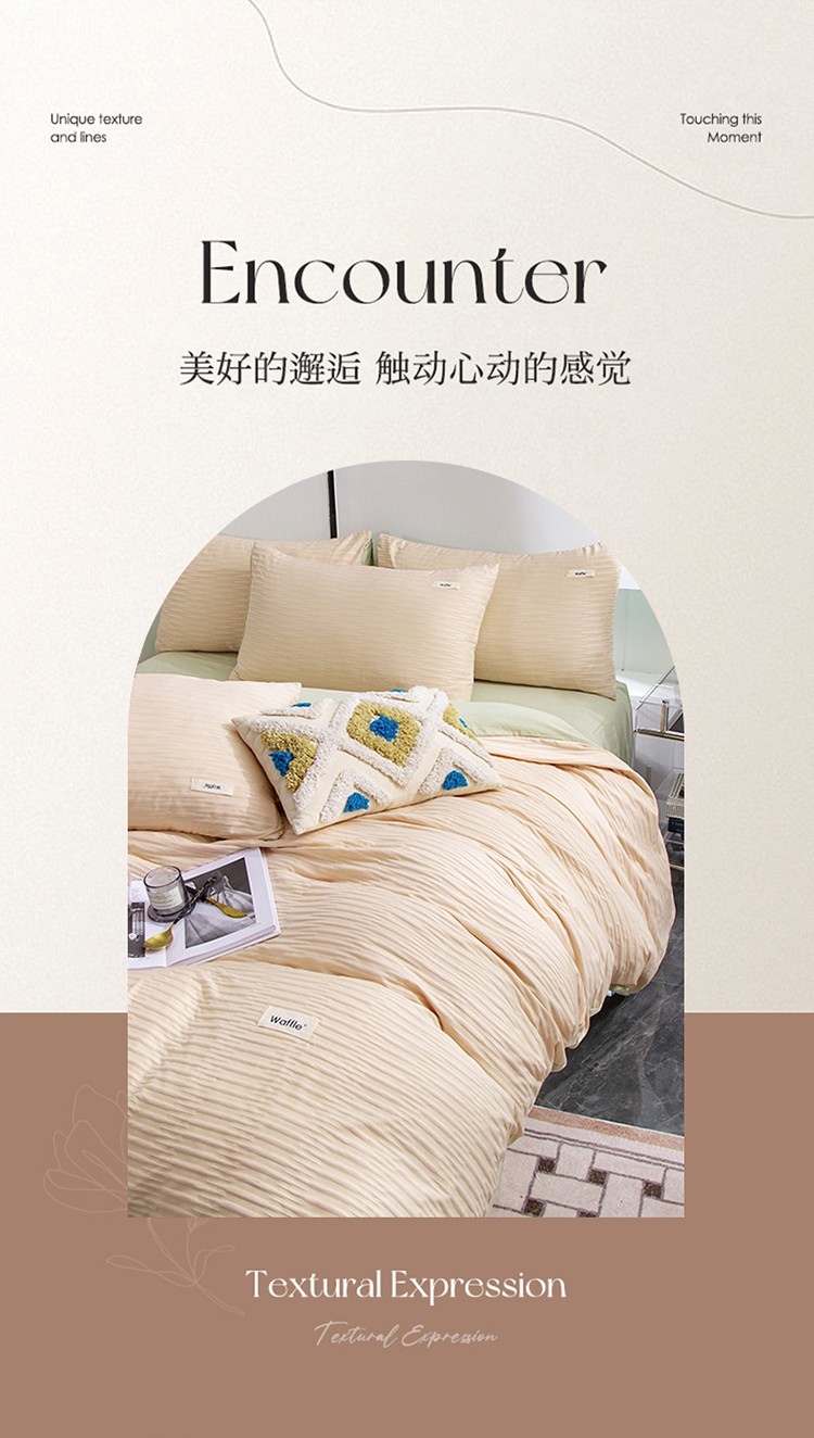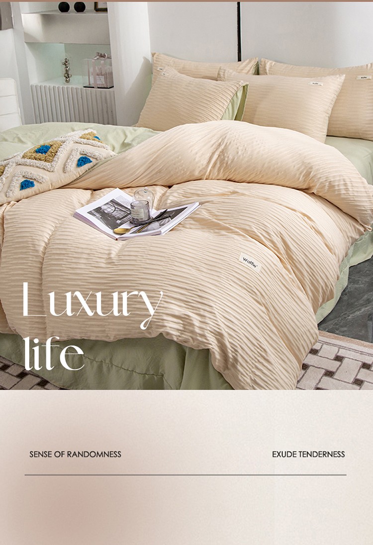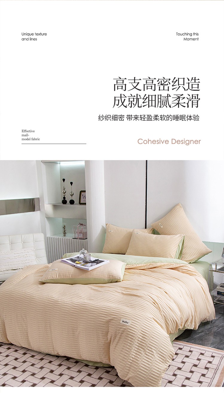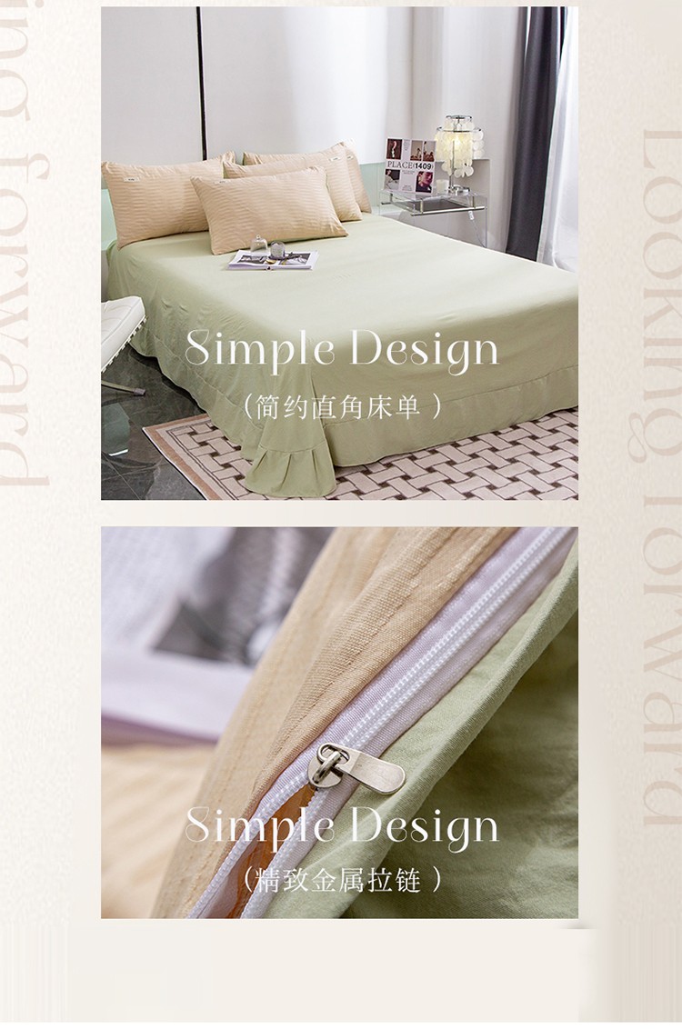 仟网汇 2023新款简约款贴标叶子泡泡纱水洗棉四件套 贴标款-玉+绿