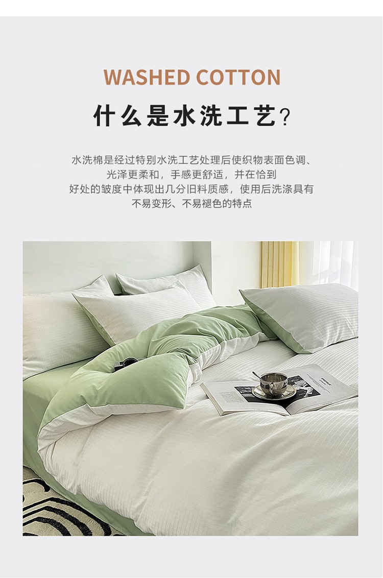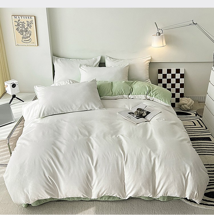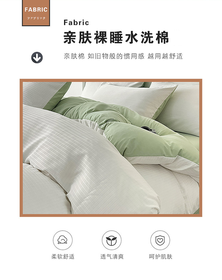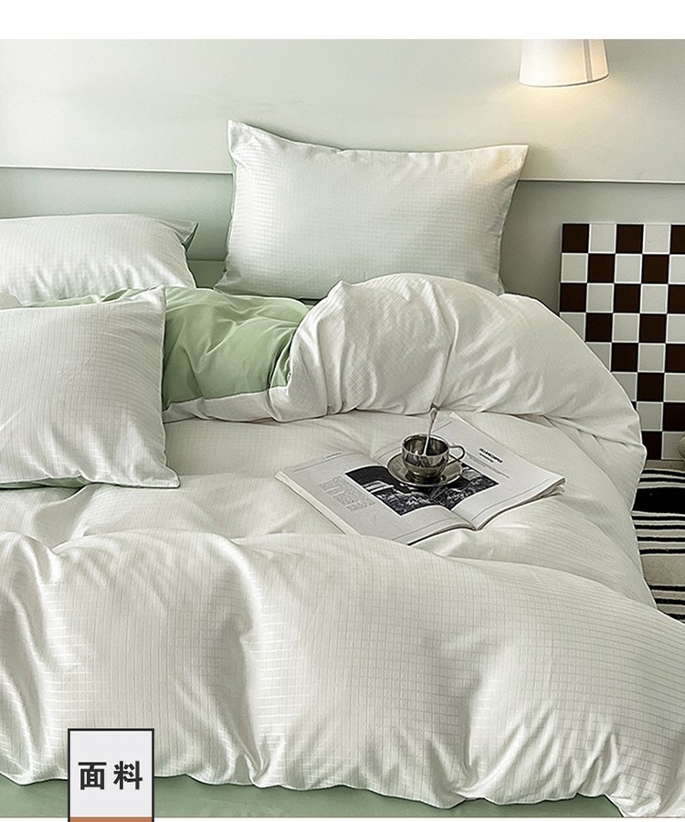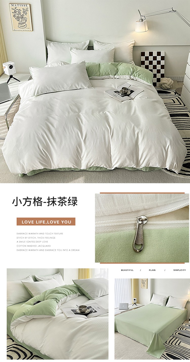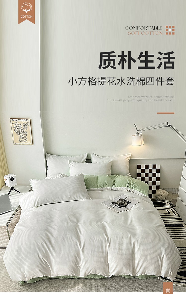 商品名称:N先生 2024新款小方格提花水洗棉四件套 抹茶绿
