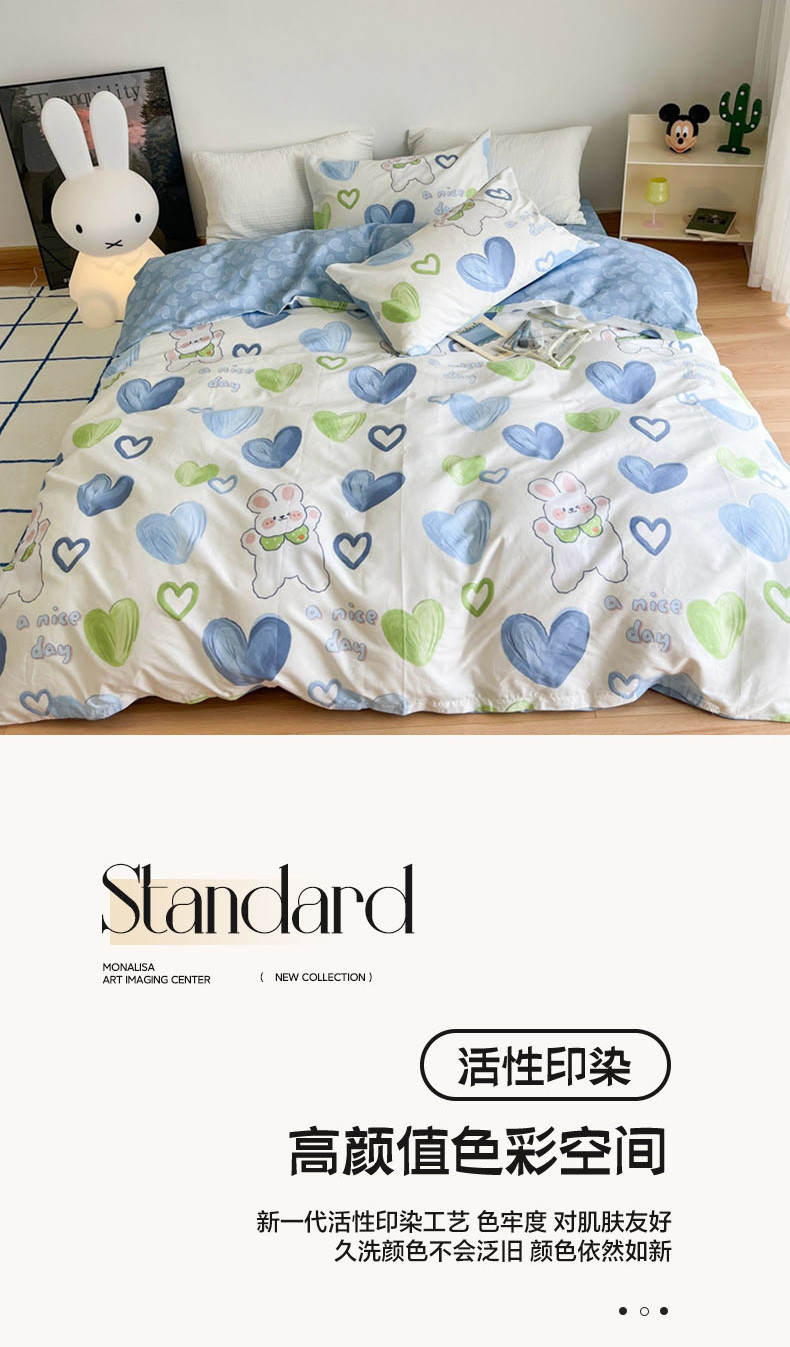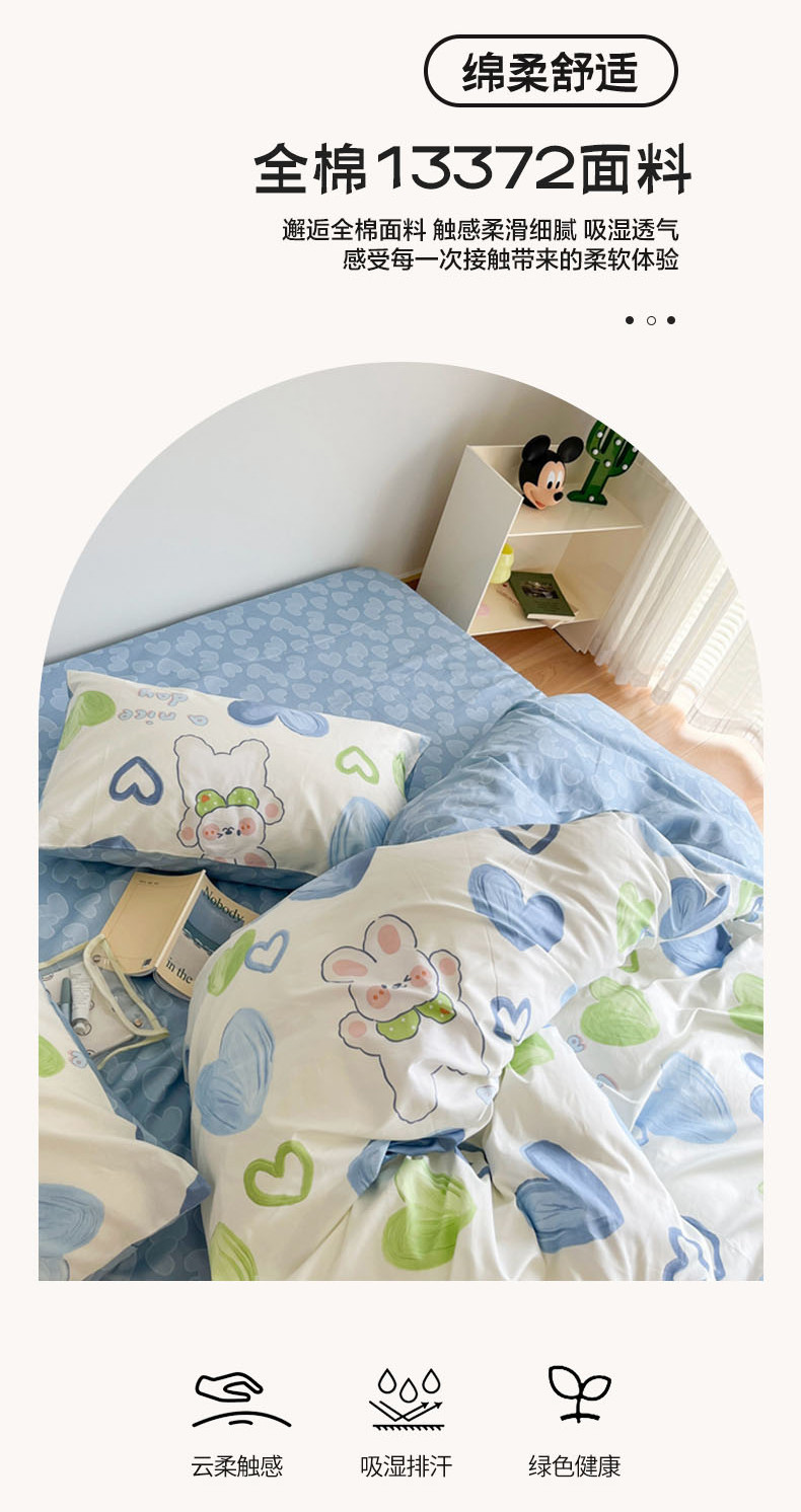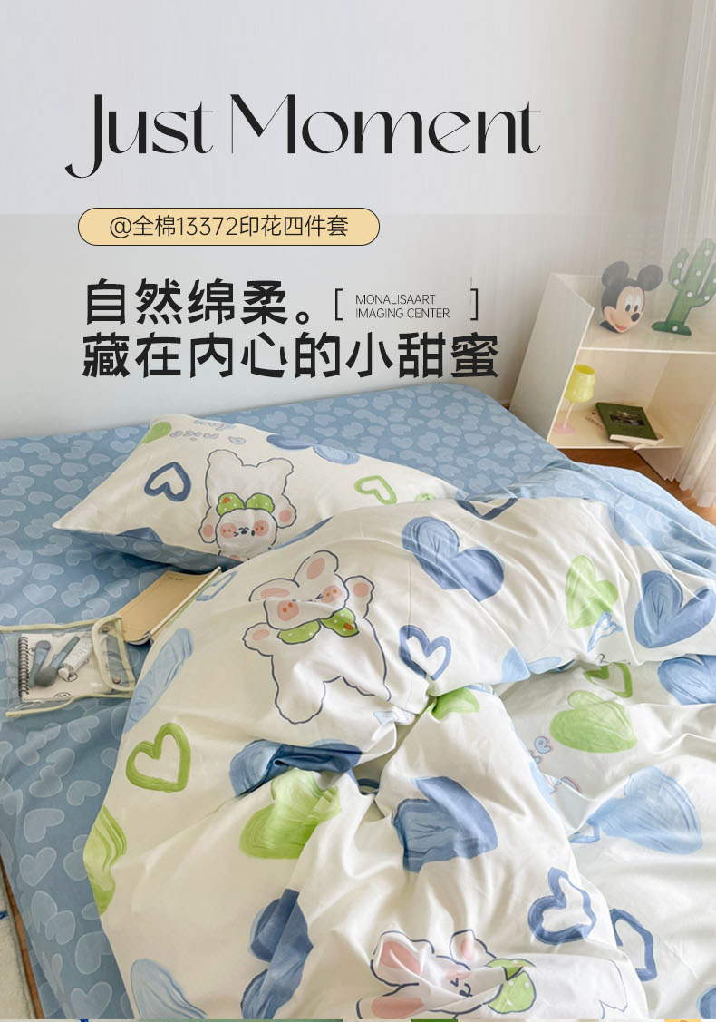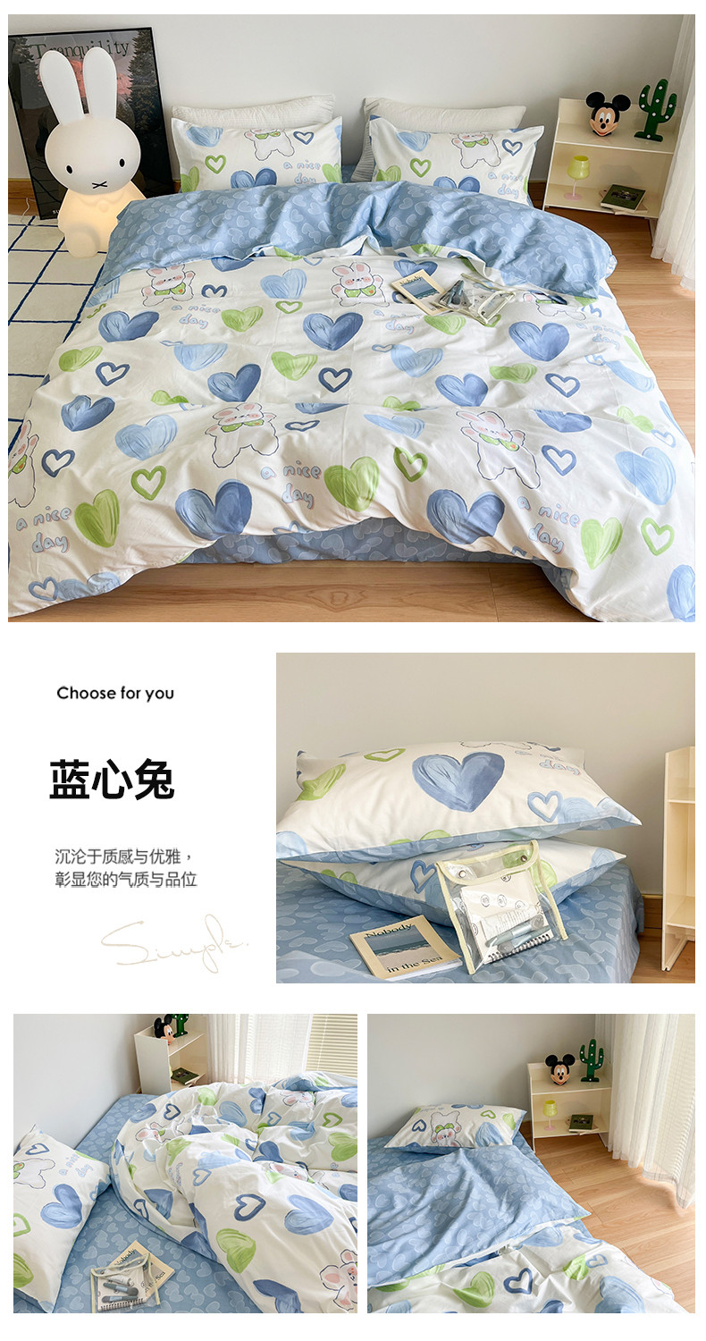 N先生 2023新款13372全棉印花四件套 蓝心兔