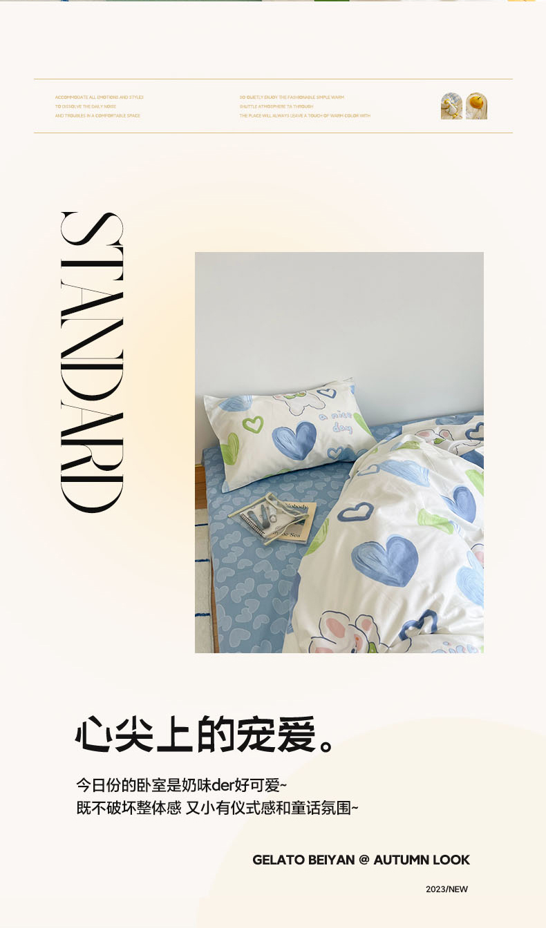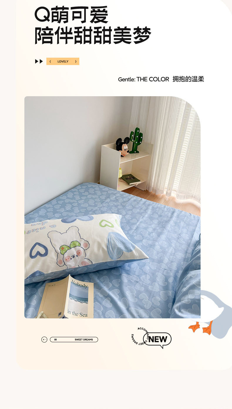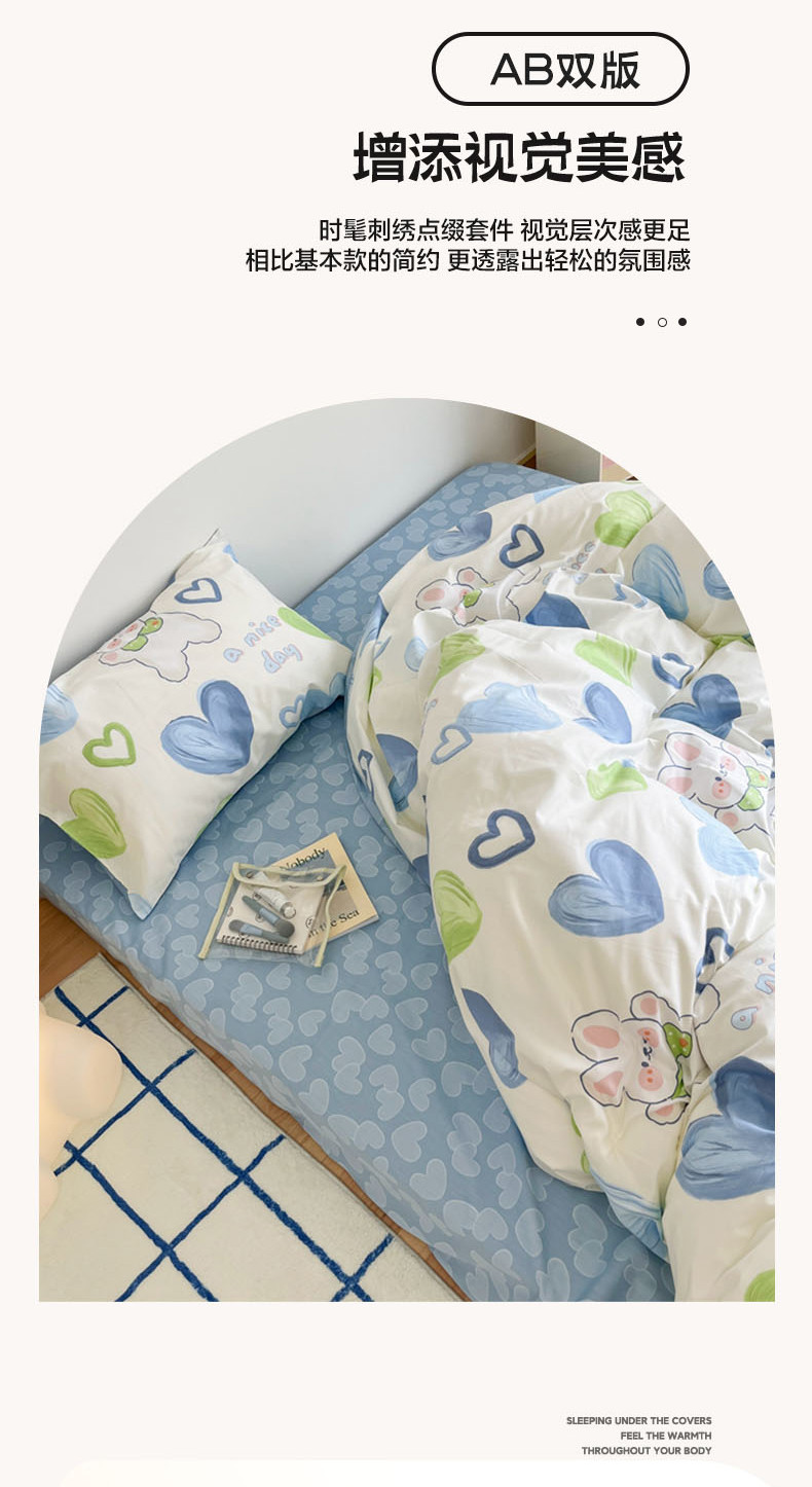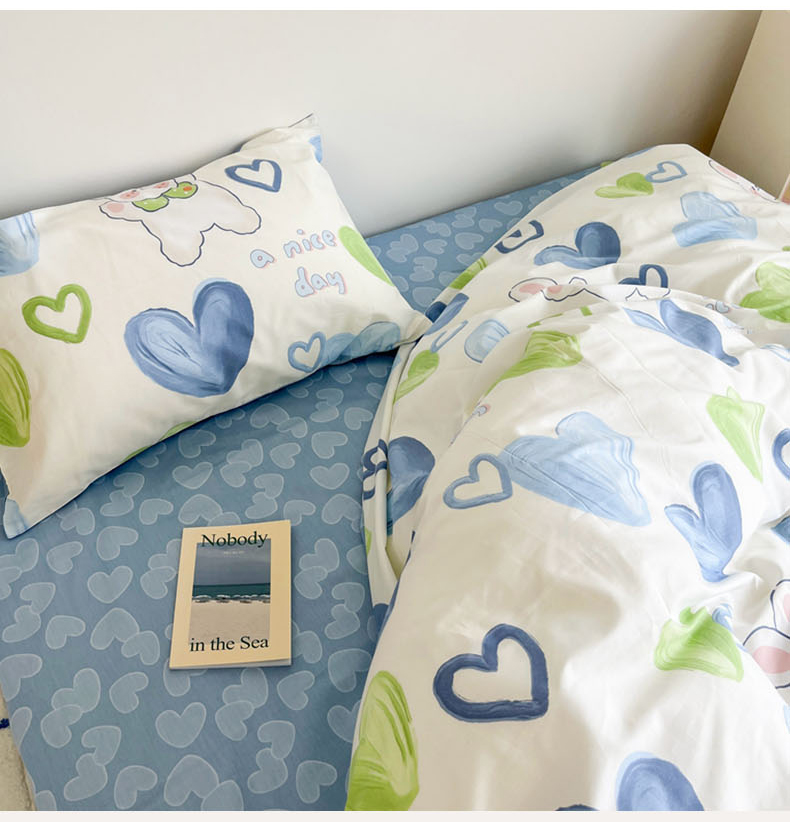 N先生 2023新款13372全棉印花四件套 蓝心兔