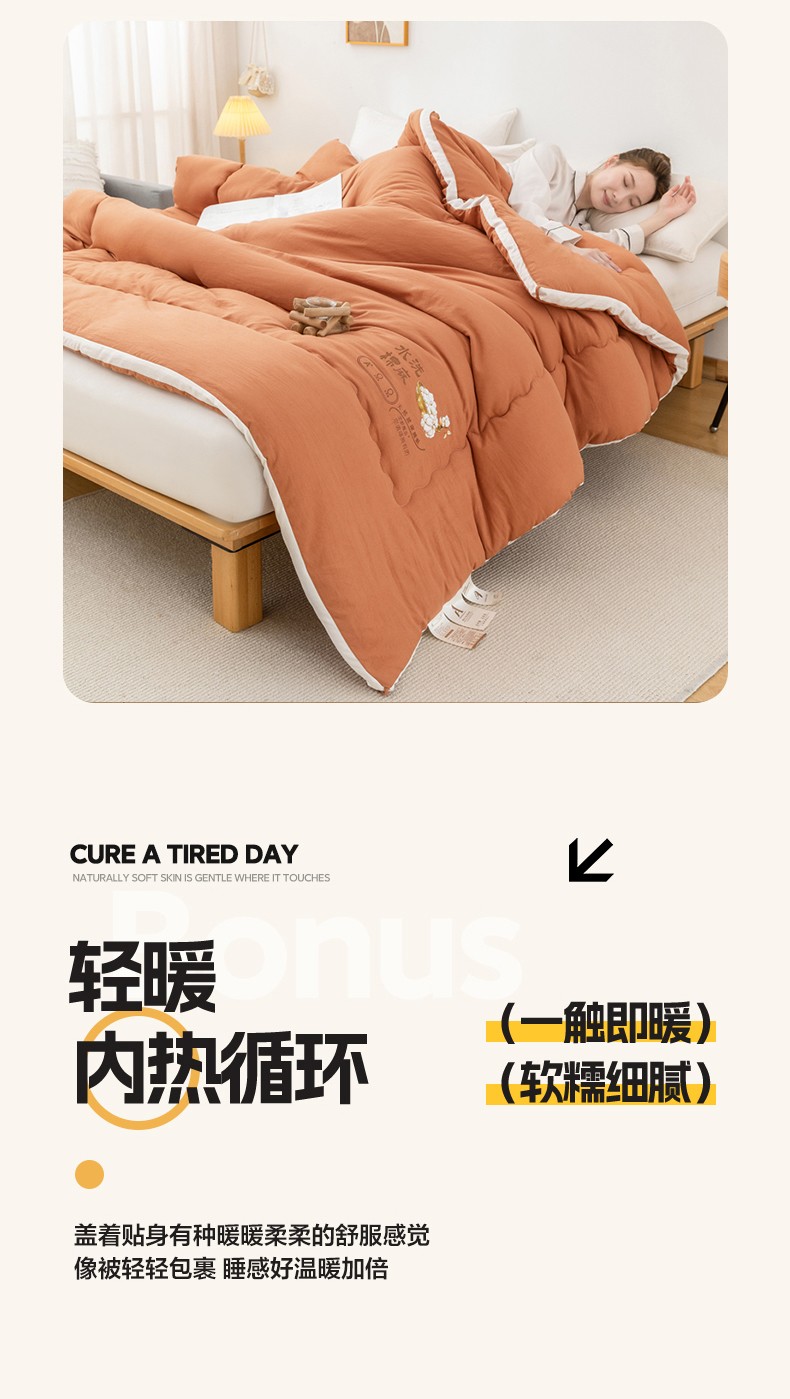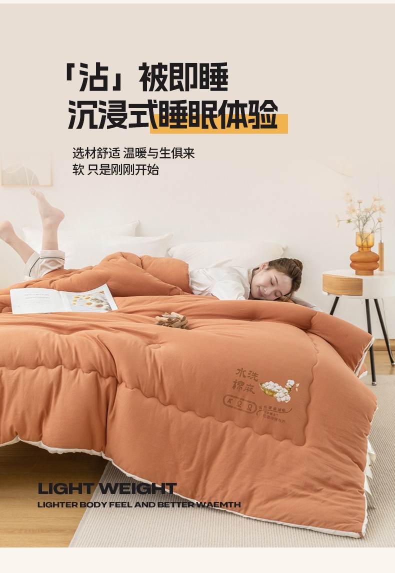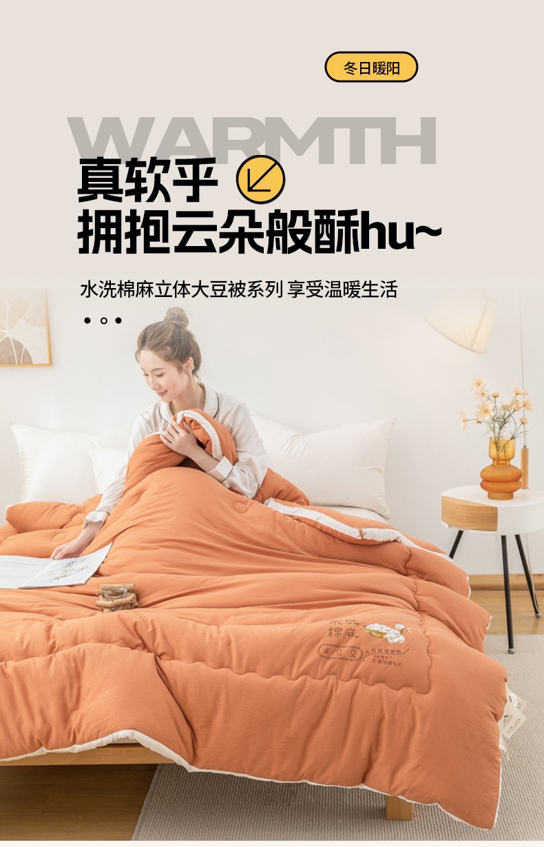 当前位置: 91家纺网 > 商品网购 > 被子 > 冬被 > 钰博2023新款水洗棉麻立体被大豆被直播爆款冬被被子被芯 暖橙色