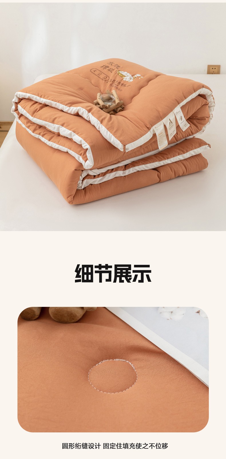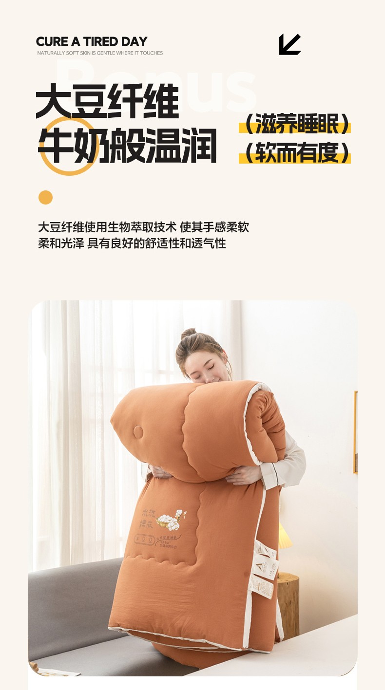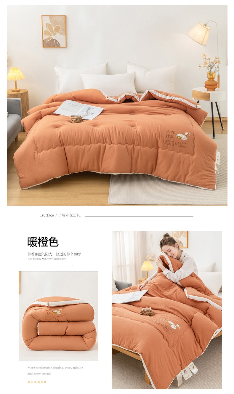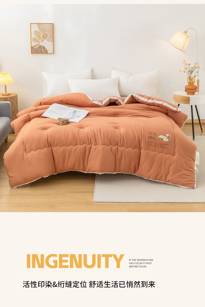 • 91家纺网 家纺一手货源 找家纺 钰博2023新款水洗棉麻立体被大豆被直播爆款冬被被子被芯 暖橙色