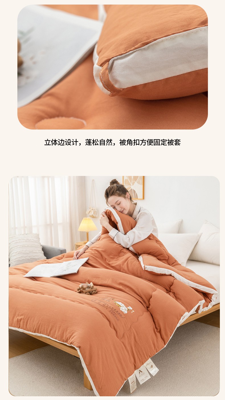 钰博2023新款水洗棉麻立体被大豆被直播爆款冬被被子被芯 暖橙色