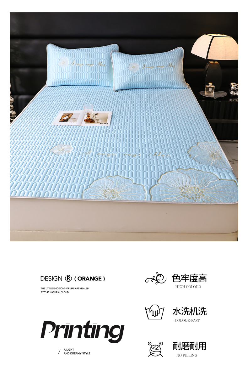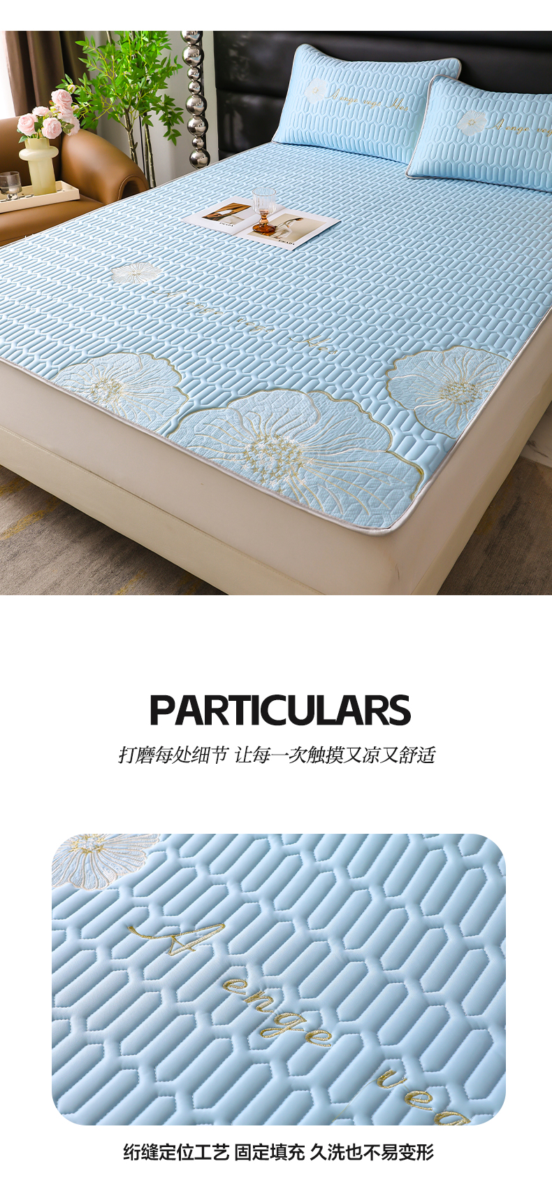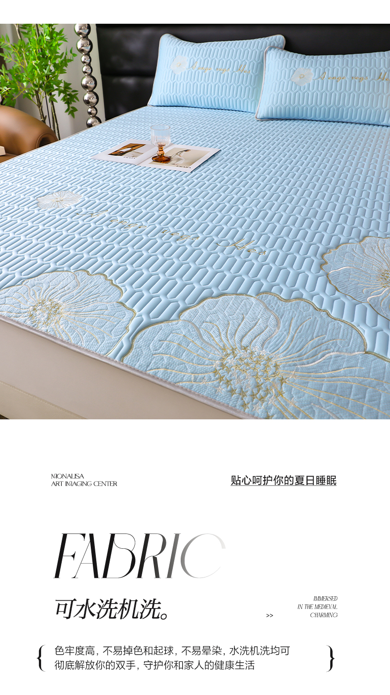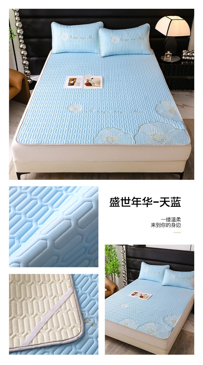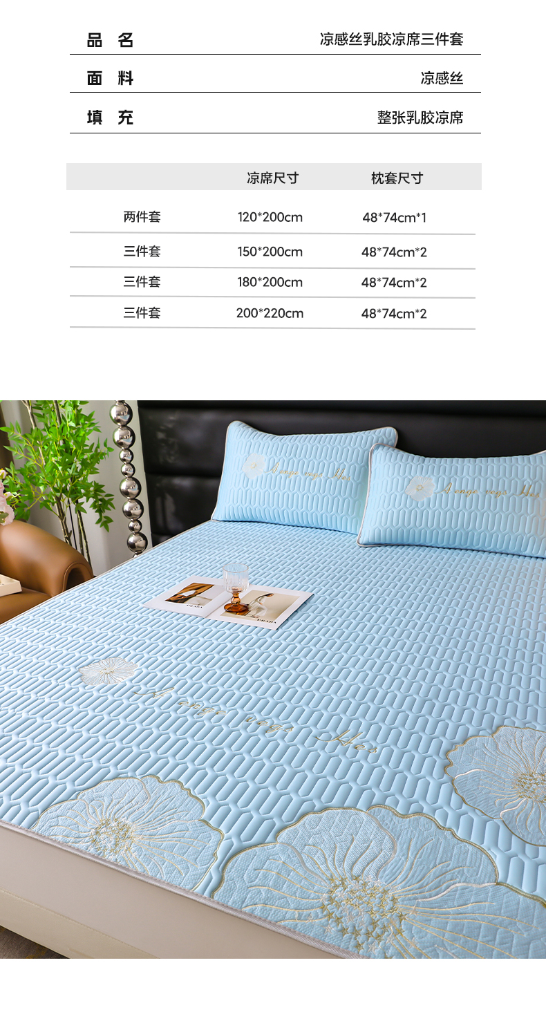 商品名称:你好美丽 2025新款凉感丝绣花0.6乳胶凉席三件套-盛世年华 天蓝